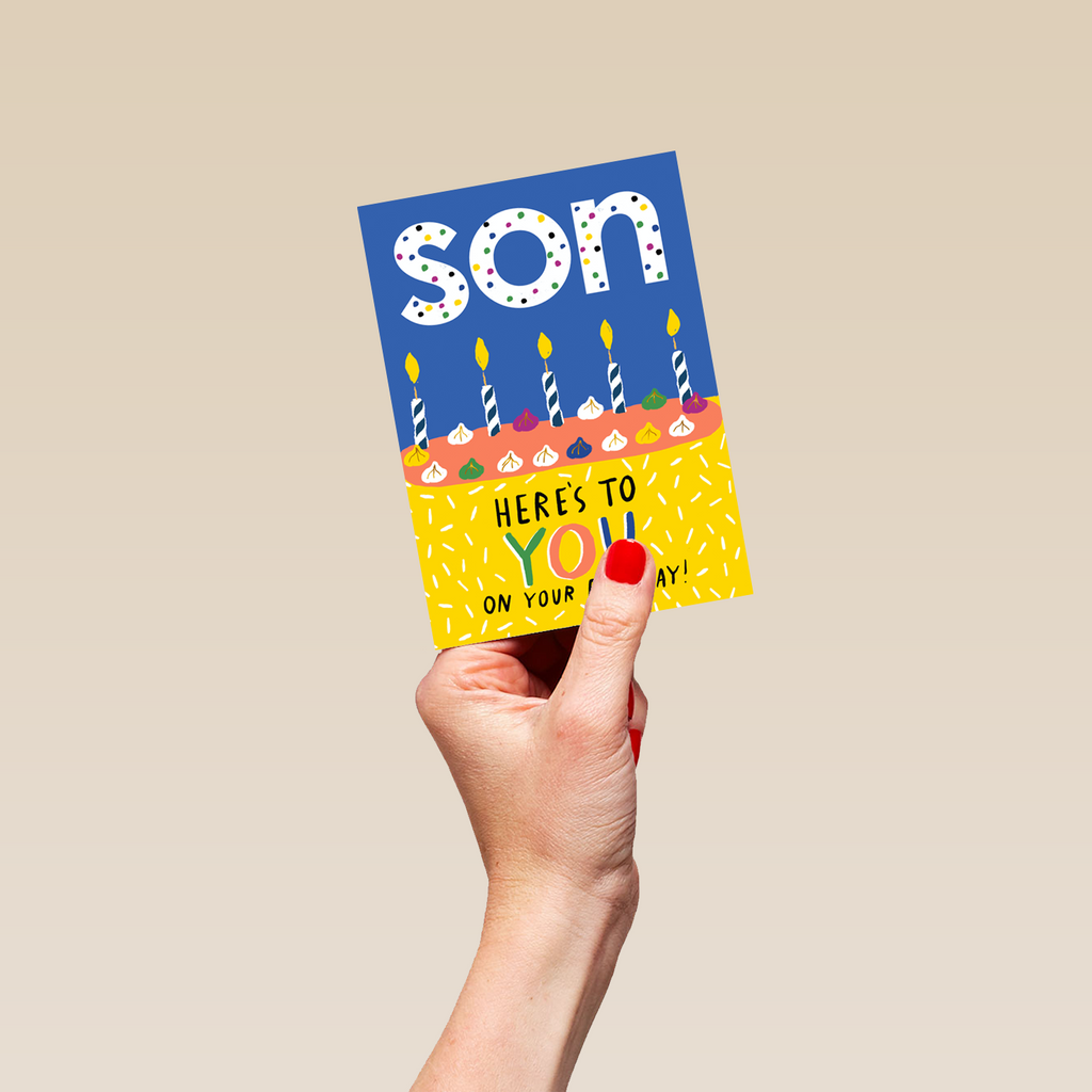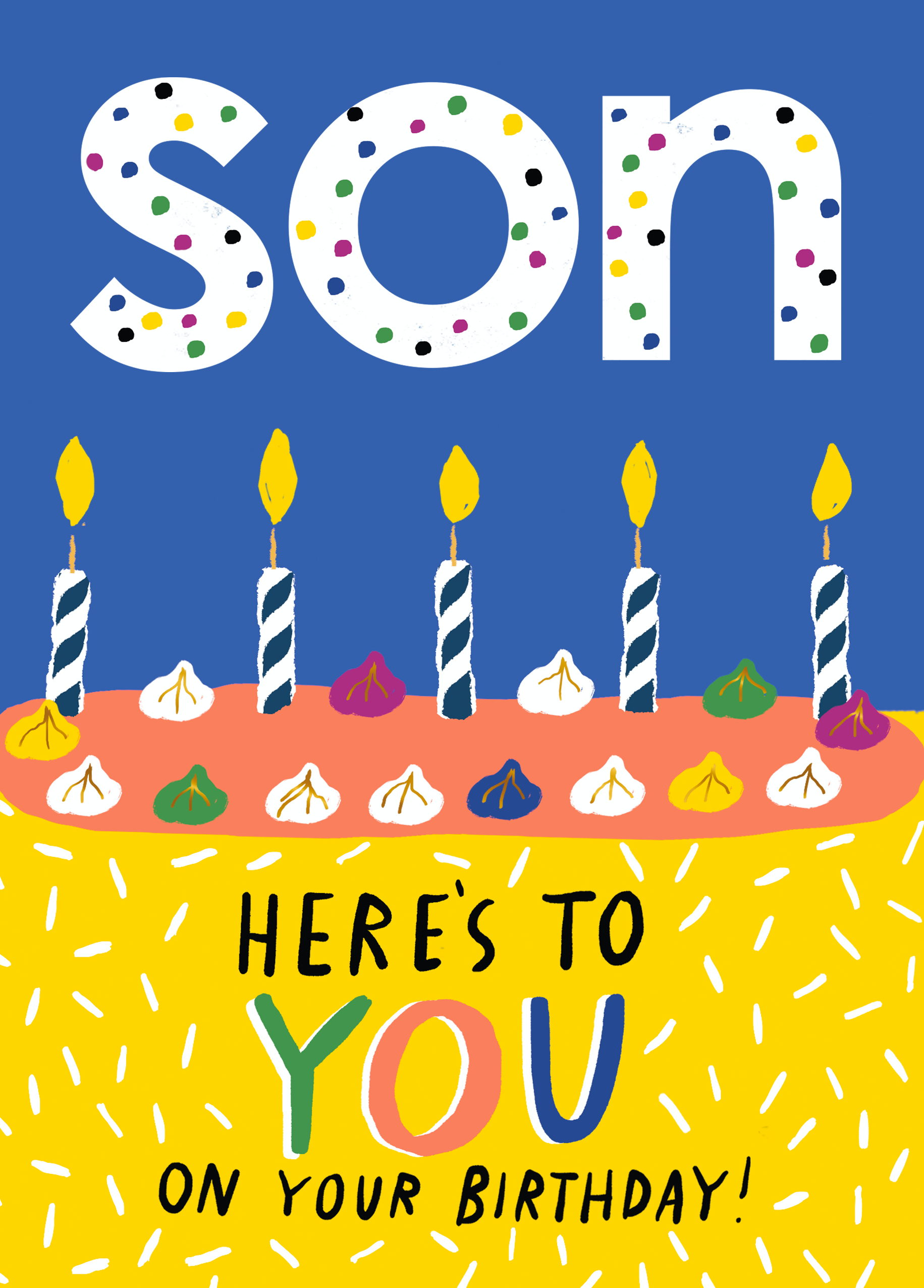 Show them you care with a personalised here's to you son birthday card from Hallmark. Our birthday cards are printed on premium quality, FSC®-certified card & delivered nationwide. This card is available as standard 12cm by 16.7cm and large 15.5cm by 21.6cm.