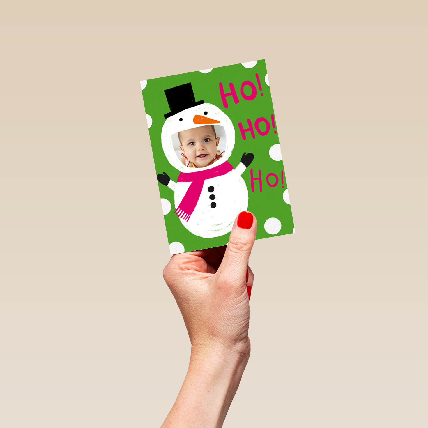 Show them you care with a personalised ho ho ho snowman photo Christmas card from Hallmark. Our greetings cards are printed on premium quality, FSC®-certified card & delivered nationwide. This card is available as standard 12cm by 16.7cm and large 15.5cm by 21.6cm.