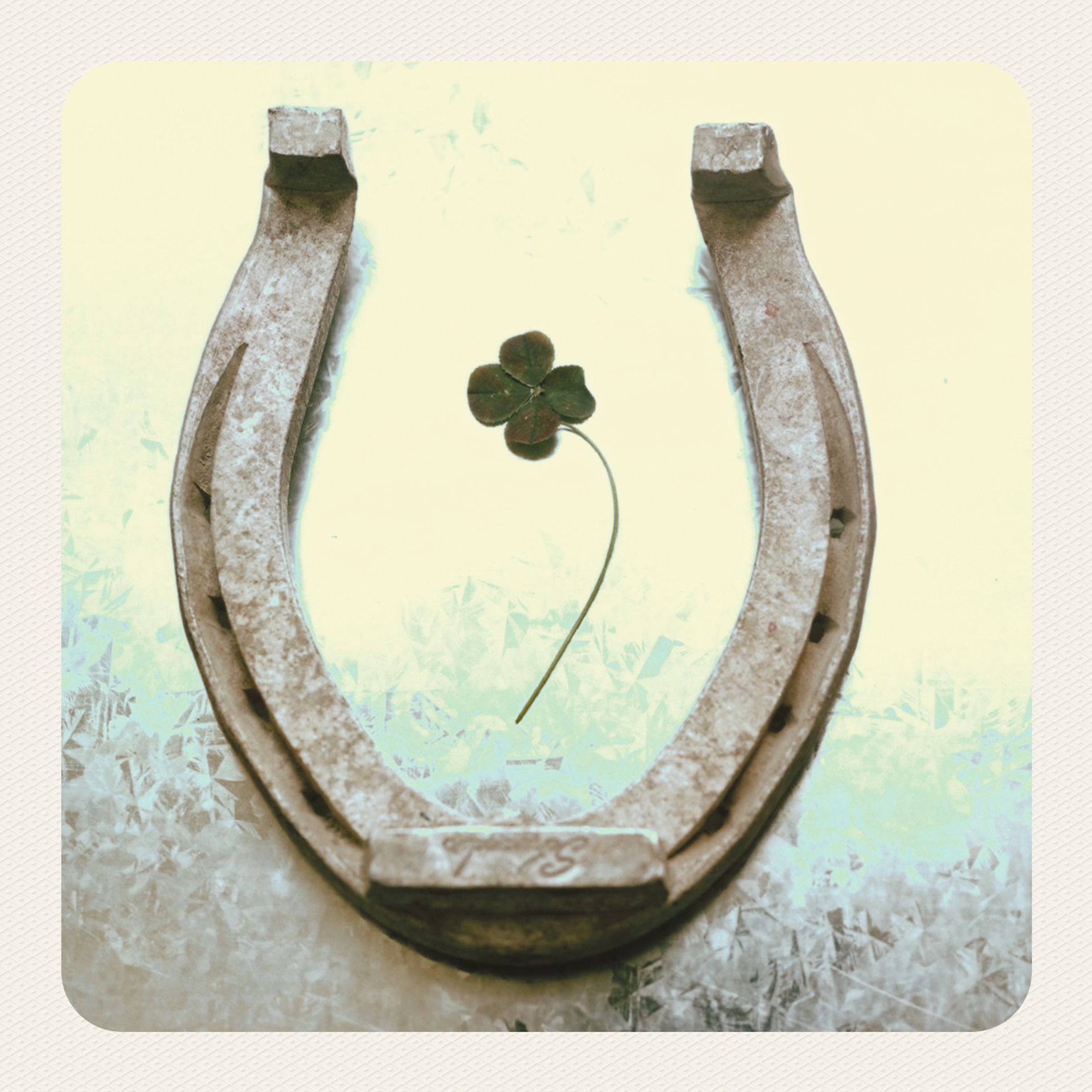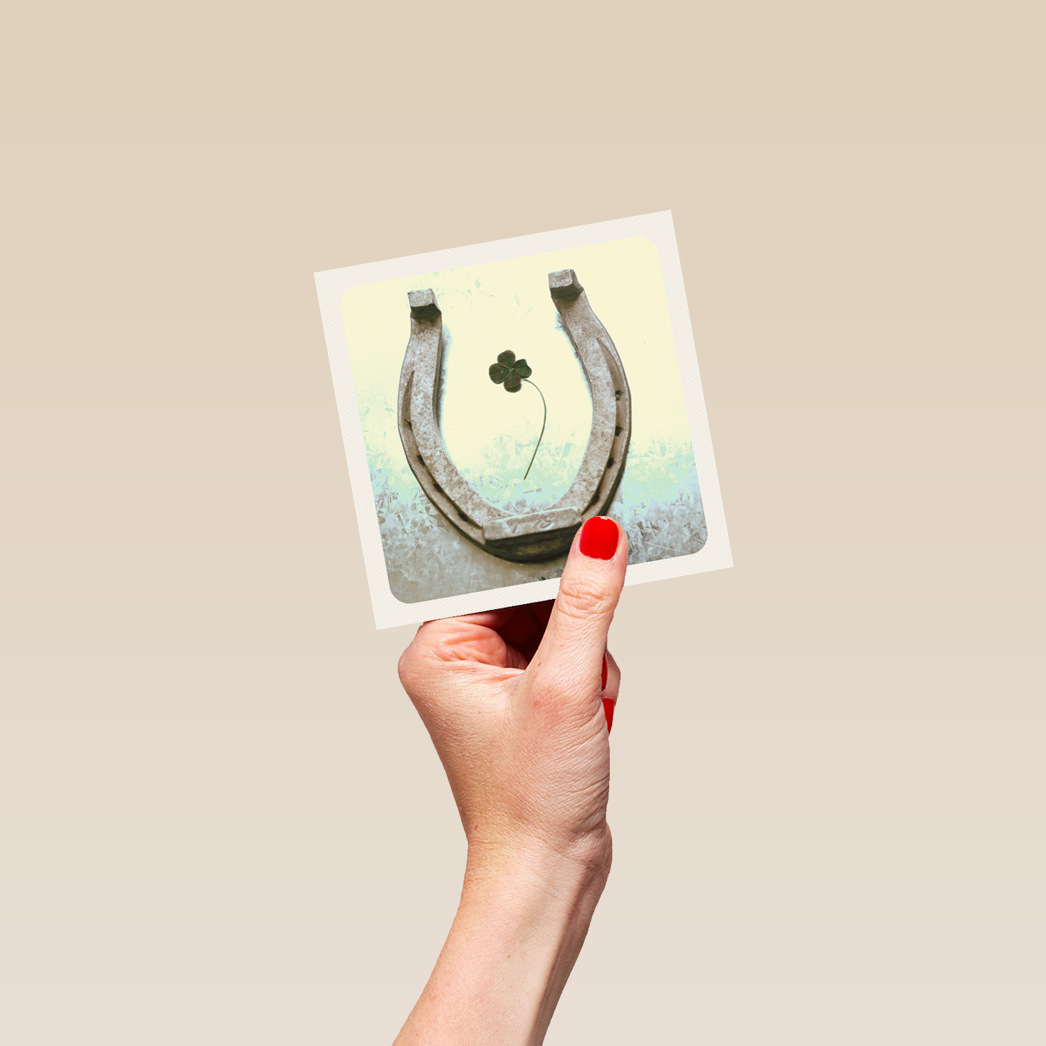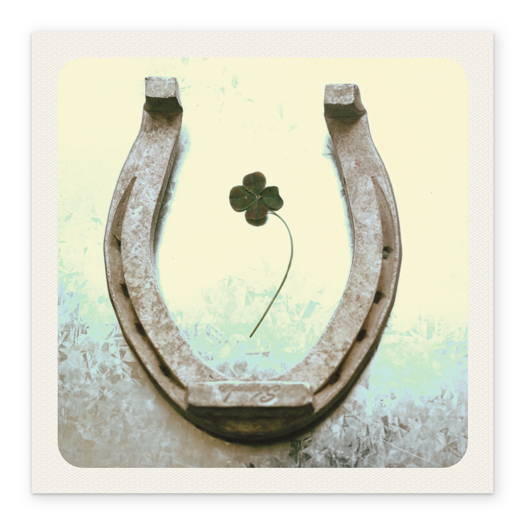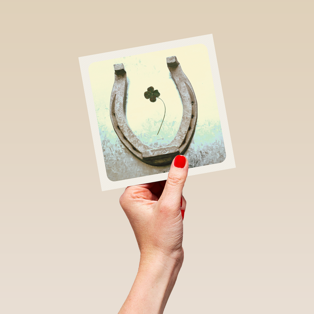 Printed on premium-quality board, this card features a four leaf clover and lucky horseshoe, and comes complete with a co-ordinating white envelope.