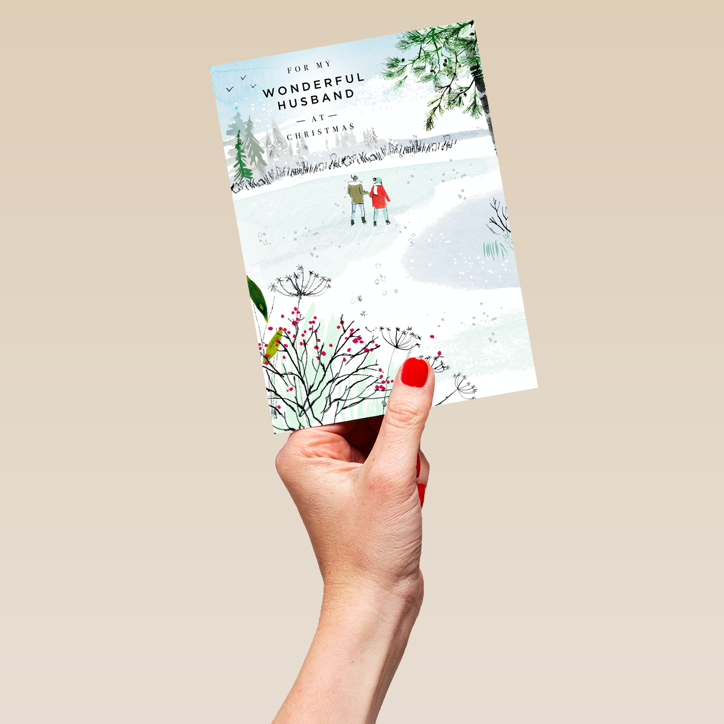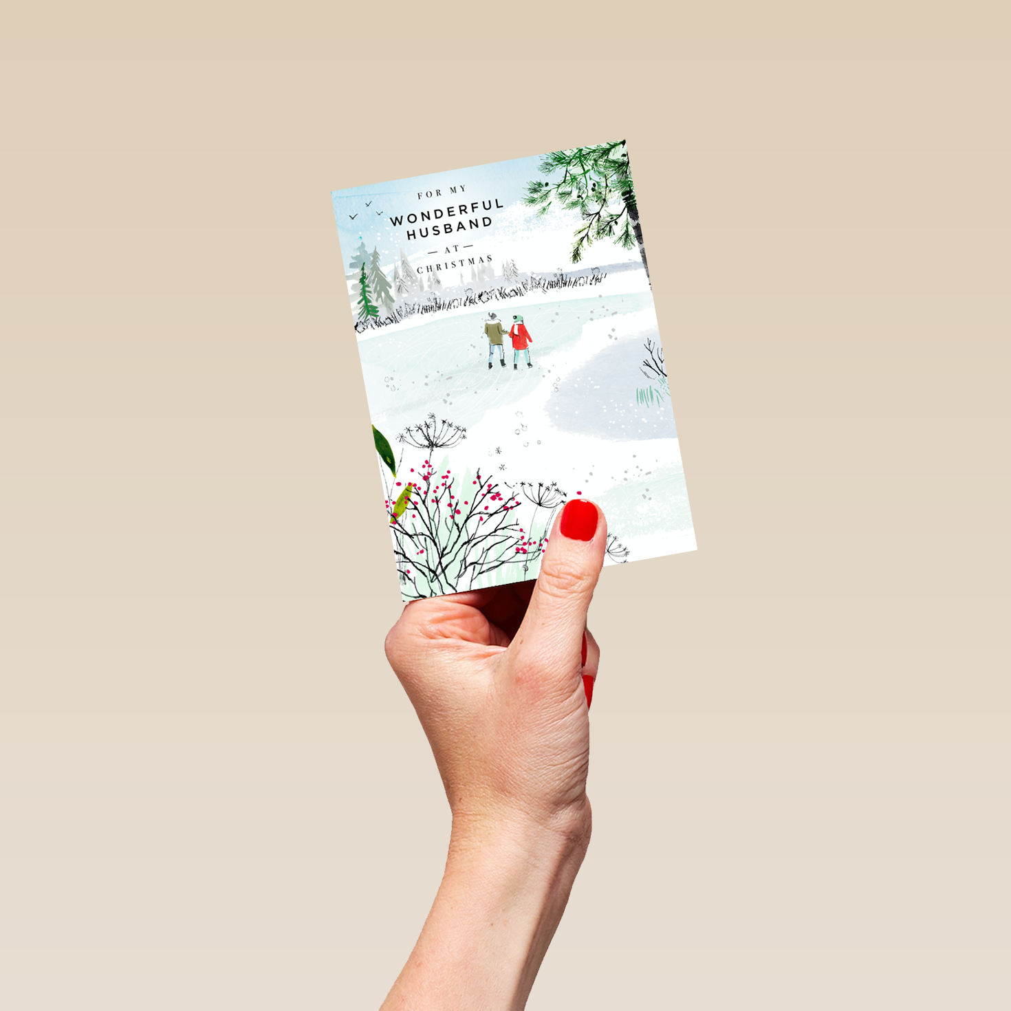 Show them you care with a personalised husband snow design card from Hallmark. Our Christmas cards are printed on premium quality, FSC®-certified card & delivered nationwide. This card is available as standard 12cm by 16.7cm and large 15.5cm by 21.6cm.