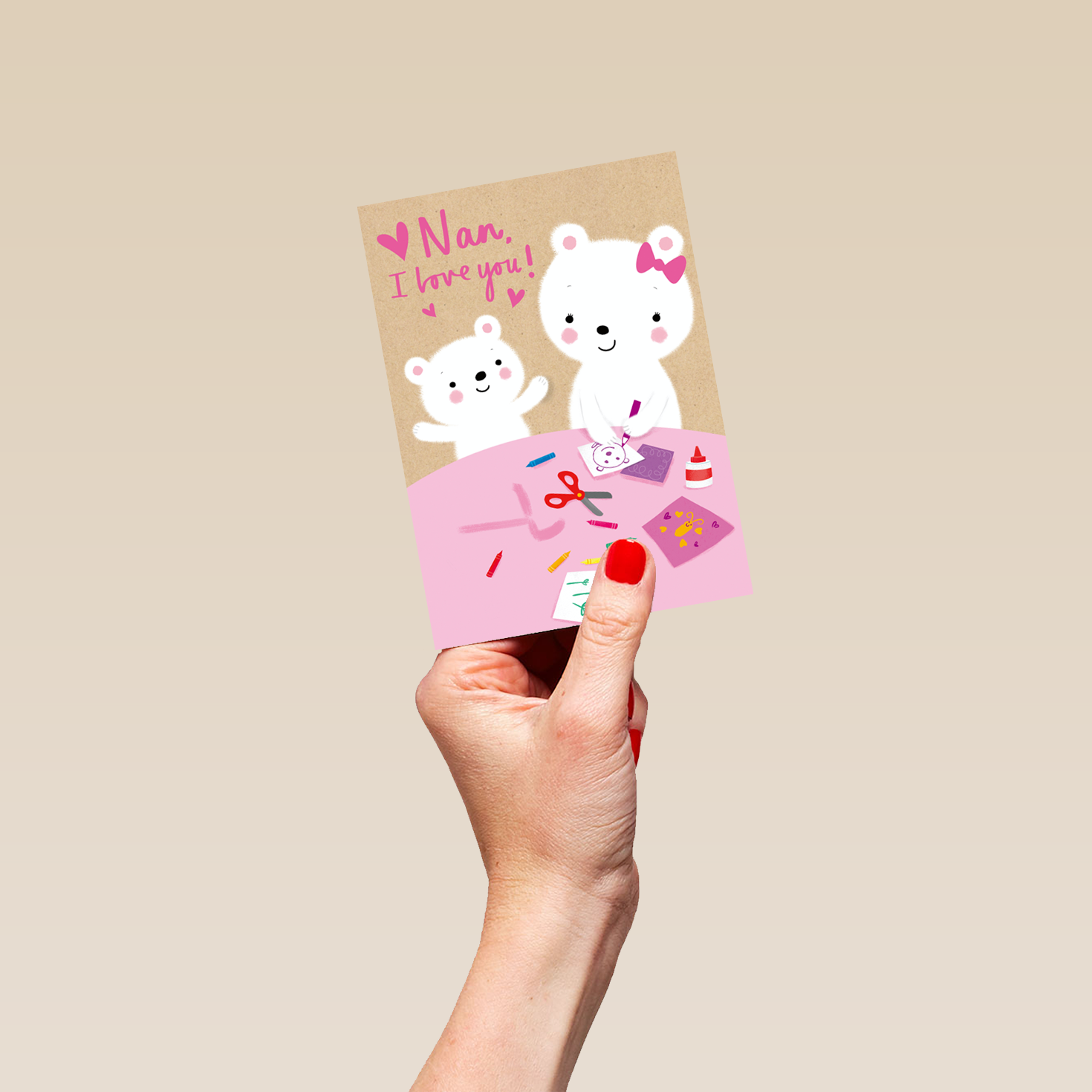 Personalised I Love You Nan Crafting Bears Birthday Card
