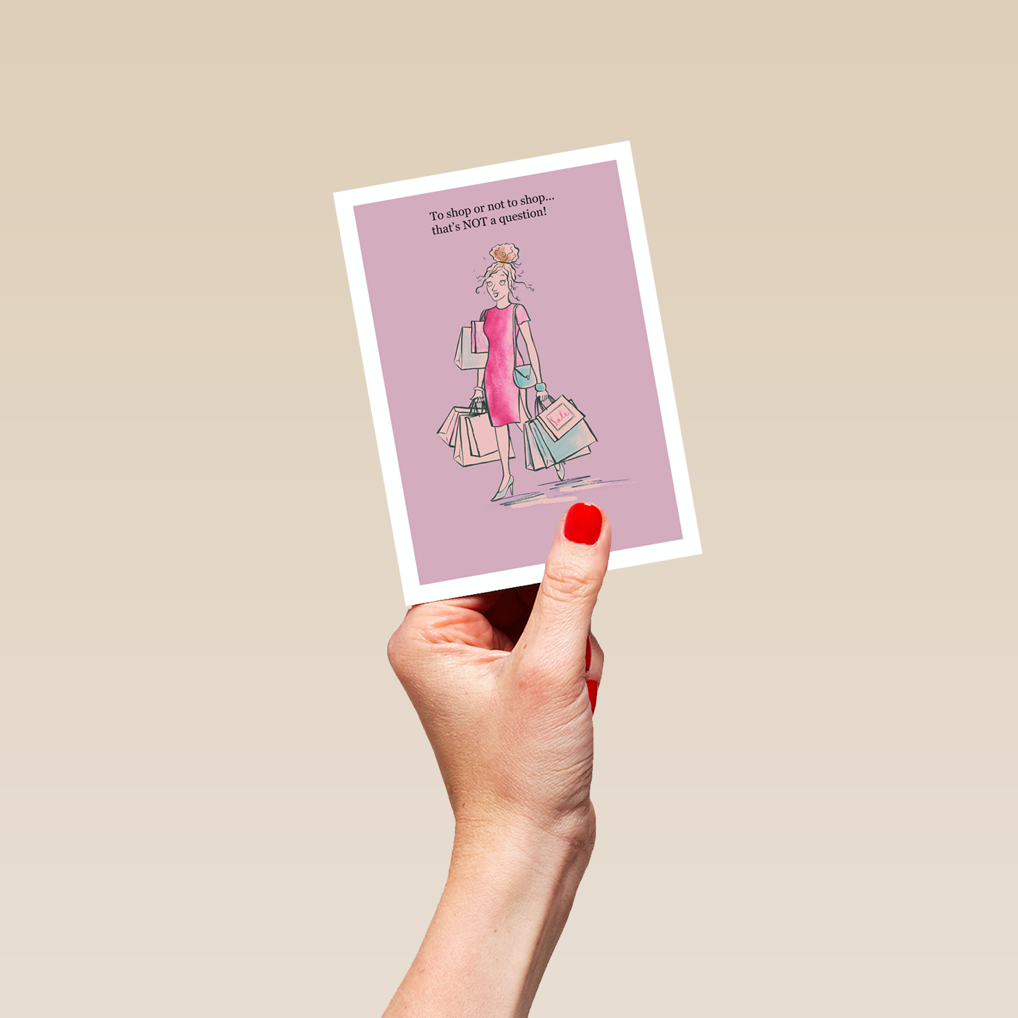 Personalised Illustrated To Shop Or Not To Shop Birthday Card