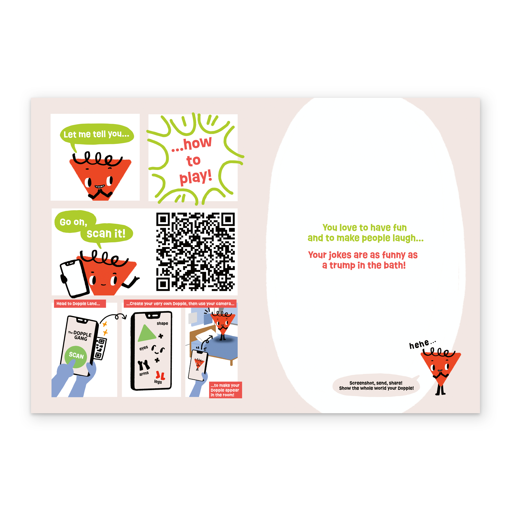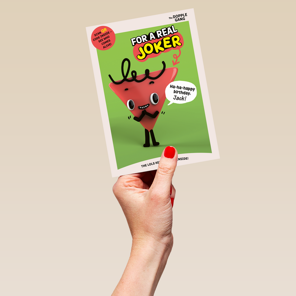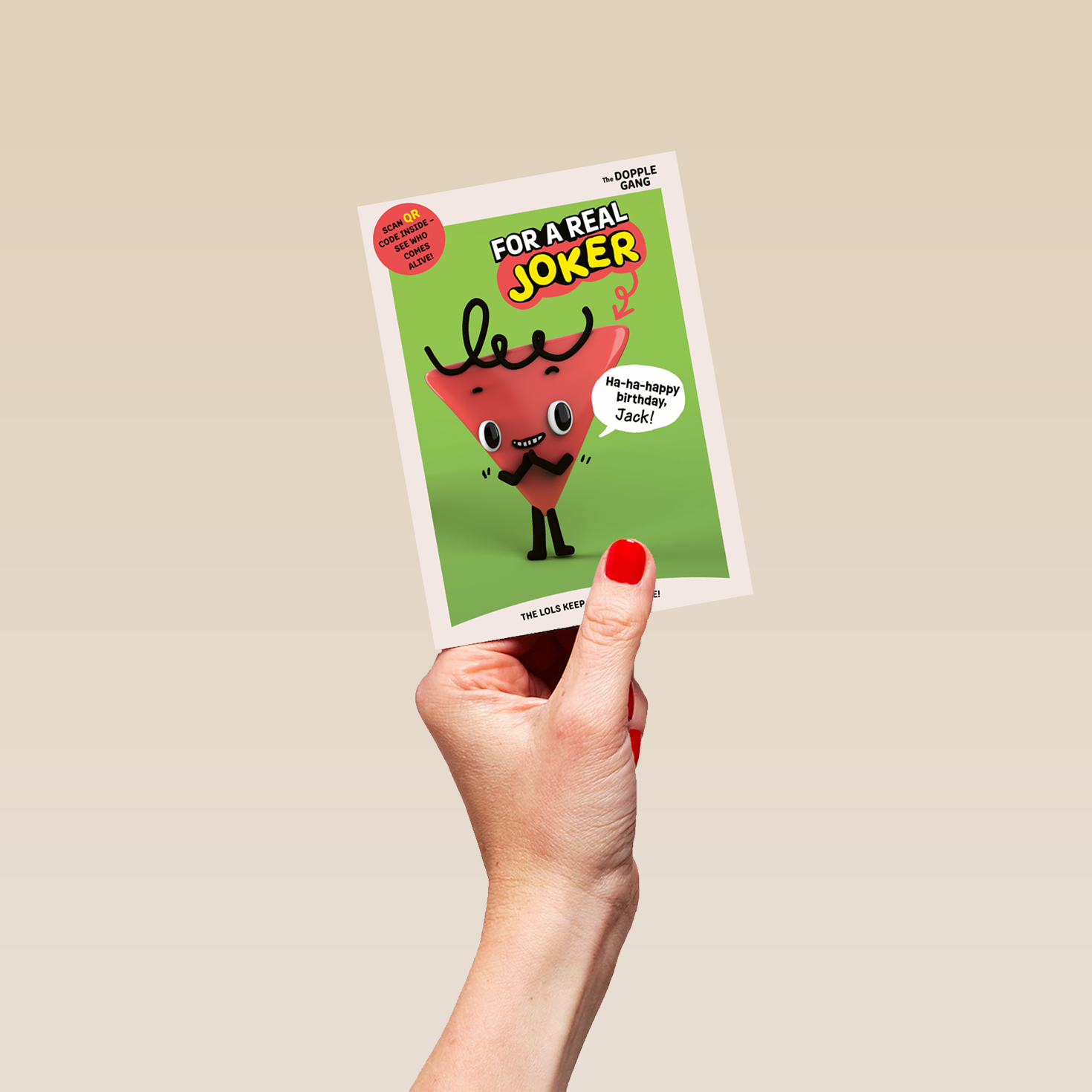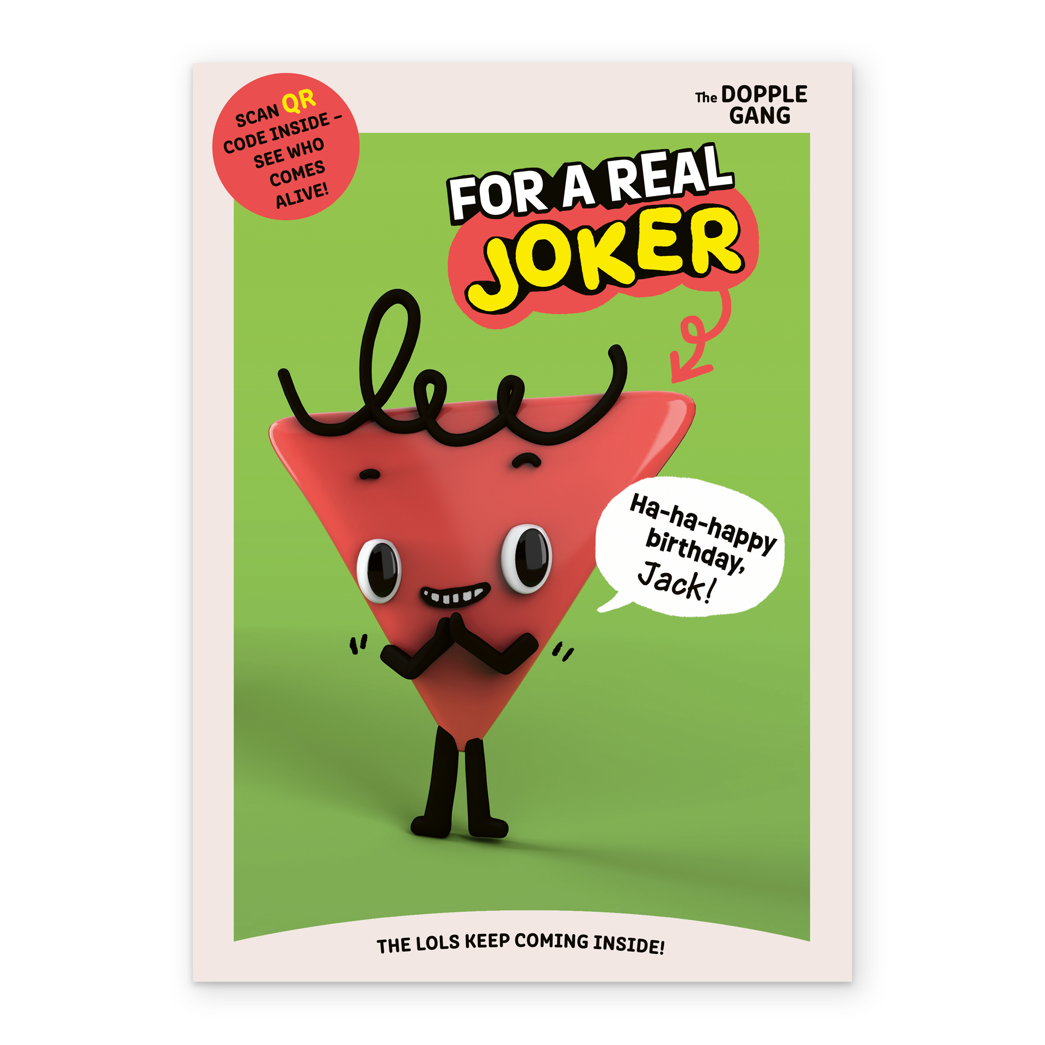 Printed on premium-quality board, this card features The Dopple Gang character Joker, and includes a QR code you can scan to see the character come to life.