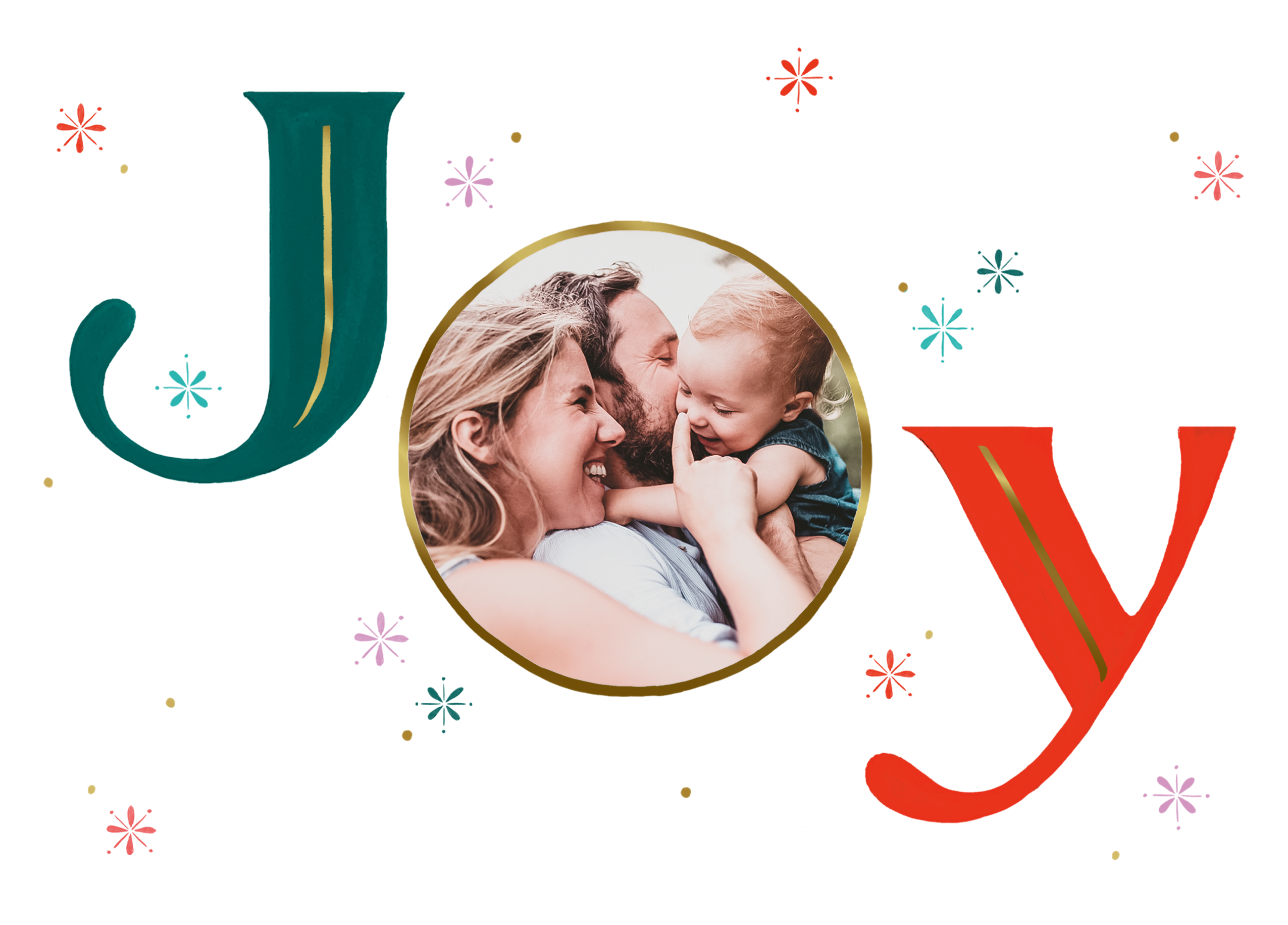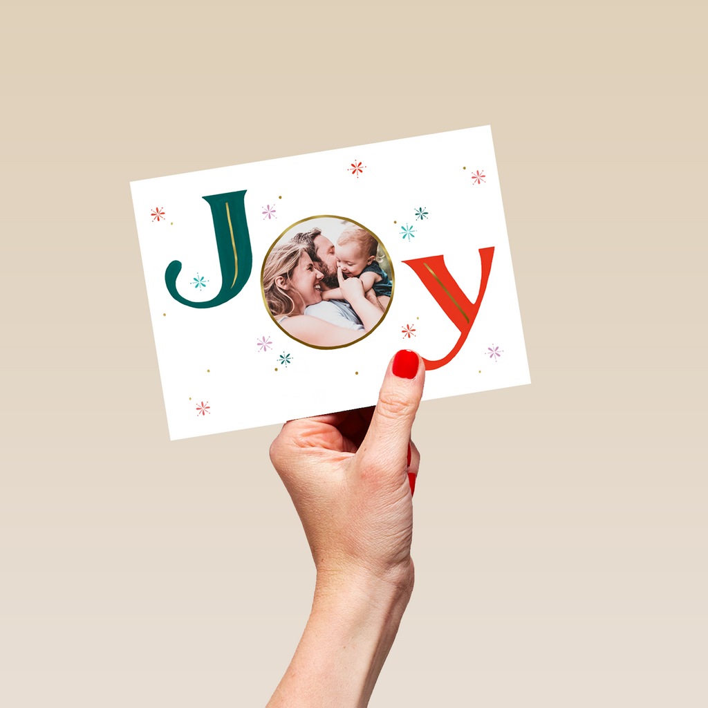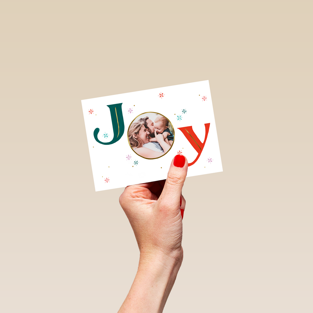Share what brings you joy this festive season and celebrate the faces you love with this simple and stylish Personalised 'Joy' Photo Upload Christmas card.