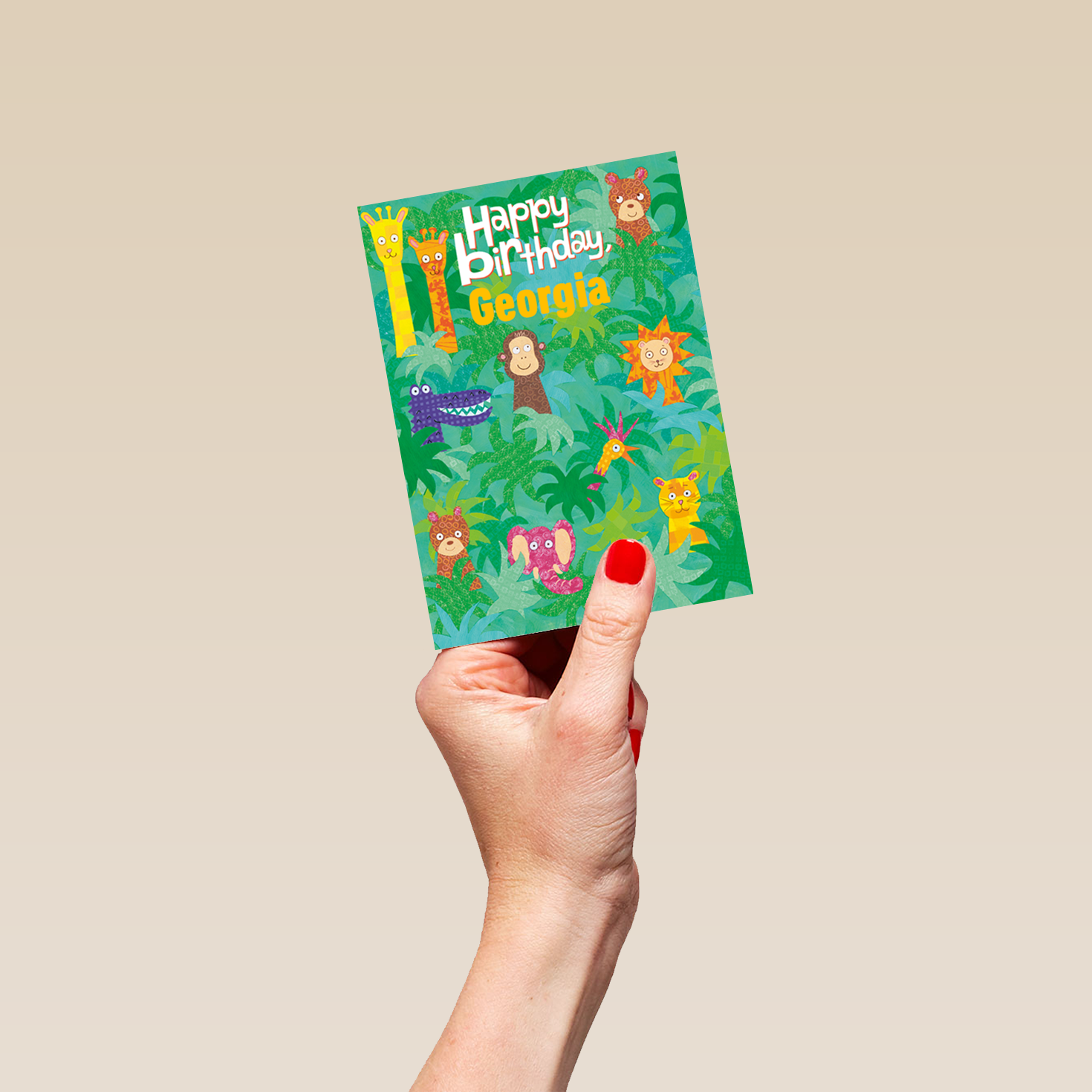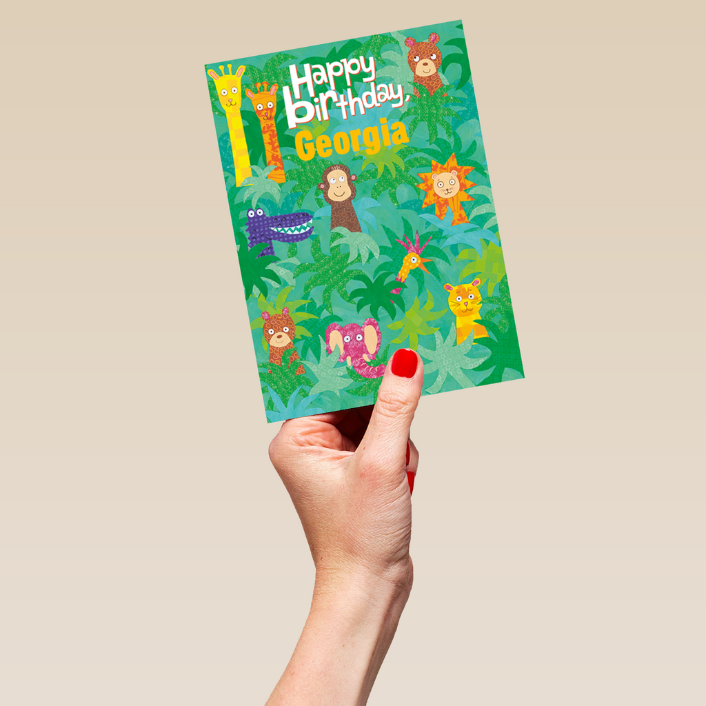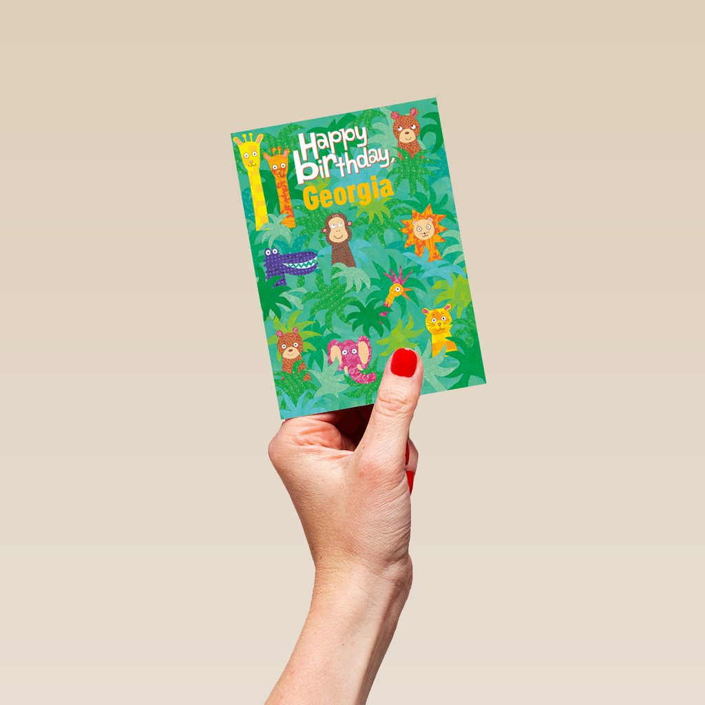 Show them you care with a personalised jungle animals daughter birthday card from Hallmark. Our greetings cards are printed on premium quality, FSC®-certified card & delivered nationwide.