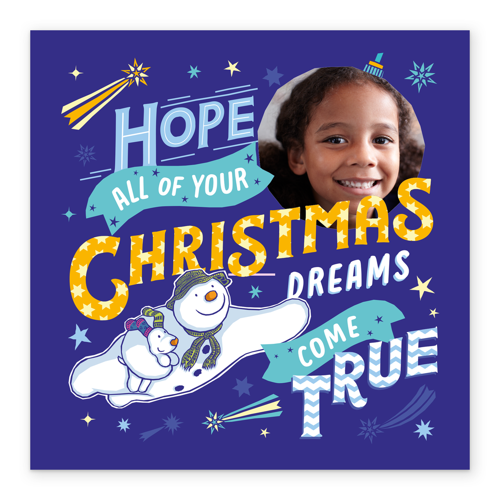 Printed on premium-quality board, this card features The Snowman™ and Snowdog, space to upload a photo, and comes complete with a co-ordinating white envelope.