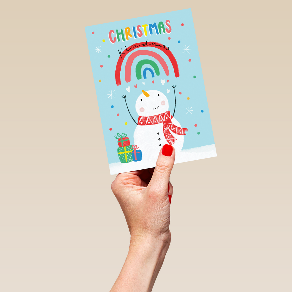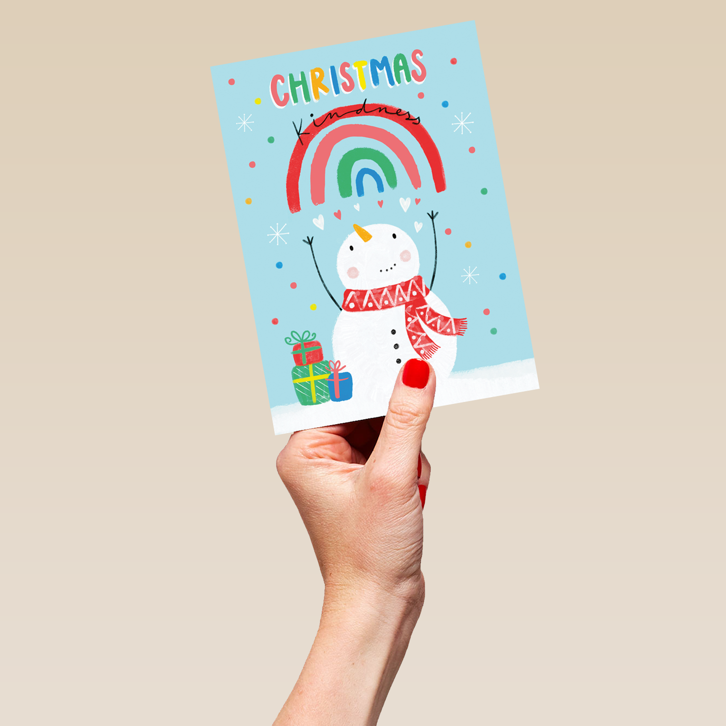 Personalised Kids Christmas Snowman Rainbow Cute Card