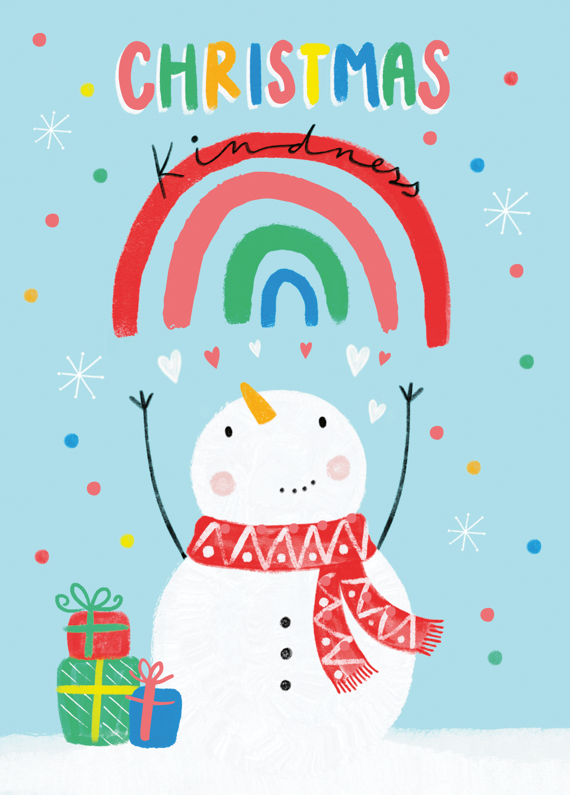 Show them you care with a personalised kids Christmas snowman rainbow cute card from Hallmark. Our greetings cards are printed on premium quality, FSC®-certified card & delivered nationwide. This card is available as standard 12cm by 16.7cm and large 15.5cm by 21.6cm.