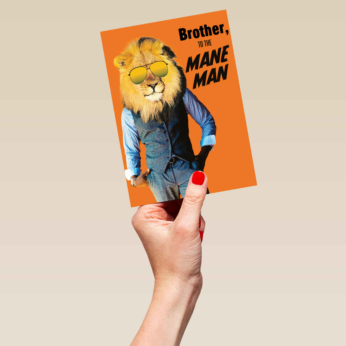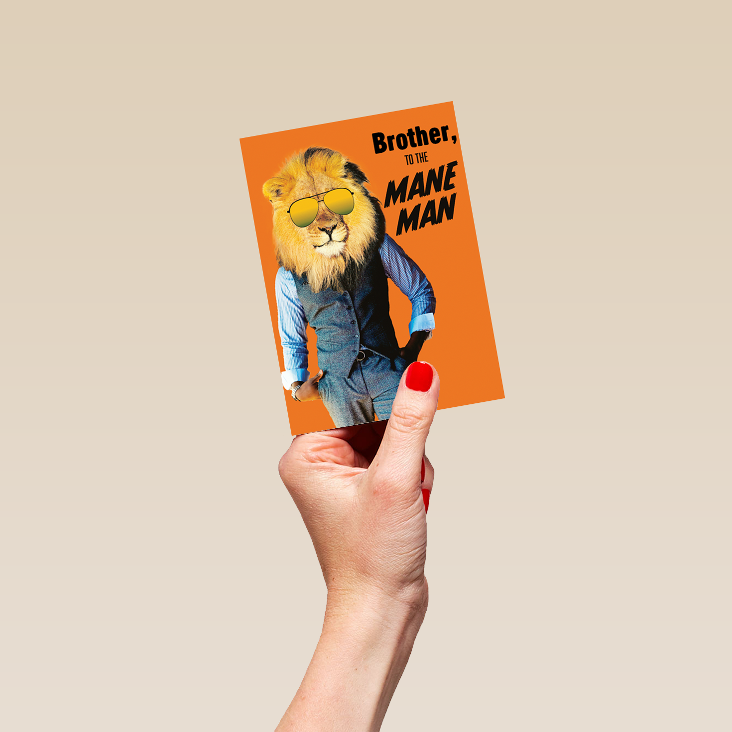 Show them you care with a personalised lion mane man brother card from Hallmark. Our birthday cards are printed on premium quality, FSC®-certified card & delivered nationwide. This card is available as standard 12cm by 16.7cm and large 15.5cm by 21.6cm.