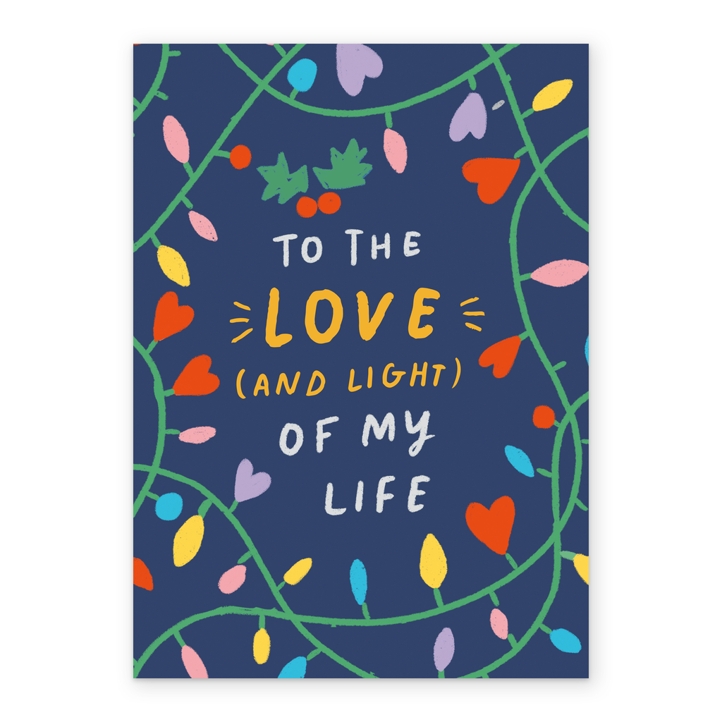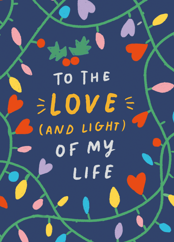 Show them you care with a personalised love of my life fairy lights modern Christmas card from Hallmark. Our greetings cards are printed on premium quality, FSC®-certified card & delivered nationwide. This card is available as standard 12cm by 16.7cm and large 15.5cm by 21.6cm.