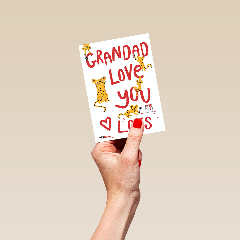 Show them you care with a personalised love you grandad card from Hallmark. Our cards for Grandpa are printed on premium quality, FSC®-certified card & delivered nationwide. This card is available as standard 12cm by 16.7cm and large 15.5cm by 21.6cm.