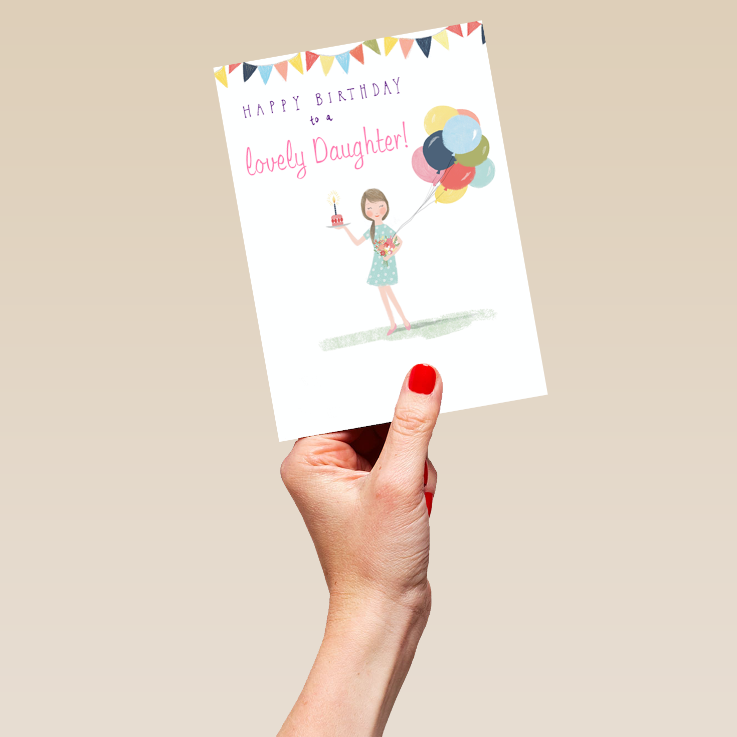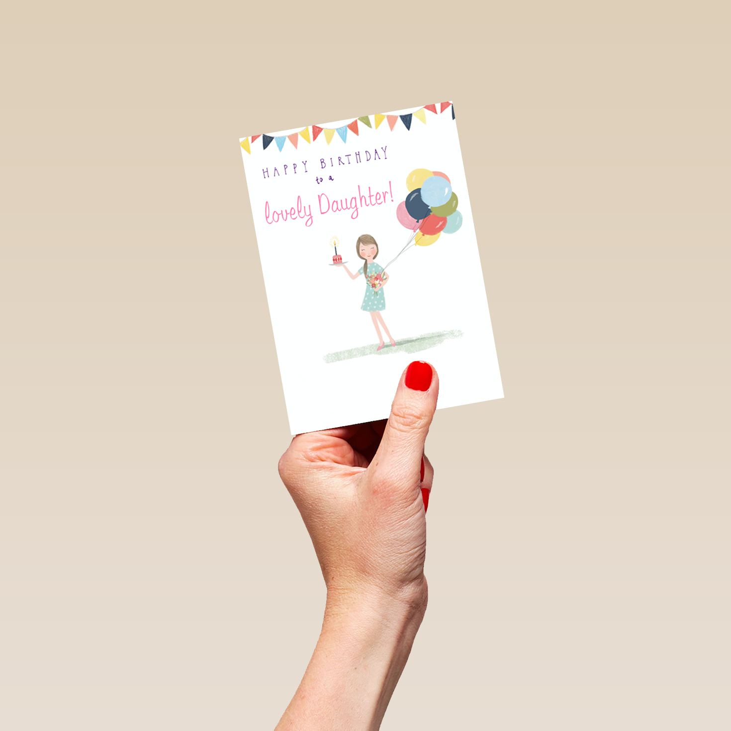 Show them you care with a personalised lovely balloons birthday card for daughter from Hallmark. Our greetings cards are printed on premium quality, FSC®-certified card & delivered nationwide. This card is available as standard 12cm by 16.7cm and large 15.5cm by 21.6cm.