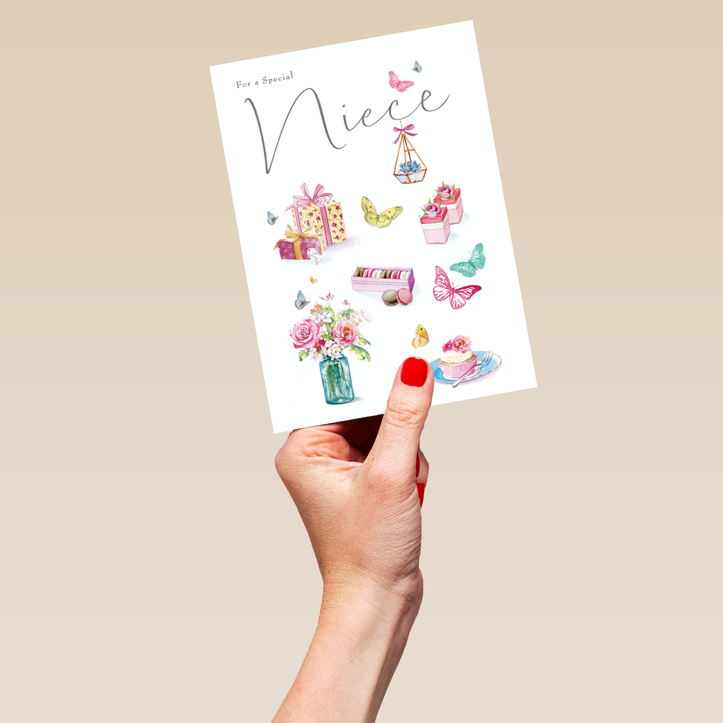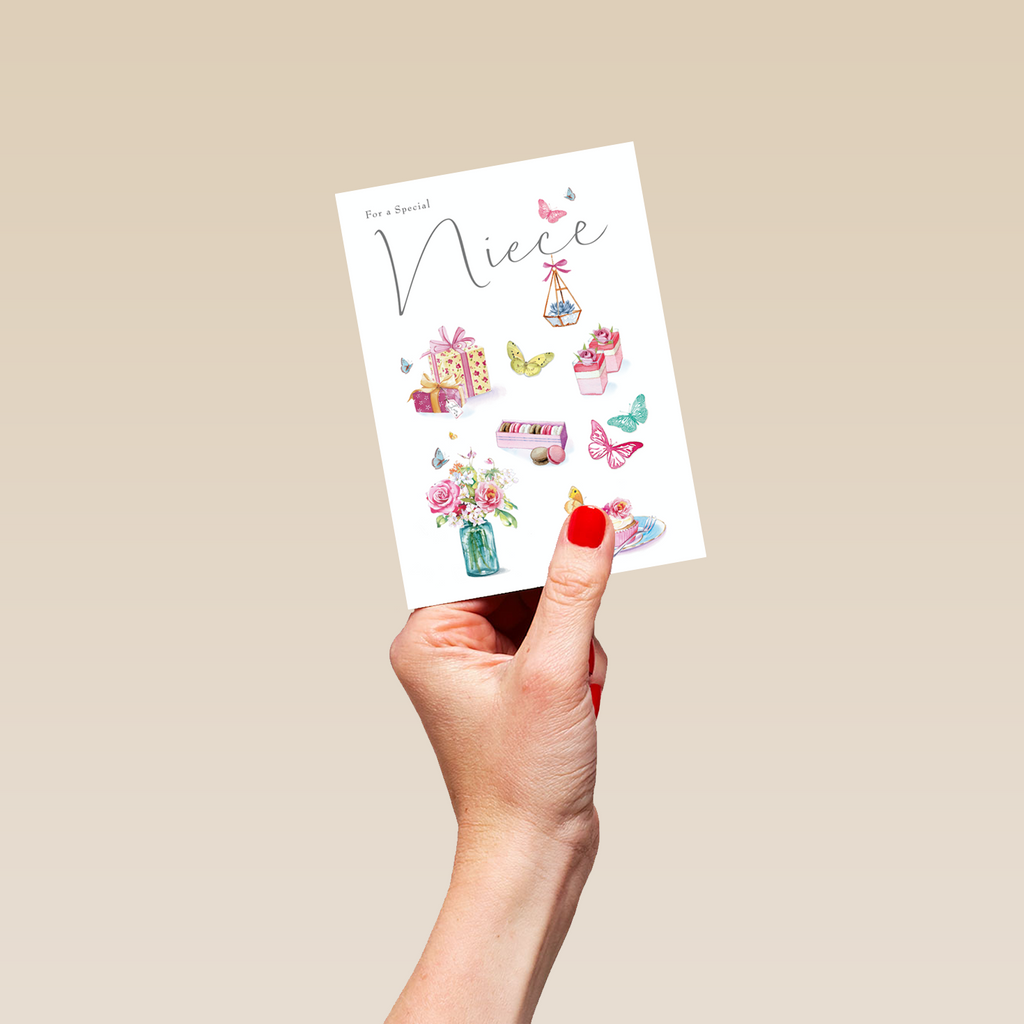 Show them you care with a personalised Lucy Cromwell traditional gifts birthday card for niece from Hallmark. Our birthday cards are printed on premium quality, FSC®-certified card & delivered nationwide. This card is available as standard 12cm by 16.7cm and large 15.5cm by 21.6cm.