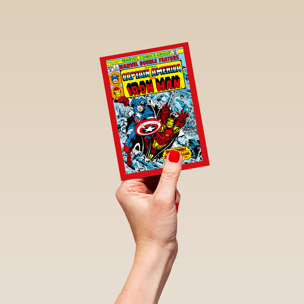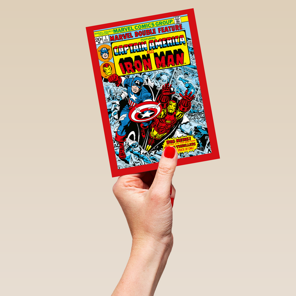 Show them you care with a personalised Marvel Avengers Captain America vs Iron Man card from Hallmark. Our greetings cards are printed on premium quality, FSC®-certified card & delivered nationwide. This card is available as standard 12cm by 16.7cm and large 15.5cm by 21.6cm.