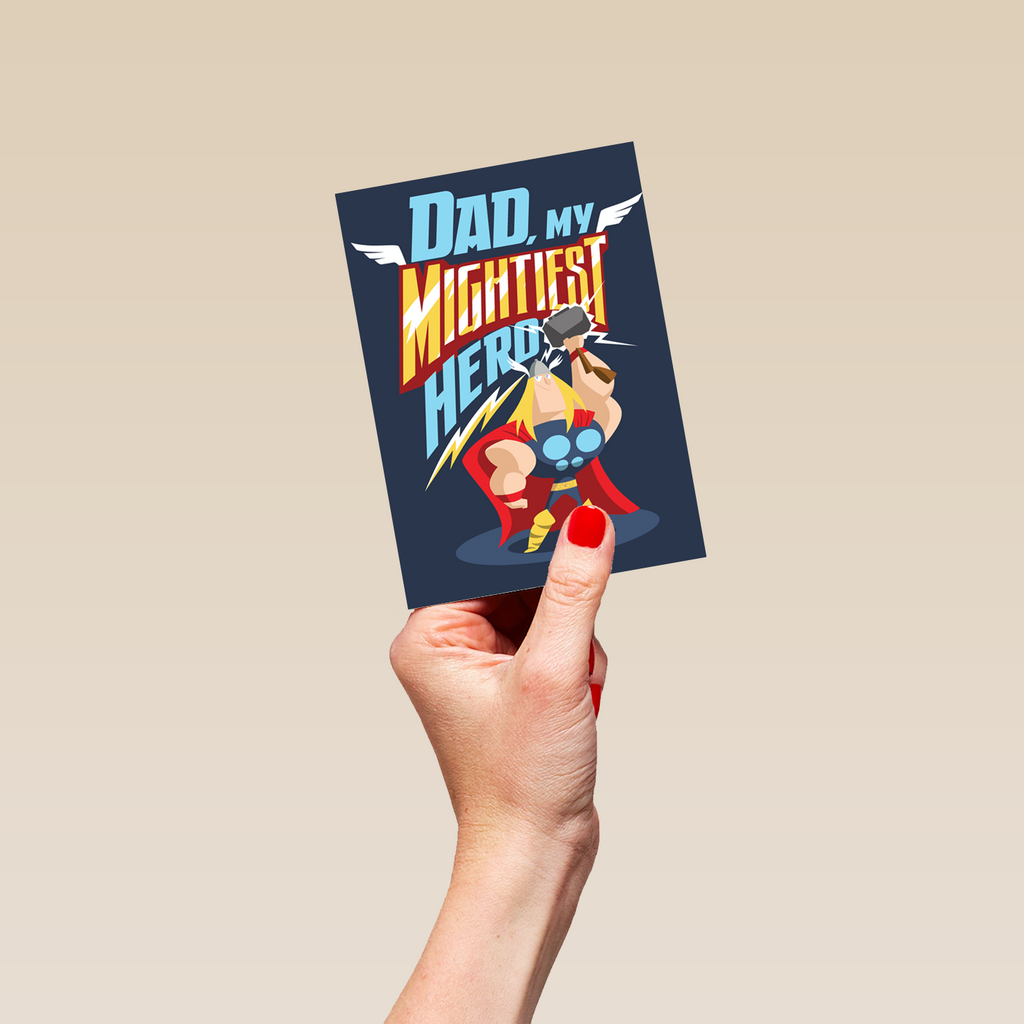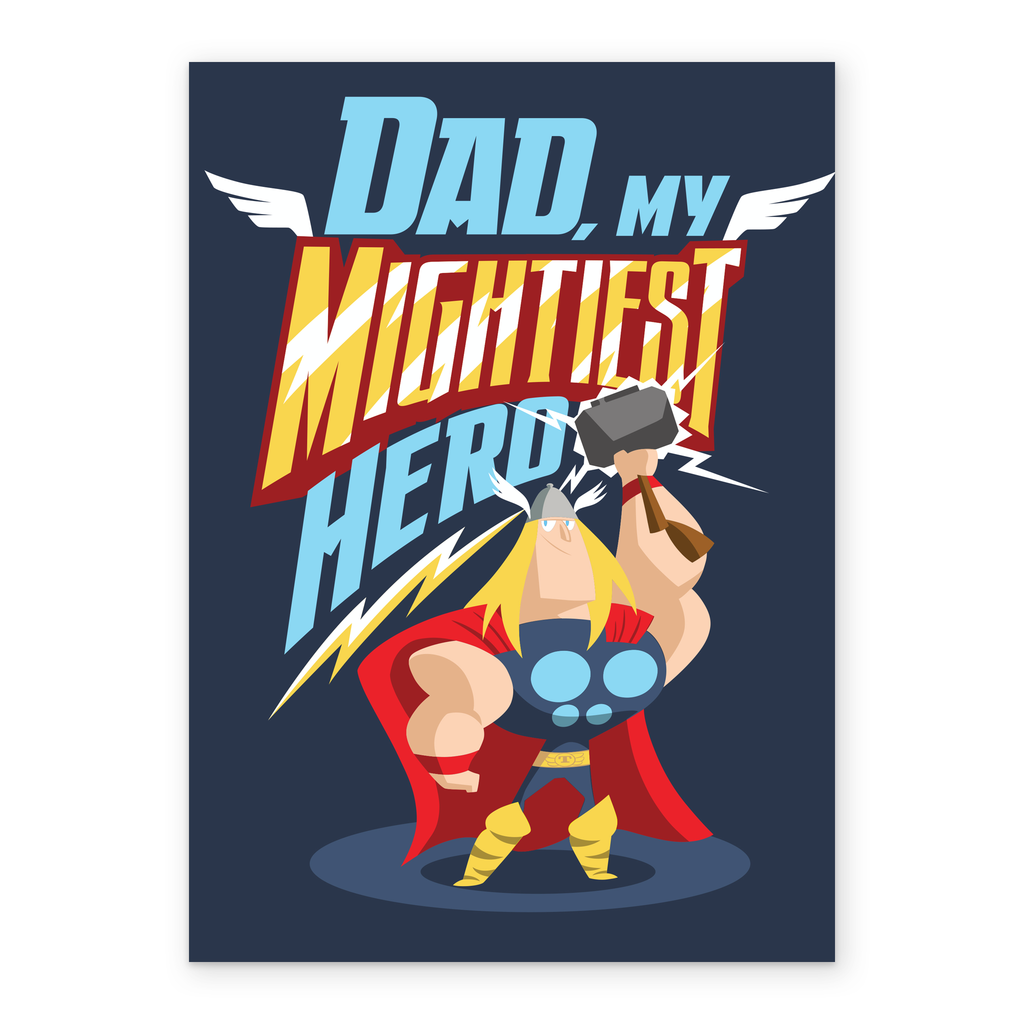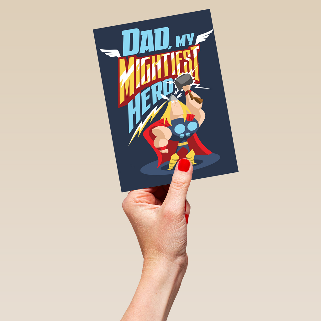 Show them you care with a personalised MARVEL Avengers my mightiest hero father's day card from Hallmark. Our Father's Day cards are printed on premium quality, FSC®-certified card & delivered nationwide.This card is available as standard 12cm by 16.7cm and large 15.5cm by 21.6cm.