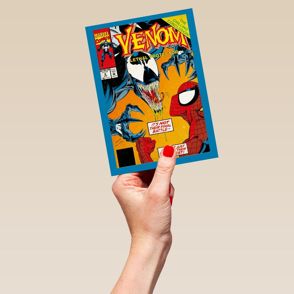 Show them you care with a personalised Marvel Avengers Venom lethal protection card from Hallmark. Our greetings cards are printed on premium quality, FSC®-certified card & delivered nationwide. This card is available as standard 12cm by 16.7cm and large 15.5cm by 21.6cm.