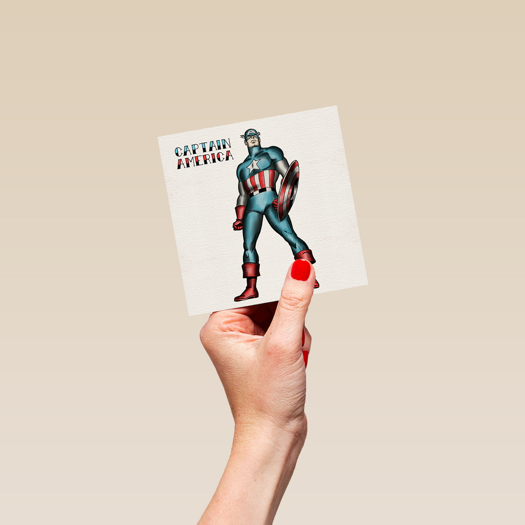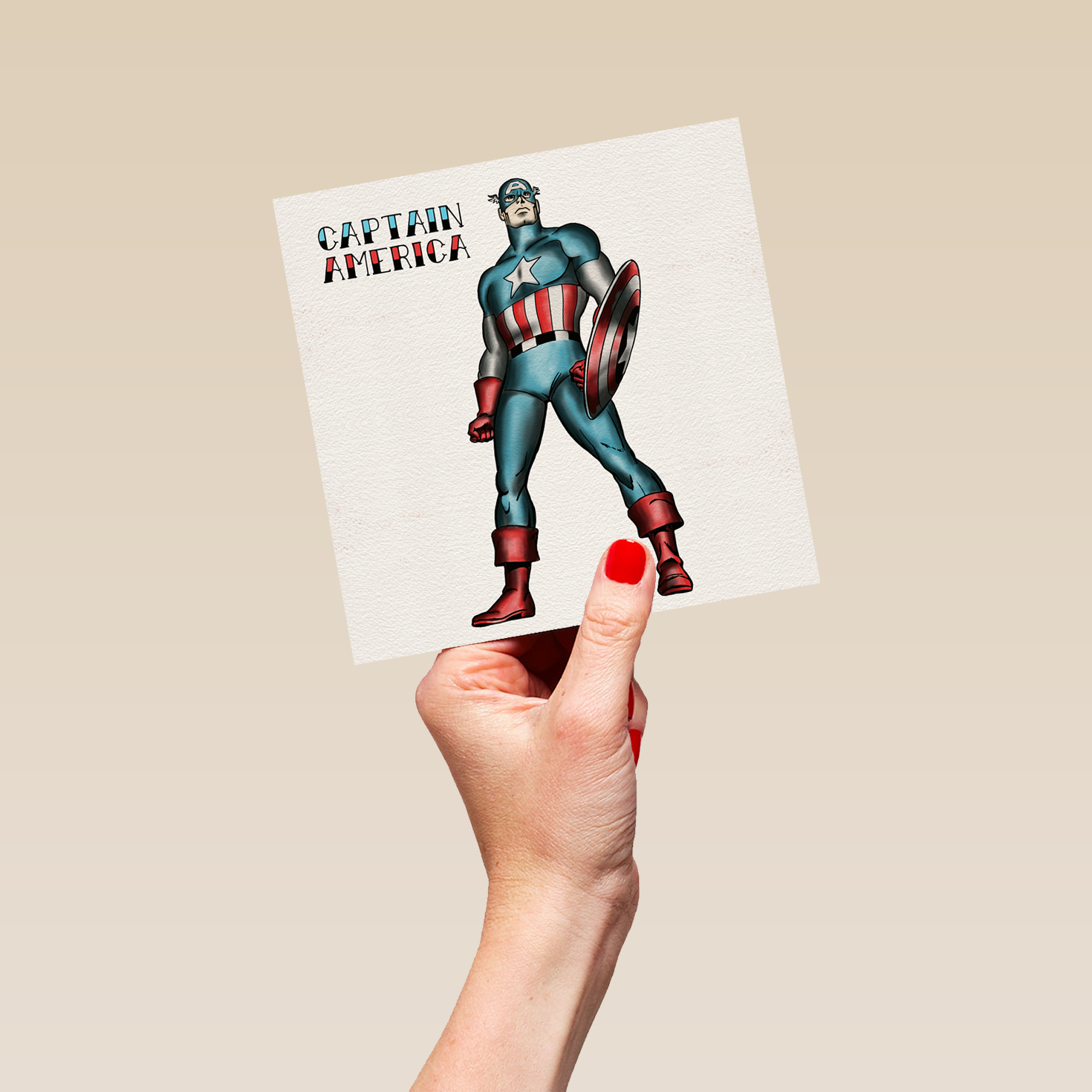Show them you care with a personalised Disney Marvel Captain America hero birthday card from Hallmark. Our greetings cards are printed on premium quality, FSC®-certified card & delivered nationwide. This card is available as standard 12cm by 12cm and large 15cm by 15cm.