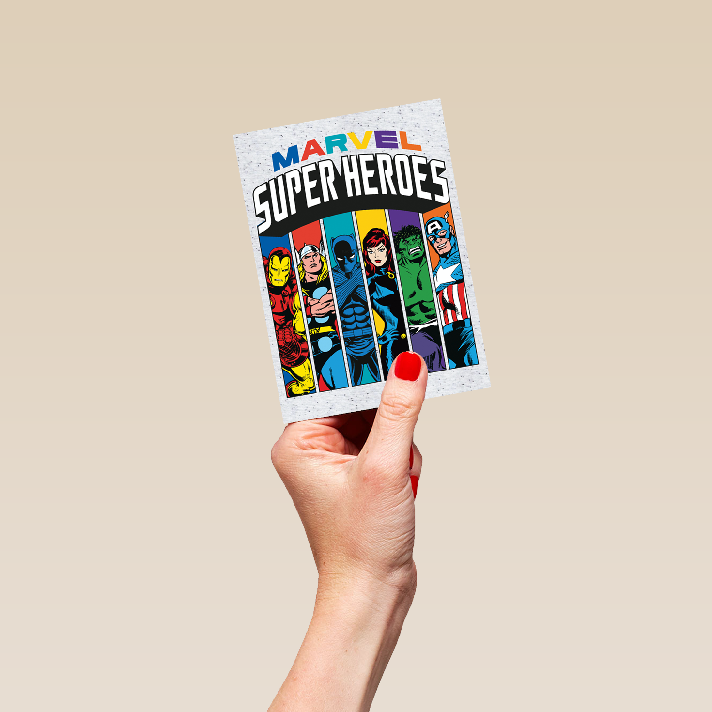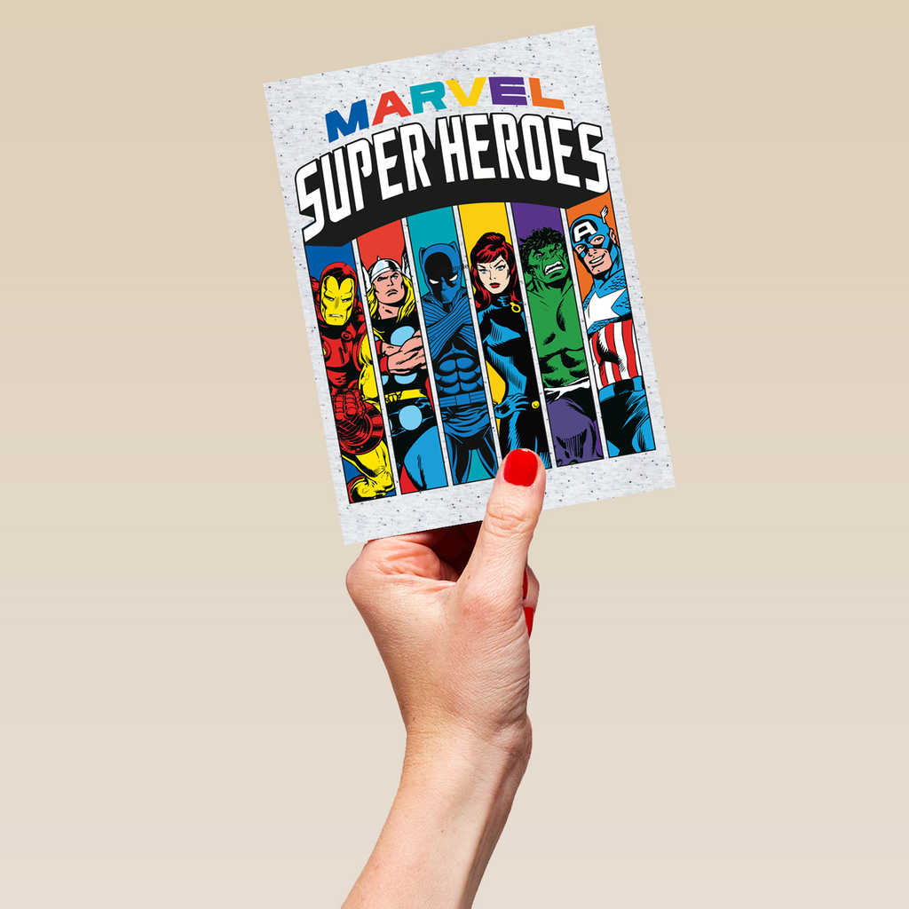 Show them you care with a personalised Disney Marvel comics superheroes birthday card from Hallmark. Our greetings cards are printed on premium quality, FSC®-certified card & delivered nationwide. This card is available as standard 12cm by 16.7cm and large 15.5cm by 21.6cm.