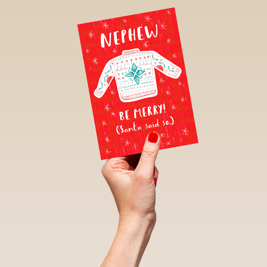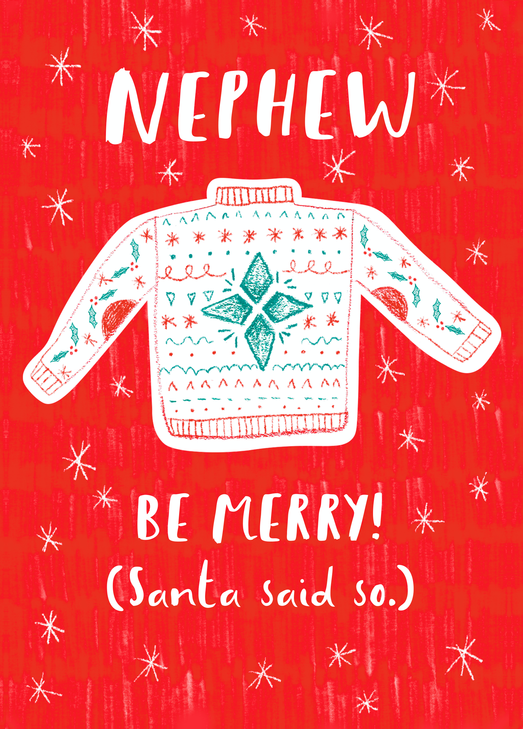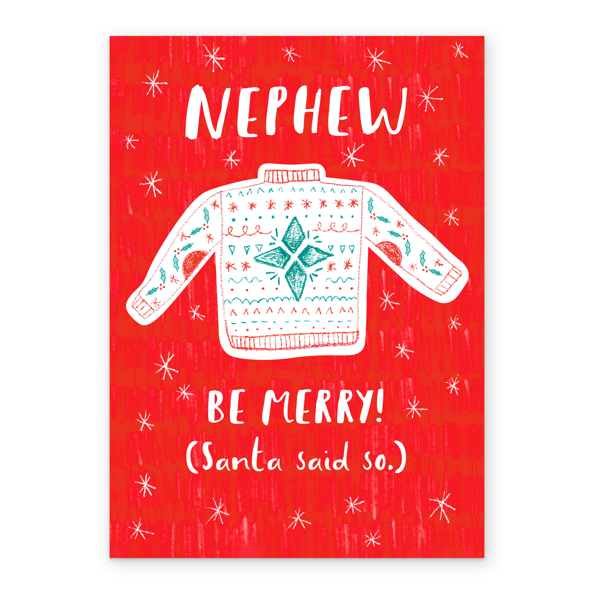 Personalised Merry Christmas Jumper Nephew Christmas Card