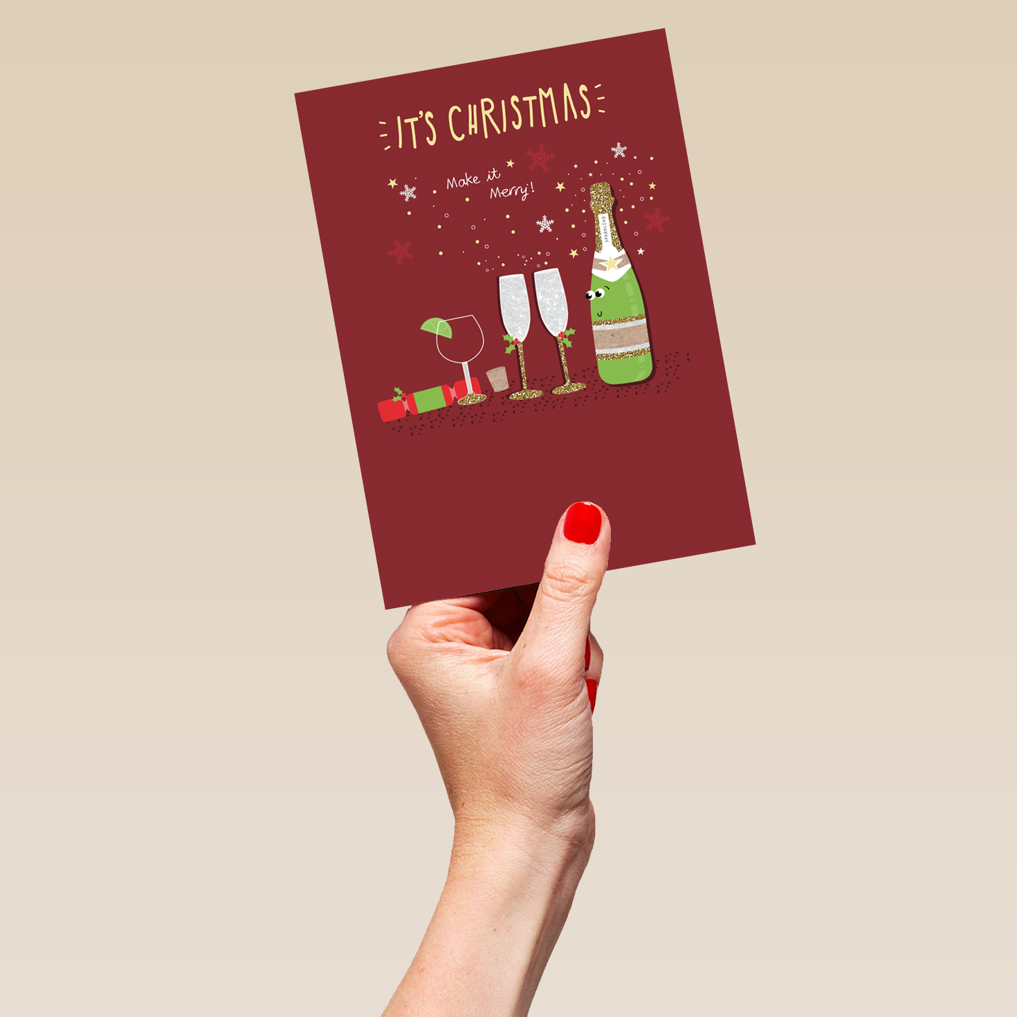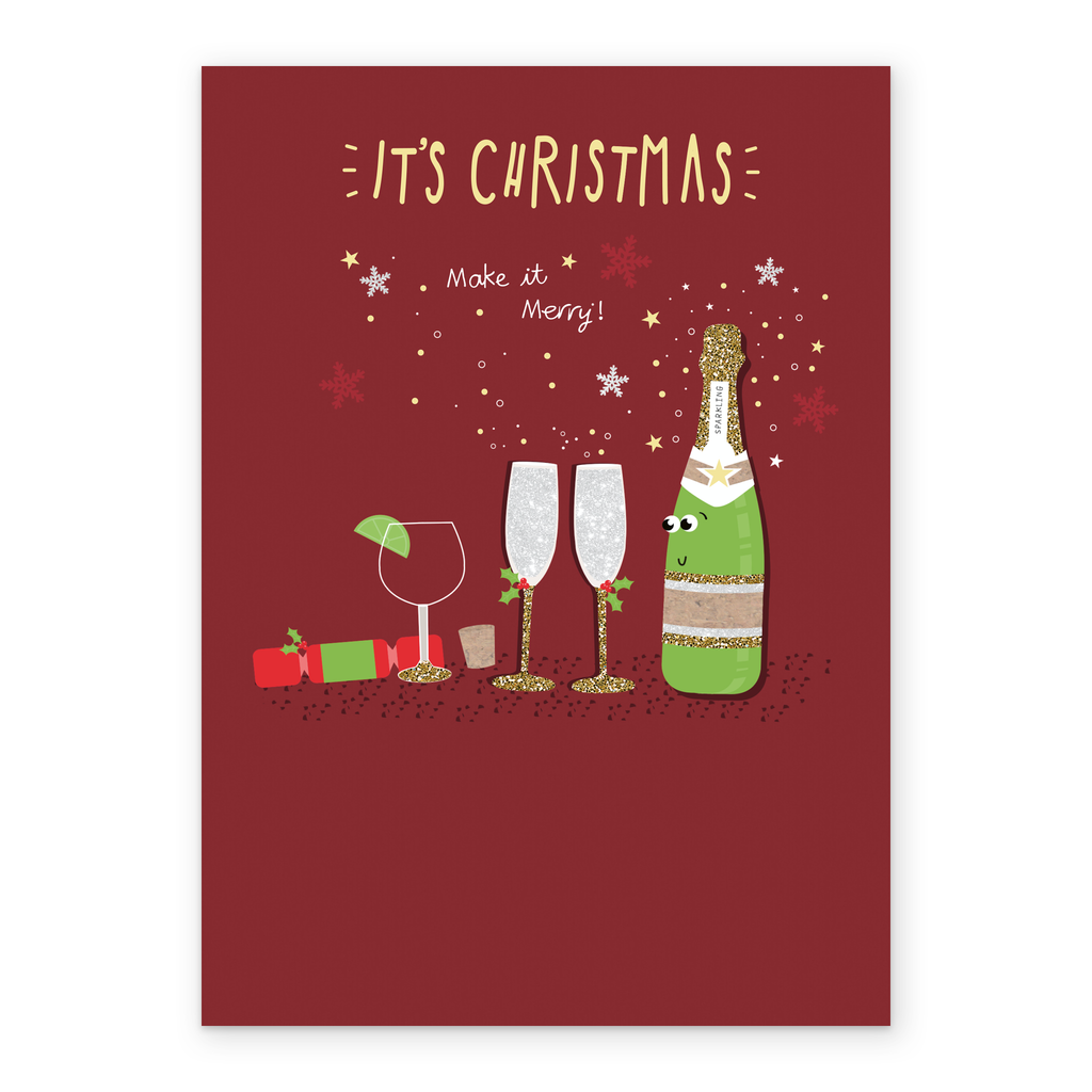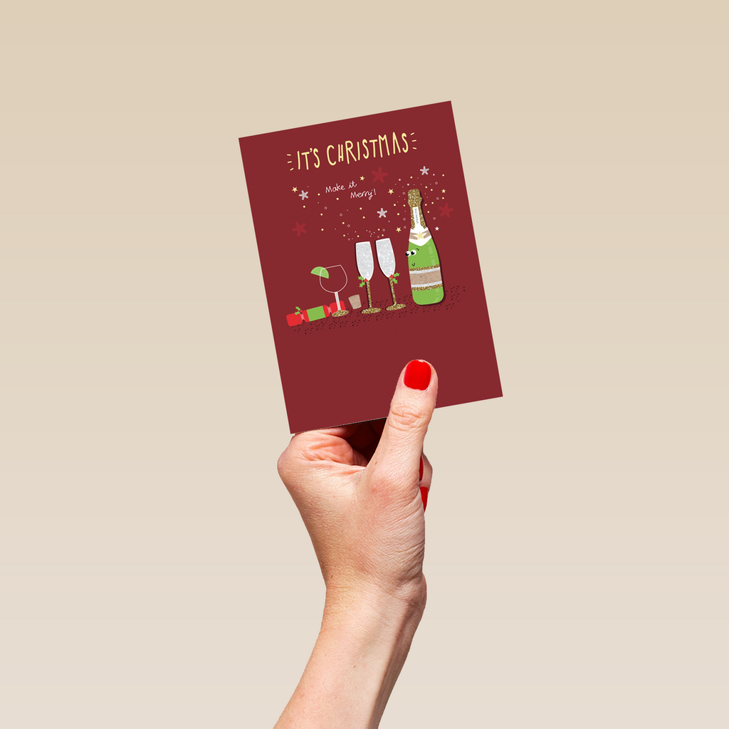 Show them you care with a personalised Merry Christmas wine card from Hallmark. Our Christmas cards are printed on premium quality, FSC®-certified card & delivered nationwide. This card is available as standard 12cm by 16.7cm and large 15.5cm by 21.6cm.