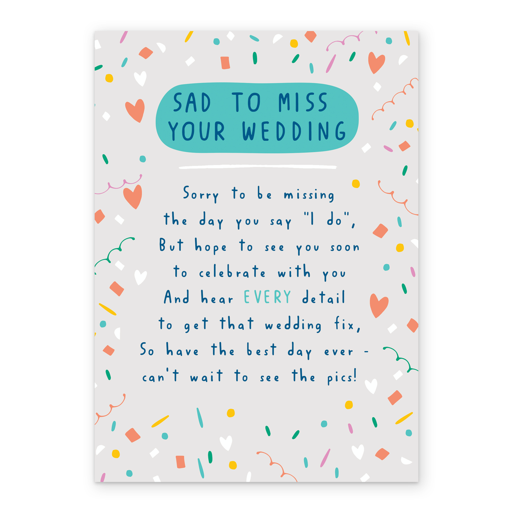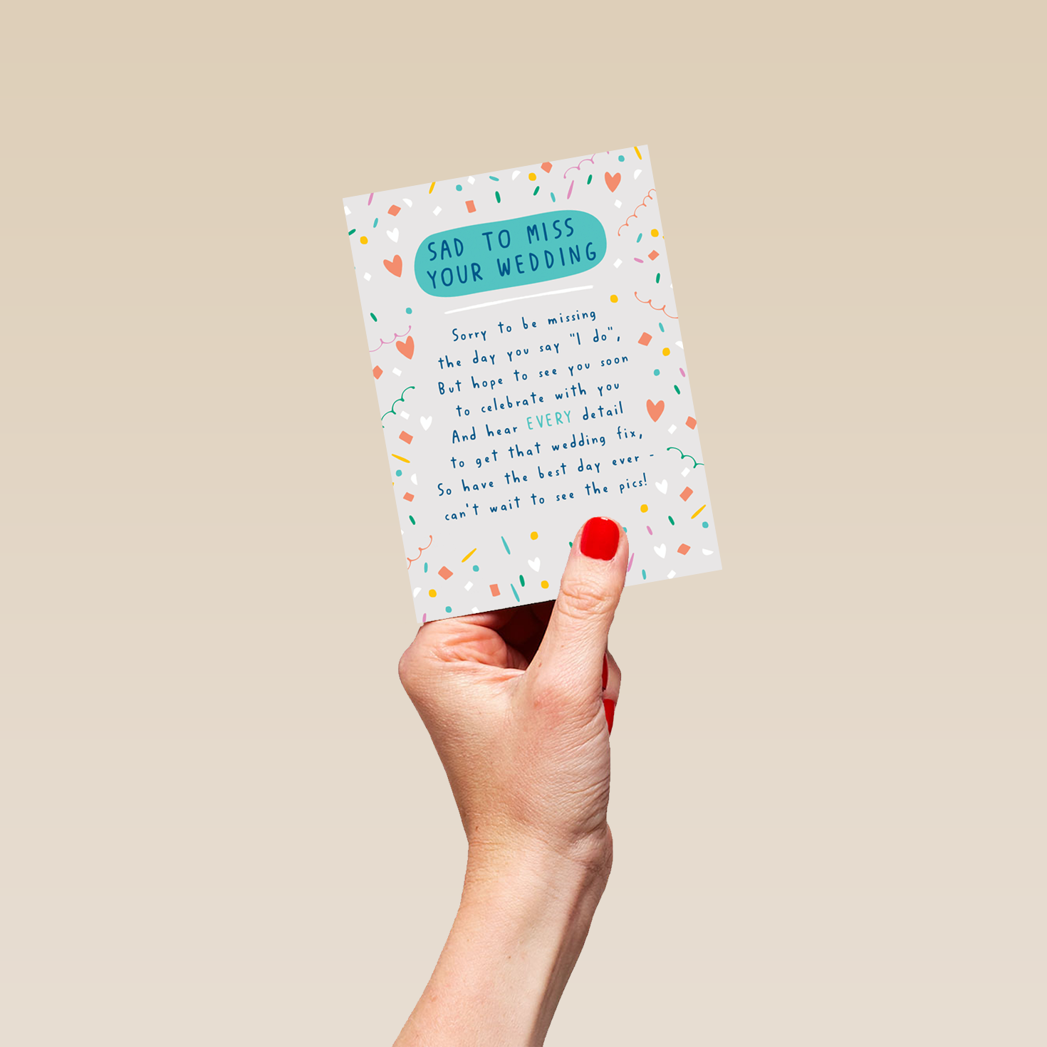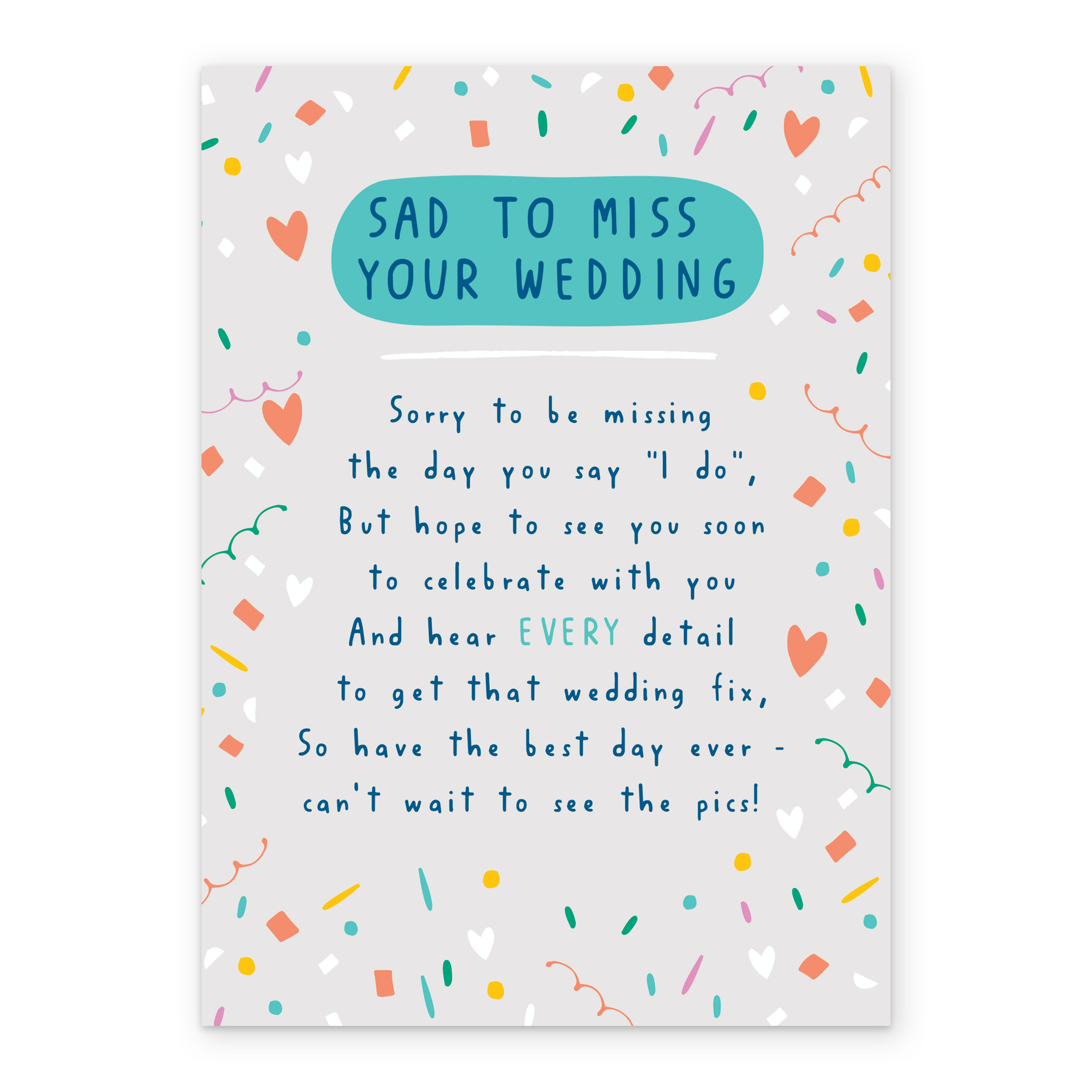 Show them you care with a personalised missed wedding contemporary card from Hallmark. Our wedding cards are printed on premium quality, FSC®-certified card & delivered nationwide. This card is available as standard 12cm by 16.7cm and large 15.5cm by 21.6cm.