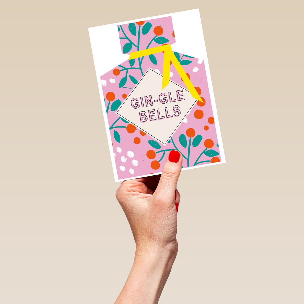 Personalised Modern Christmas Floral Gin Bottle Gingle Bells Card