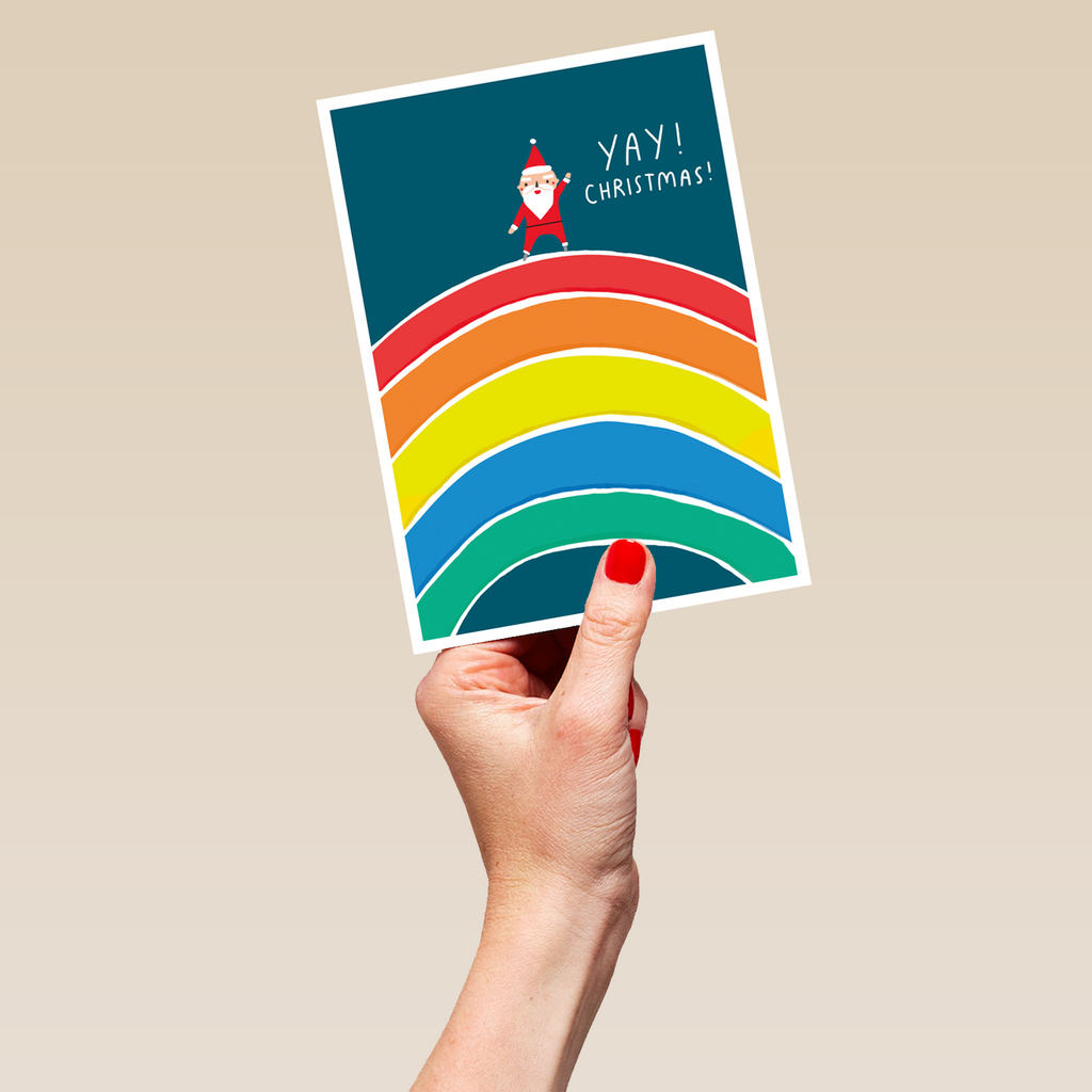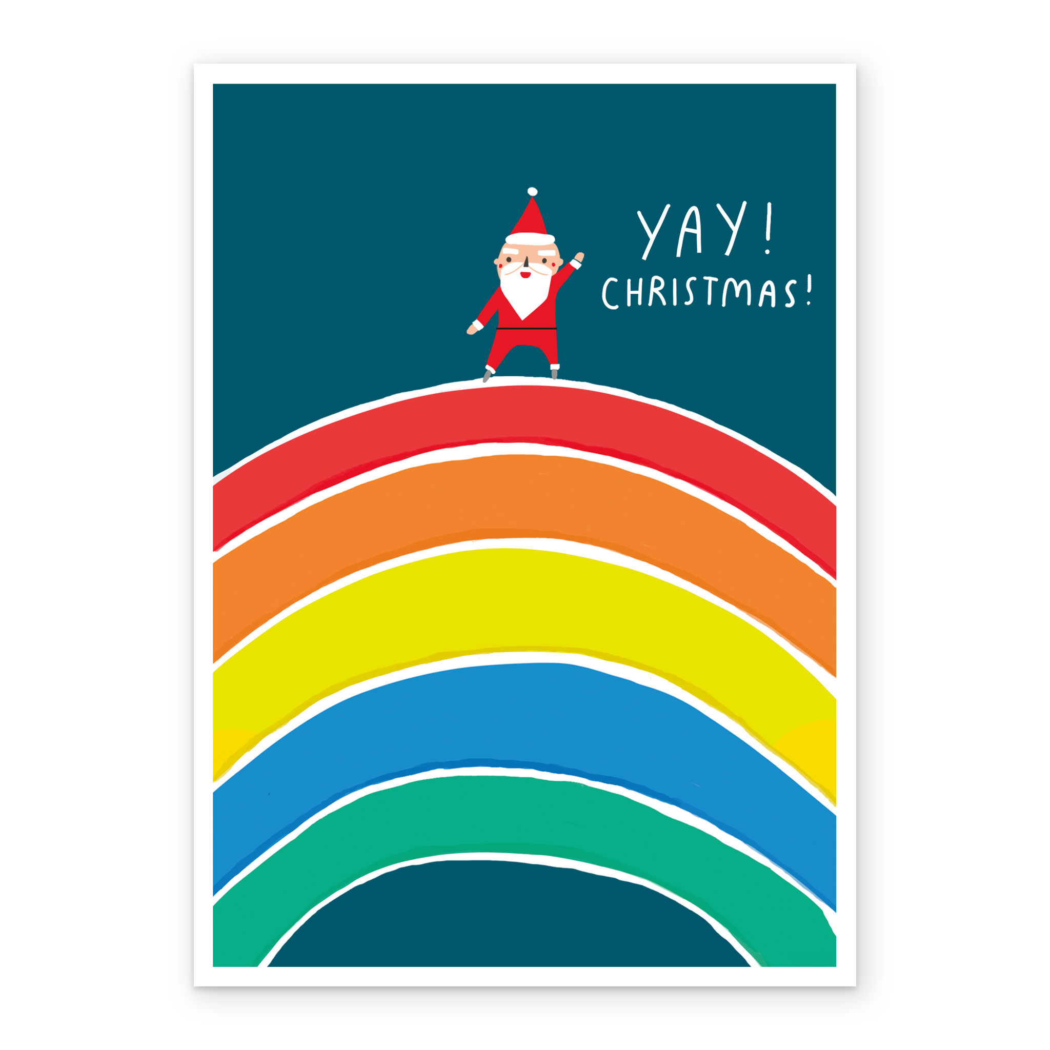 Personalised Modern Christmas Illustrated Santa Rainbow Yay Card