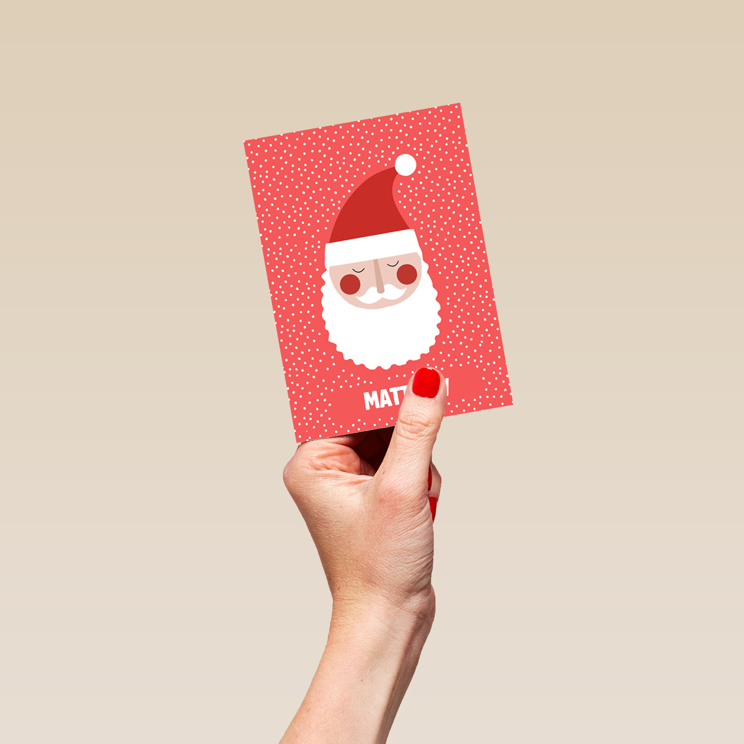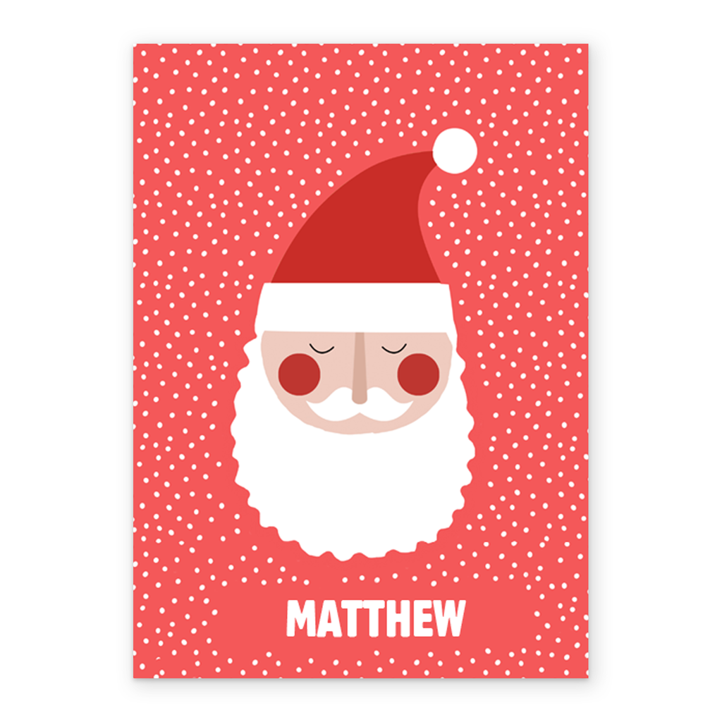 Show them you care with a personalised modern Christmas kids editable Santa face card from Hallmark. Our greetings cards are printed on premium quality, FSC®-certified card & delivered nationwide. This card is available as standard 12cm by 16.7cm and large 15.5cm by 21.6cm.