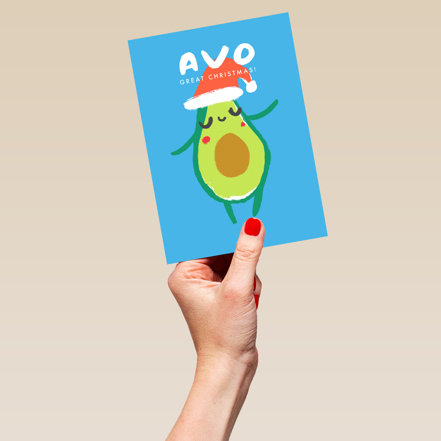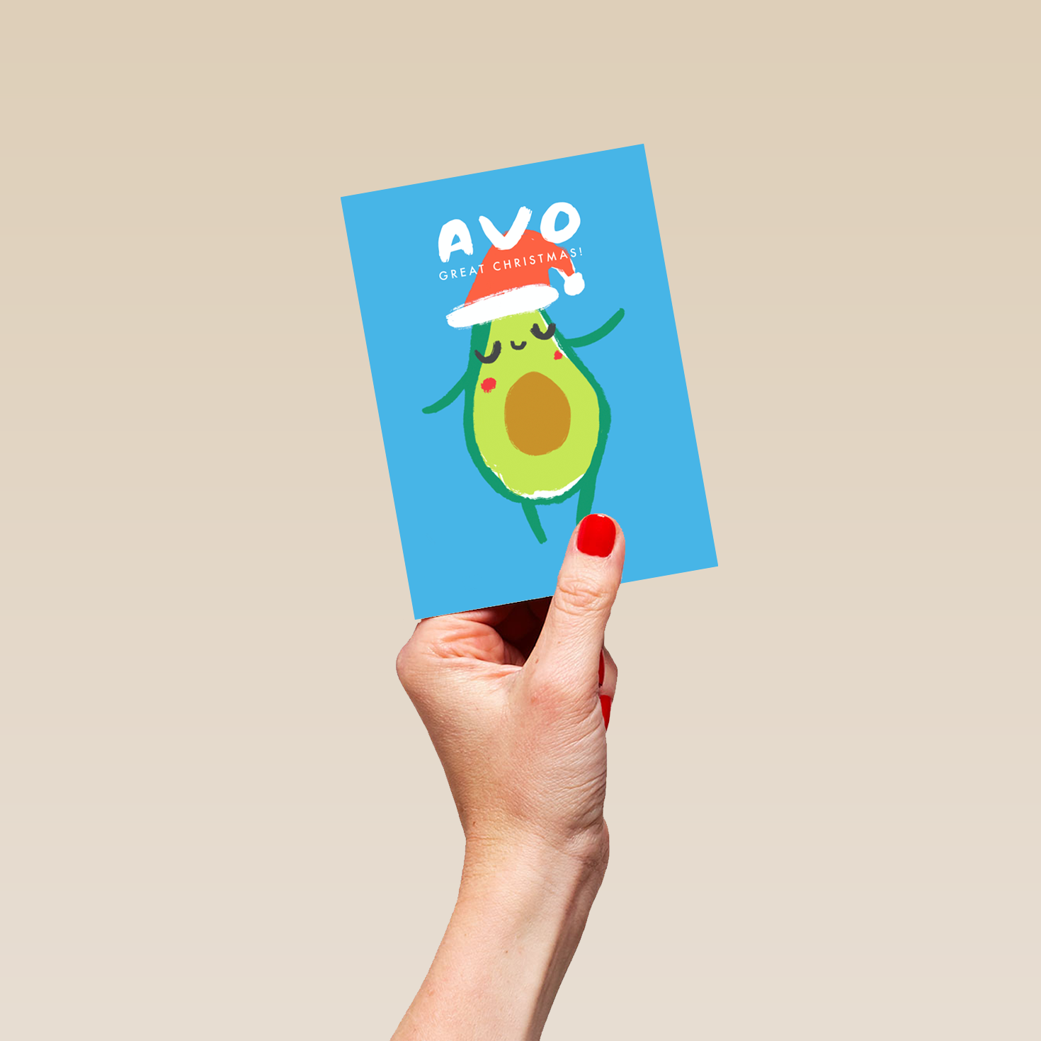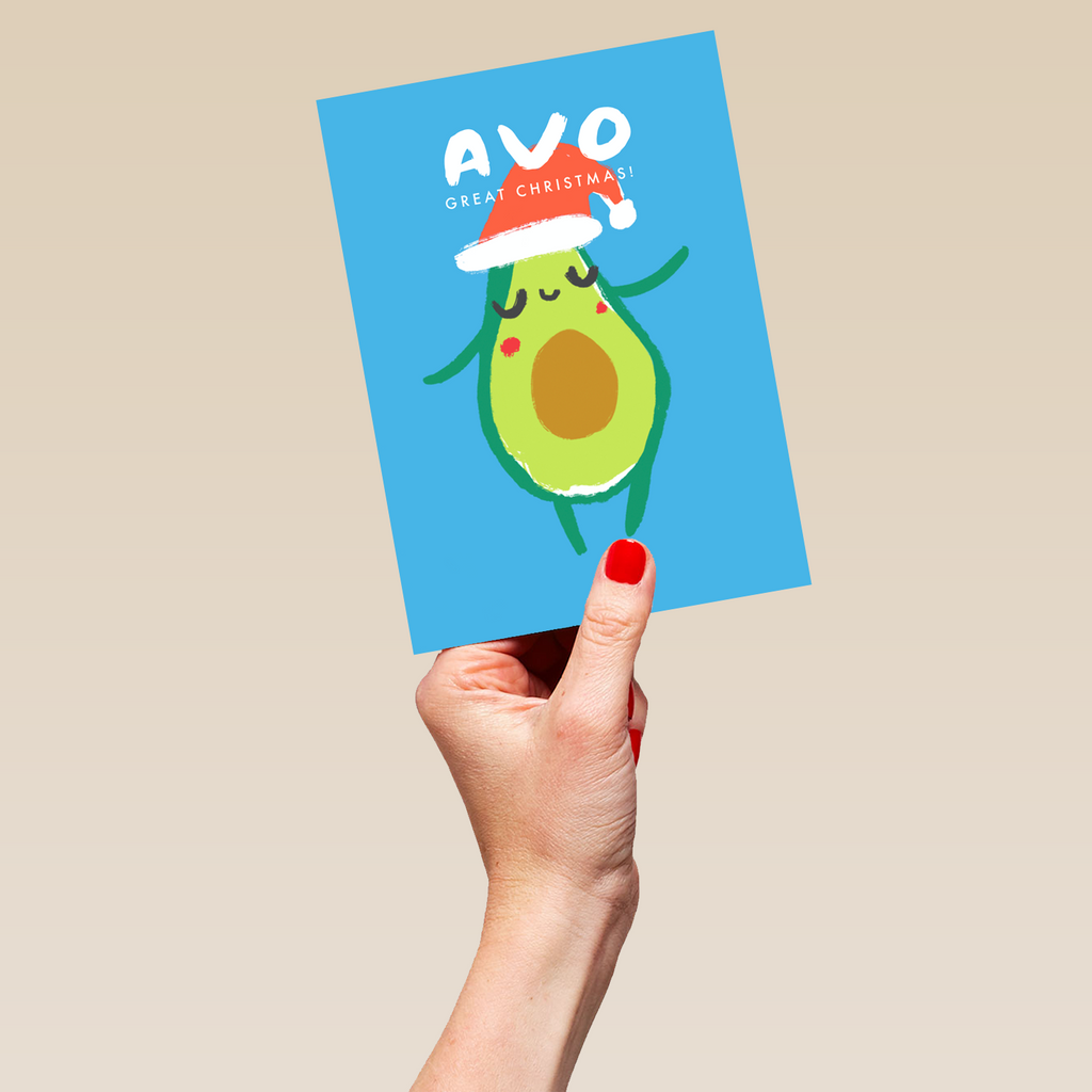 Personalised Modern Christmas Quirky Avocado Santa Hat Card