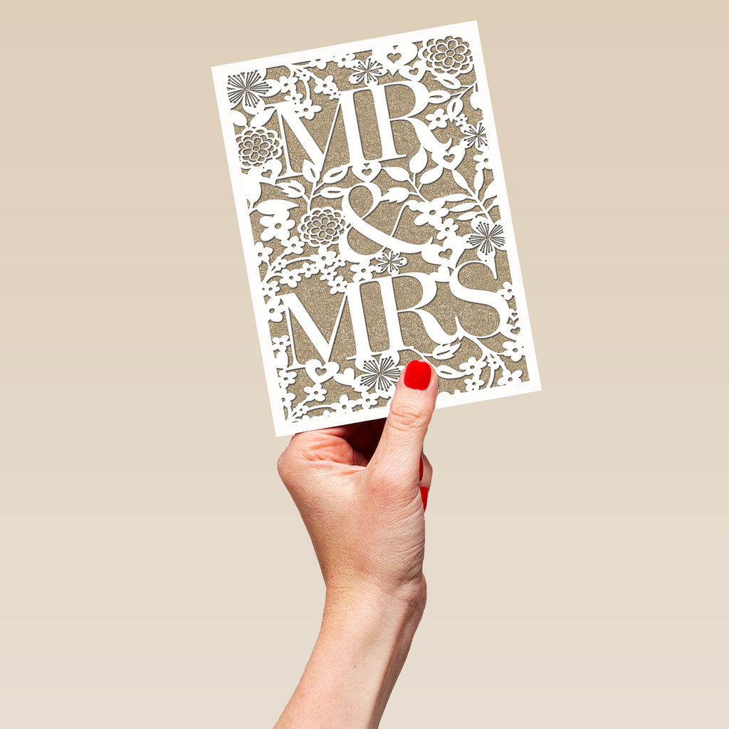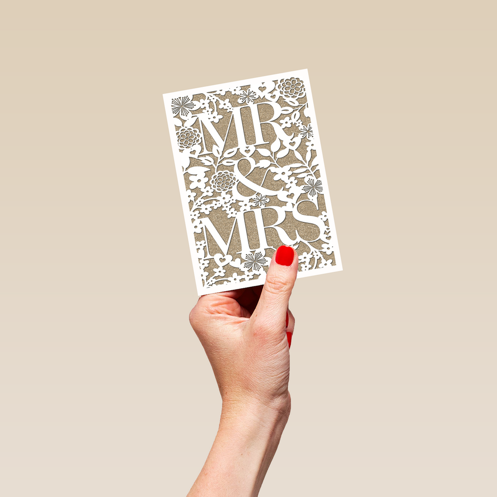 Show them you care with a personalised Mr & Mrs wedding card from Hallmark. Our wedding cards are printed on premium quality, FSC®-certified card & delivered nationwide. This card is available as standard 12cm by 16.7cm and large 15.5cm by 21.6cm.