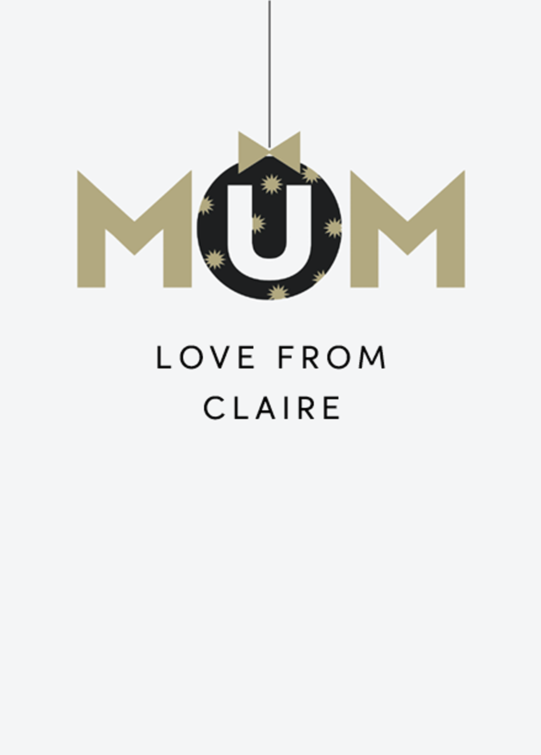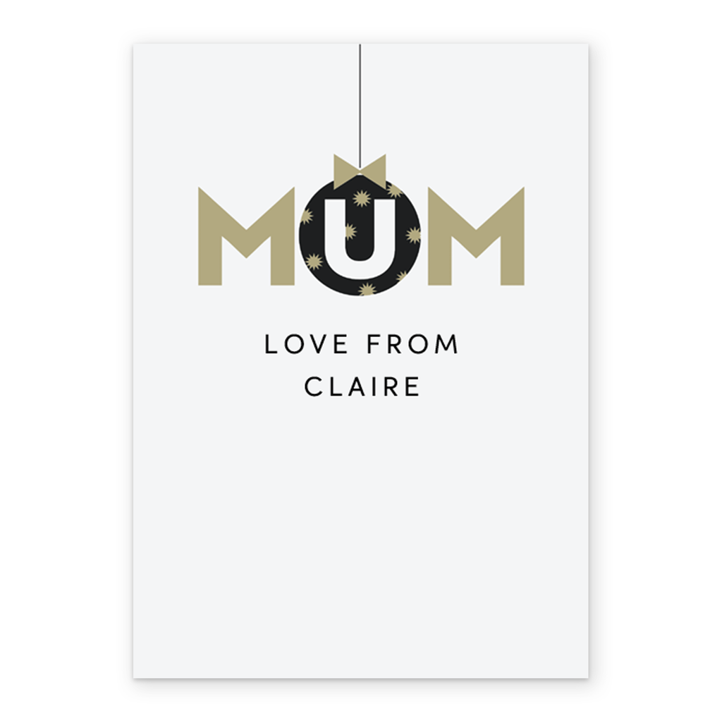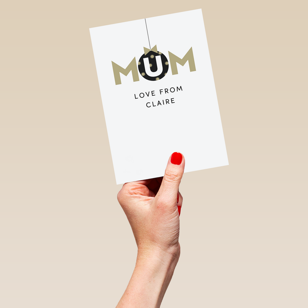 Show them you care with a personalised mum bauble Christmas card from Hallmark. Our greetings cards are printed on premium quality, FSC®-certified card & delivered nationwide. This card is available as standard 12cm by 16.7cm and large 15.5cm by 21.6cm.