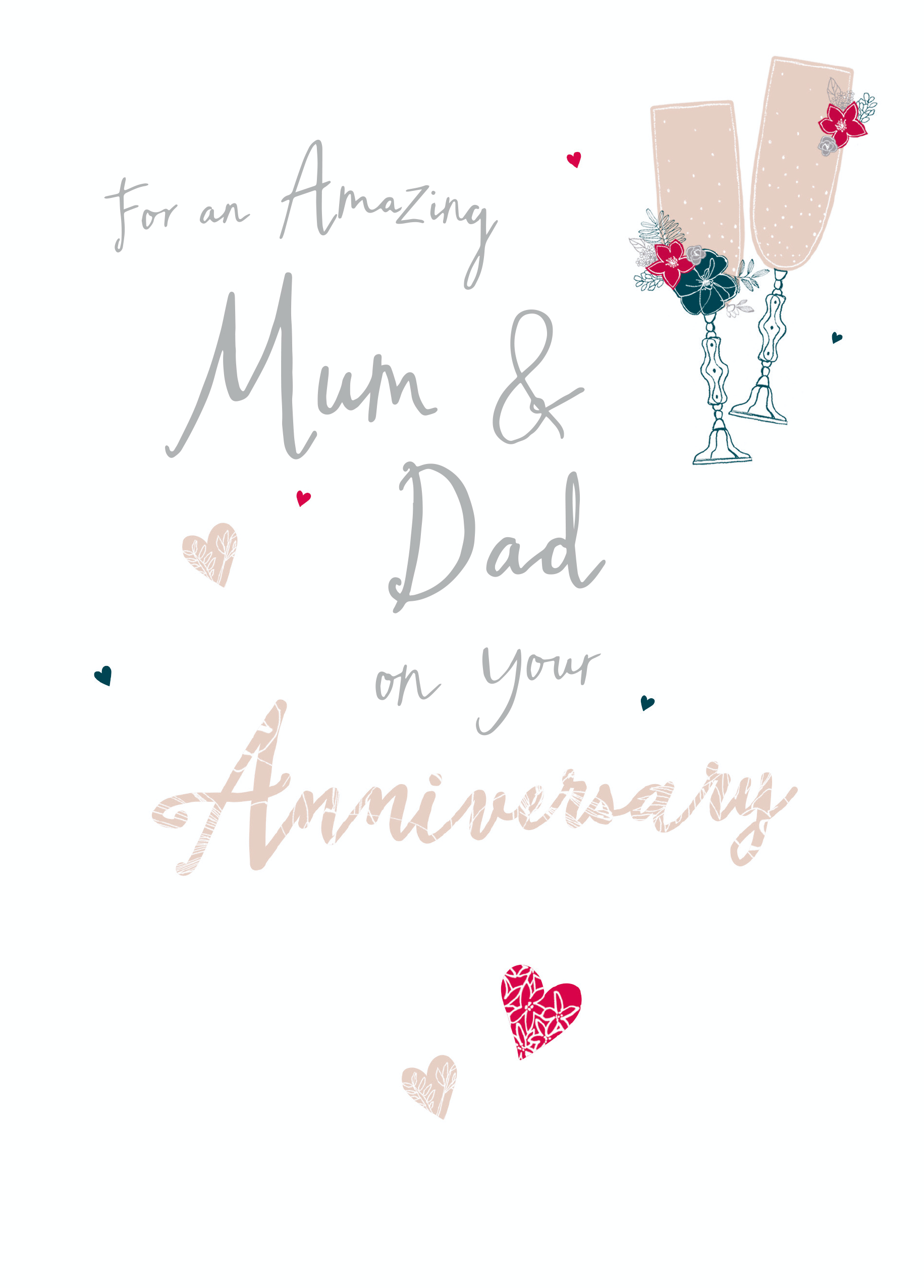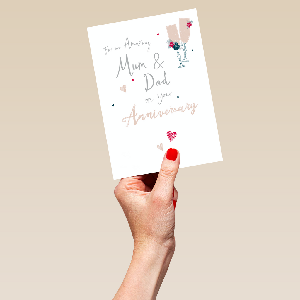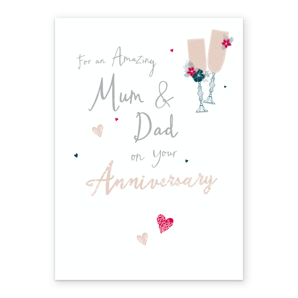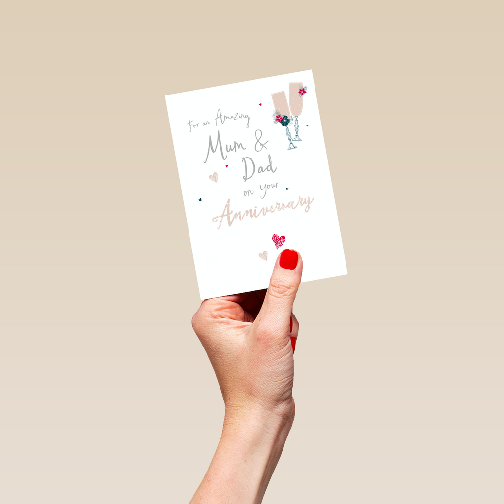Show them you care with a personalised mum & dad anniversary card from Hallmark. Our anniversary cards are printed on premium quality, FSC®-certified card & delivered nationwide. This card is available as standard 12cm by 16.7cm and large 15.5cm by 21.6cm.