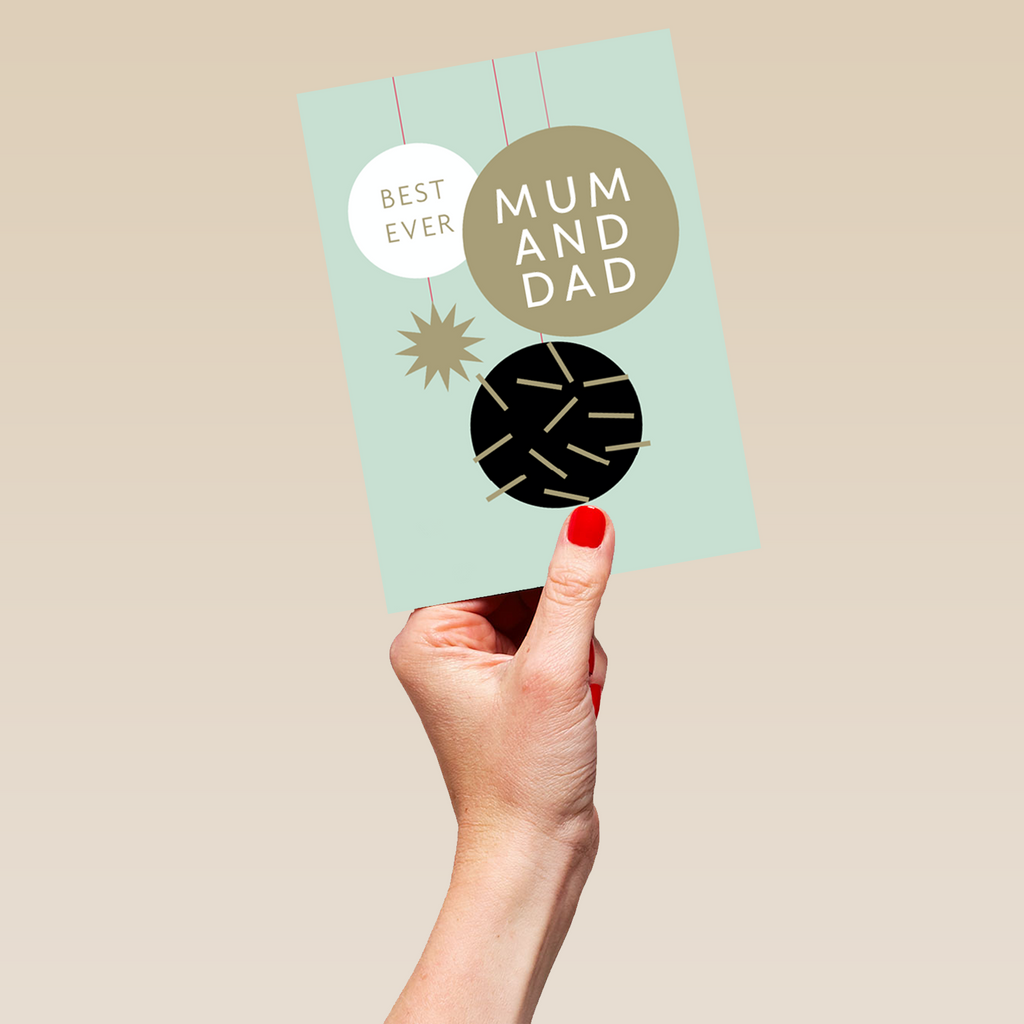 Show them you care with a personalised mum & dad black and gold baubles Christmas card from Hallmark. Our greetings cards are printed on premium quality, FSC®-certified card & delivered nationwide. This card is available as standard 12cm by 16.7cm and large 15.5cm by 21.6cm.