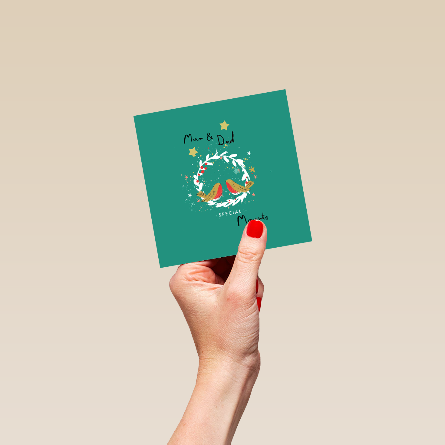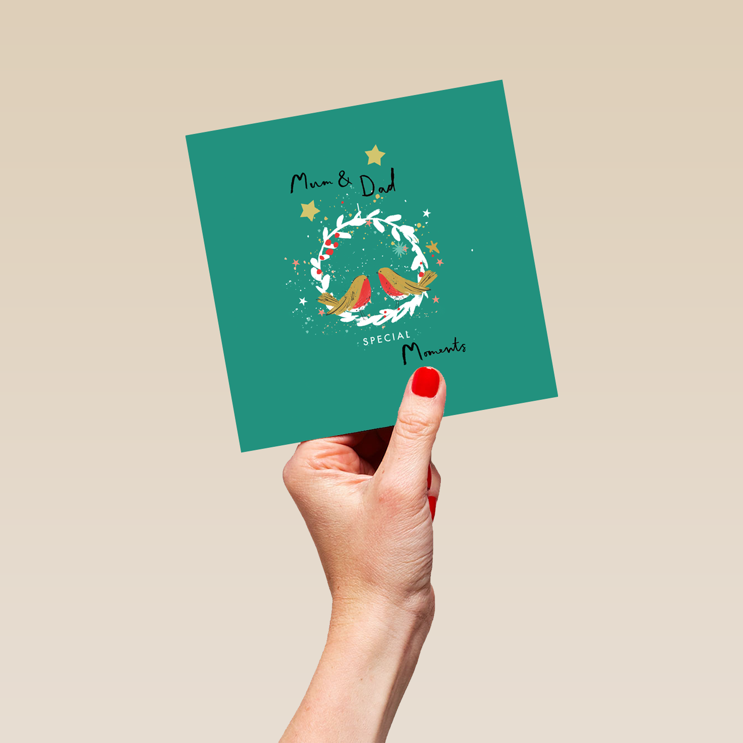 Show them you care with a personalised mum & dad illustrated robins and wreath Christmas c... View more details