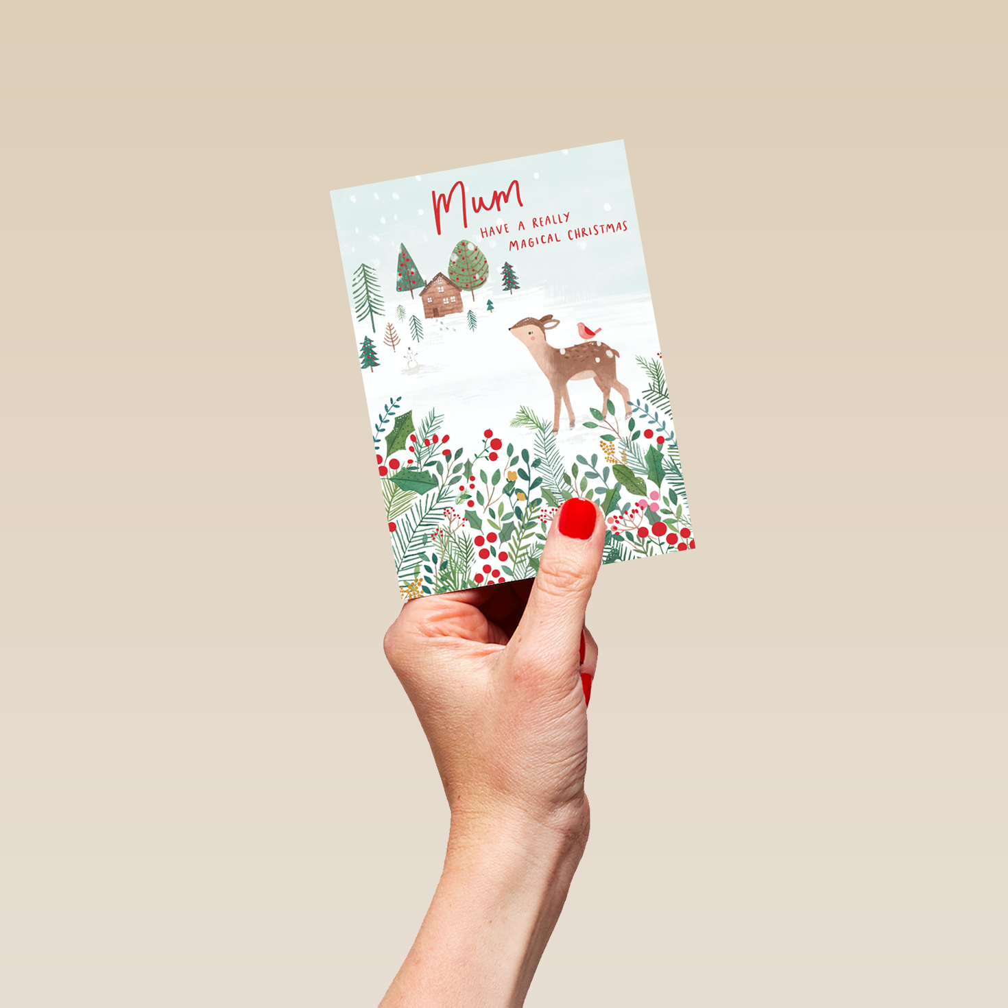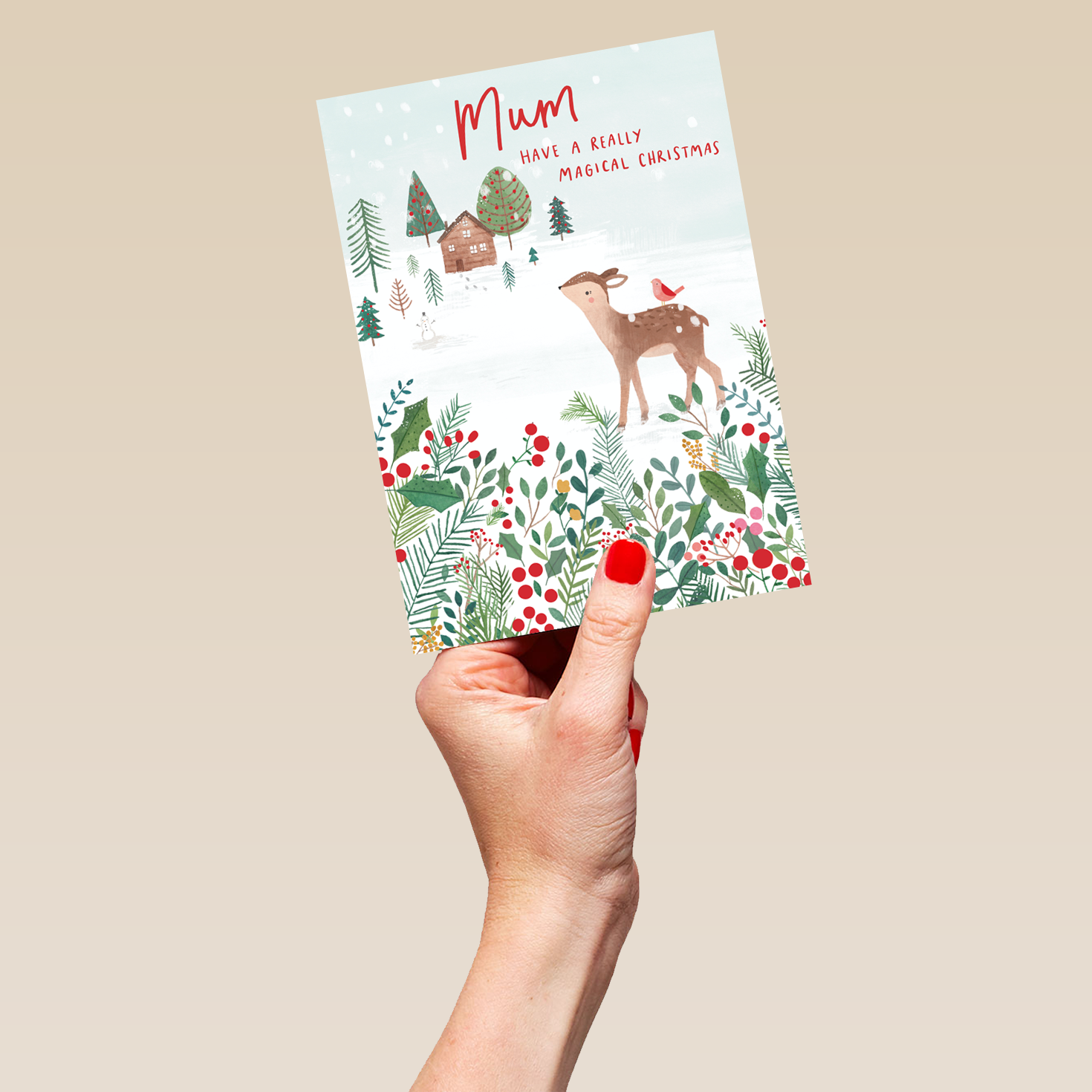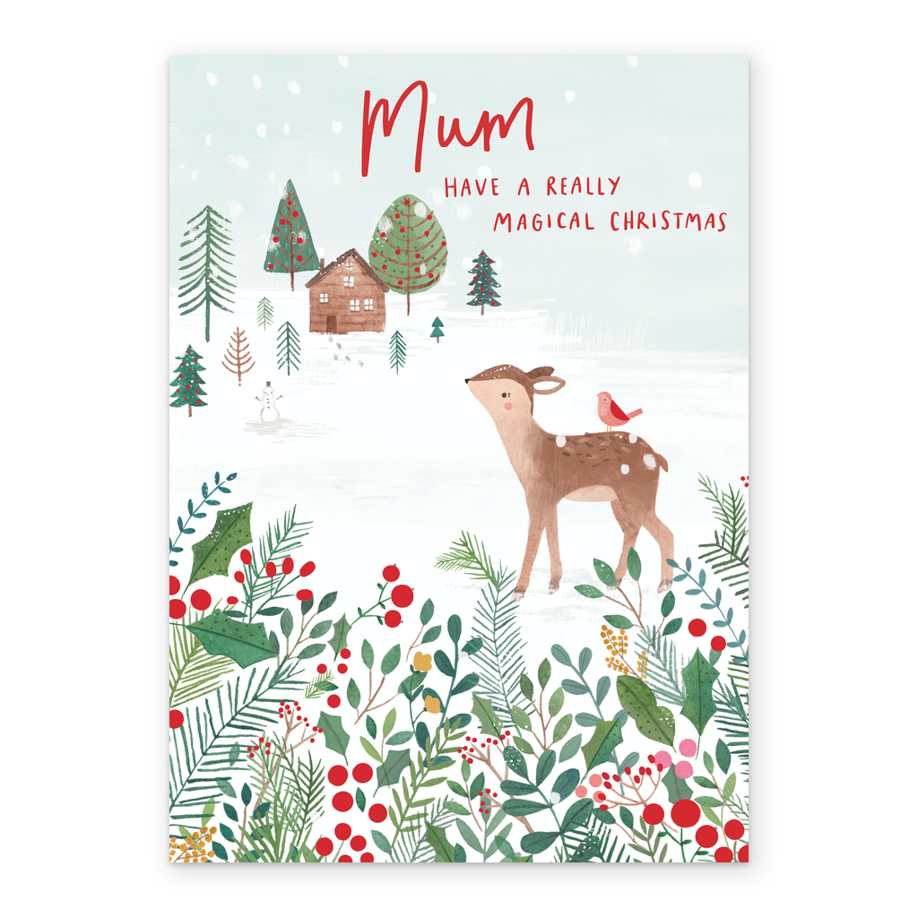 Personalised Mum Reindeer & Snow Christmas Card