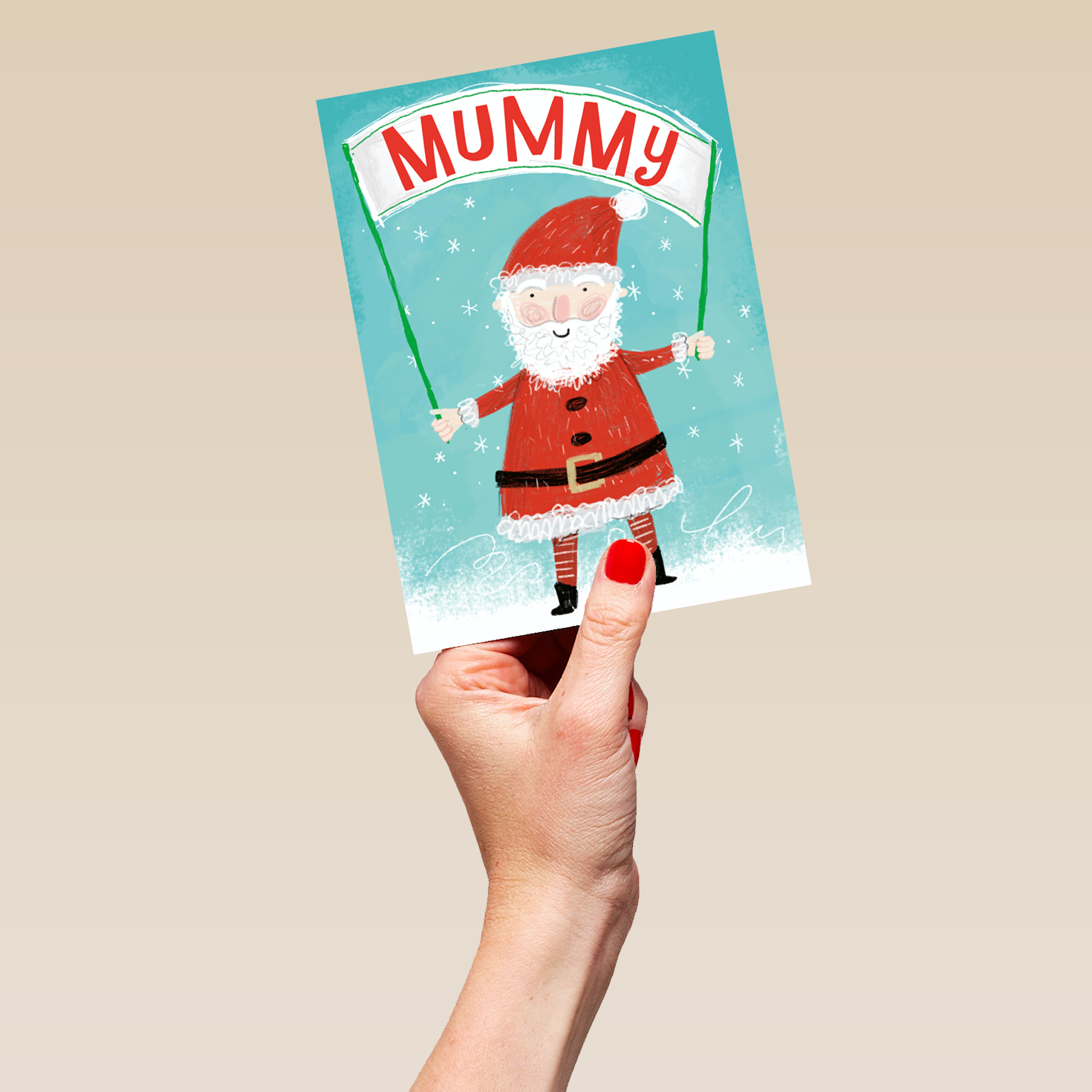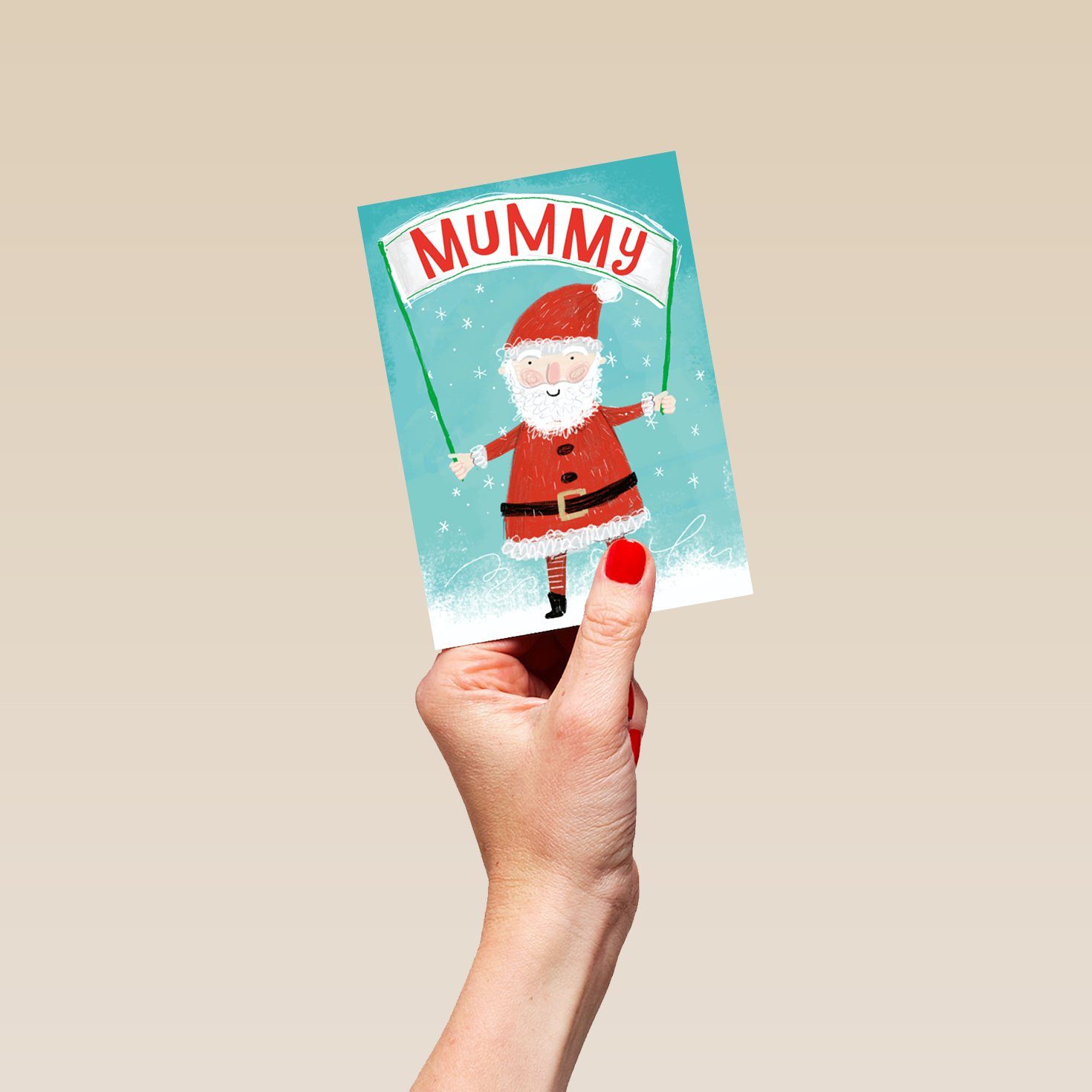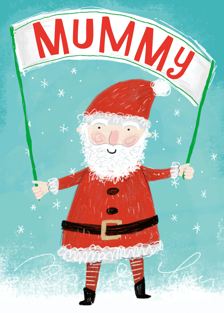 Personalised Mummy Santa Banner Kids Christmas Card
