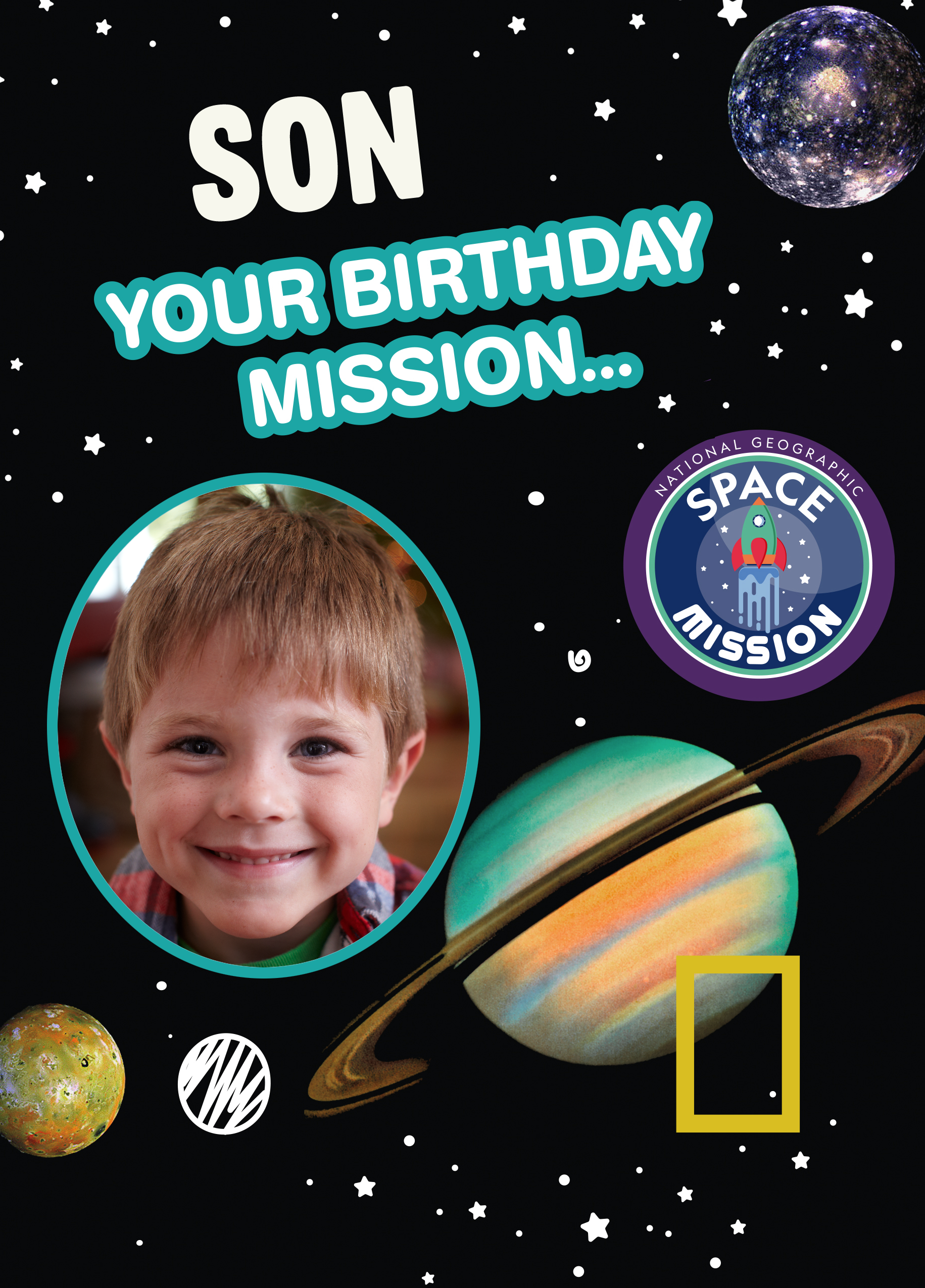 Show them you care with a personalised National Geographic Kids Space Photo Upload Birthday Card for Son from Hallmark.