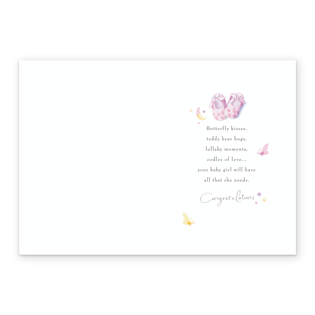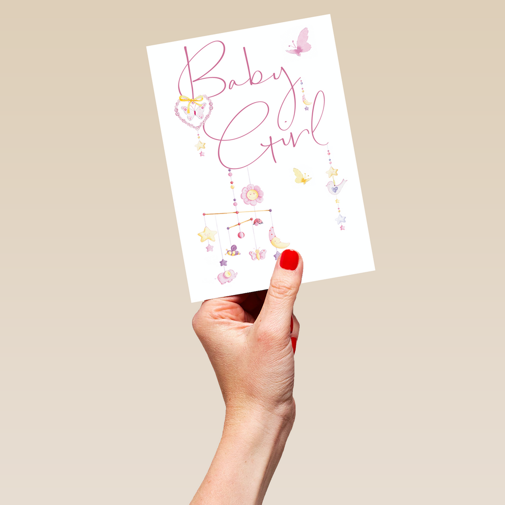 Show them you care with a personalised new baby girl card from Hallmark. Our baby cards are printed on premium quality, FSC®-certified card & delivered nationwide. This card is available as standard 12cm by 16.7cm and large 15.5cm by 21.6cm.