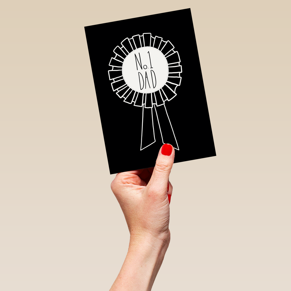 Show them you care with a personalised no. 1 rosette Father's Day dad card from Hallmark. Our Father's Day cards are printed on premium quality, FSC®-certified card & delivered nationwide.This card is available as standard 12cm by 16.7cm and large 15.5cm by 21.6cm.
