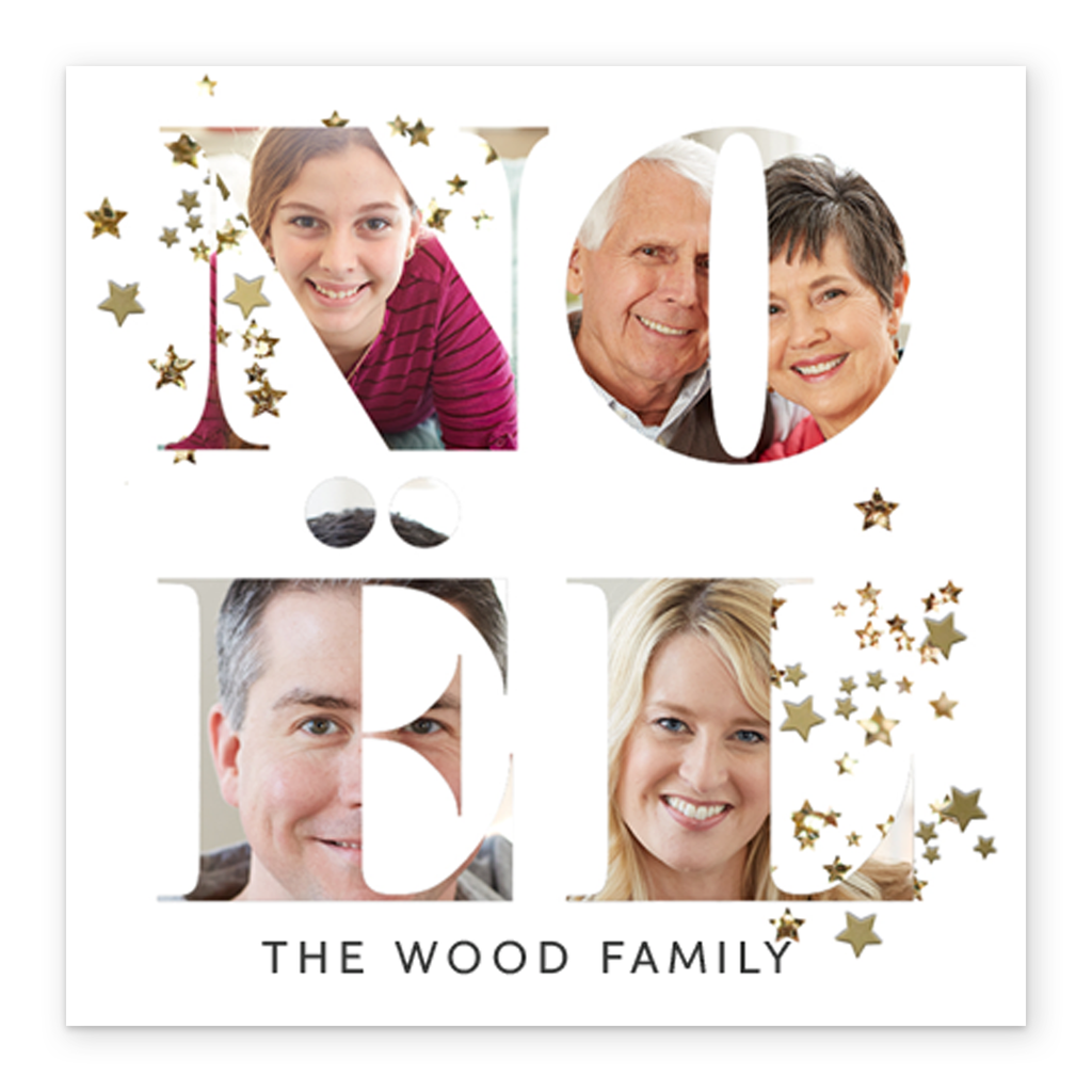 Show them you care with a personalised noel stars photo Christmas card from Hallmark. Our greetings cards are printed on premium quality, FSC®-certified card & delivered nationwide. This card is available as standard 12cm by 12cm and large 15cm by 15cm.