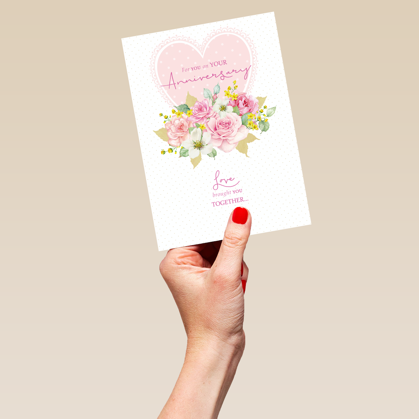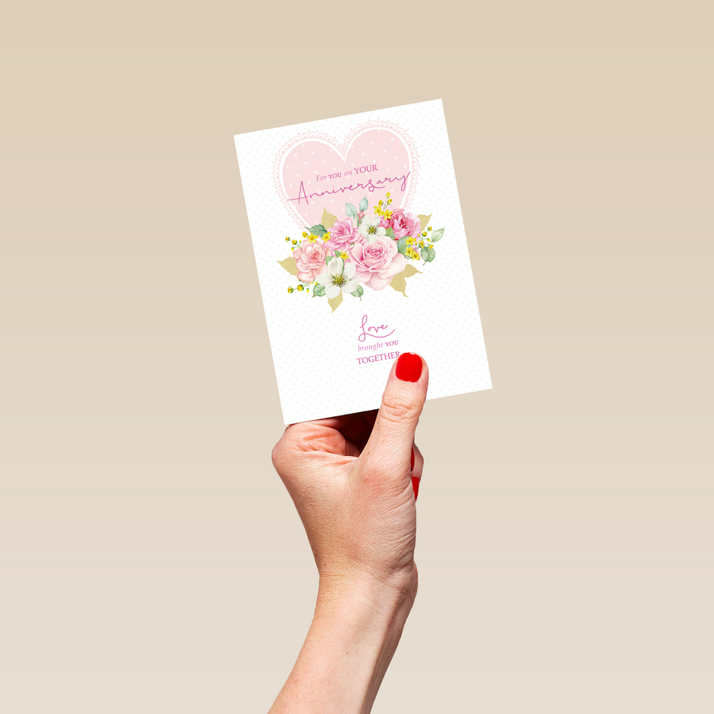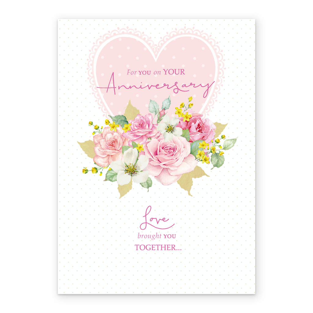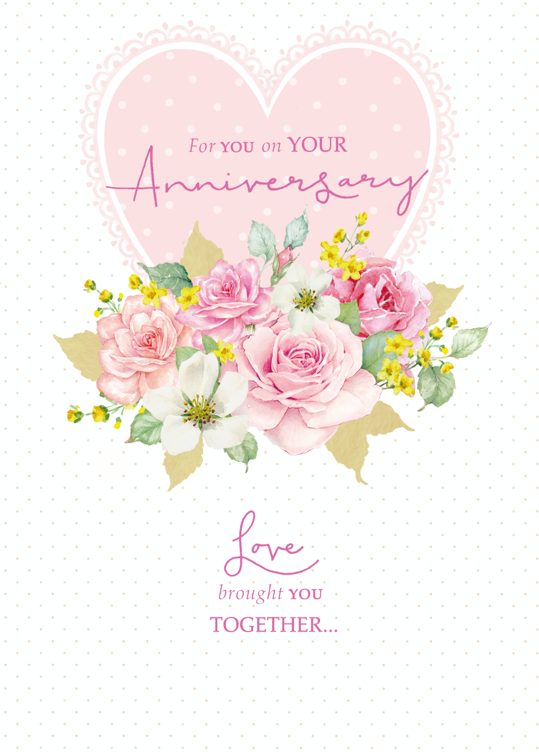 Show them you care with a personalised on your anniversary floral card from Hallmark. Our anniversary cards are printed on premium quality, FSC®-certified card & delivered nationwide. This card is available as standard 12cm by 16.7cm and large 15.5cm by 21.6cm.