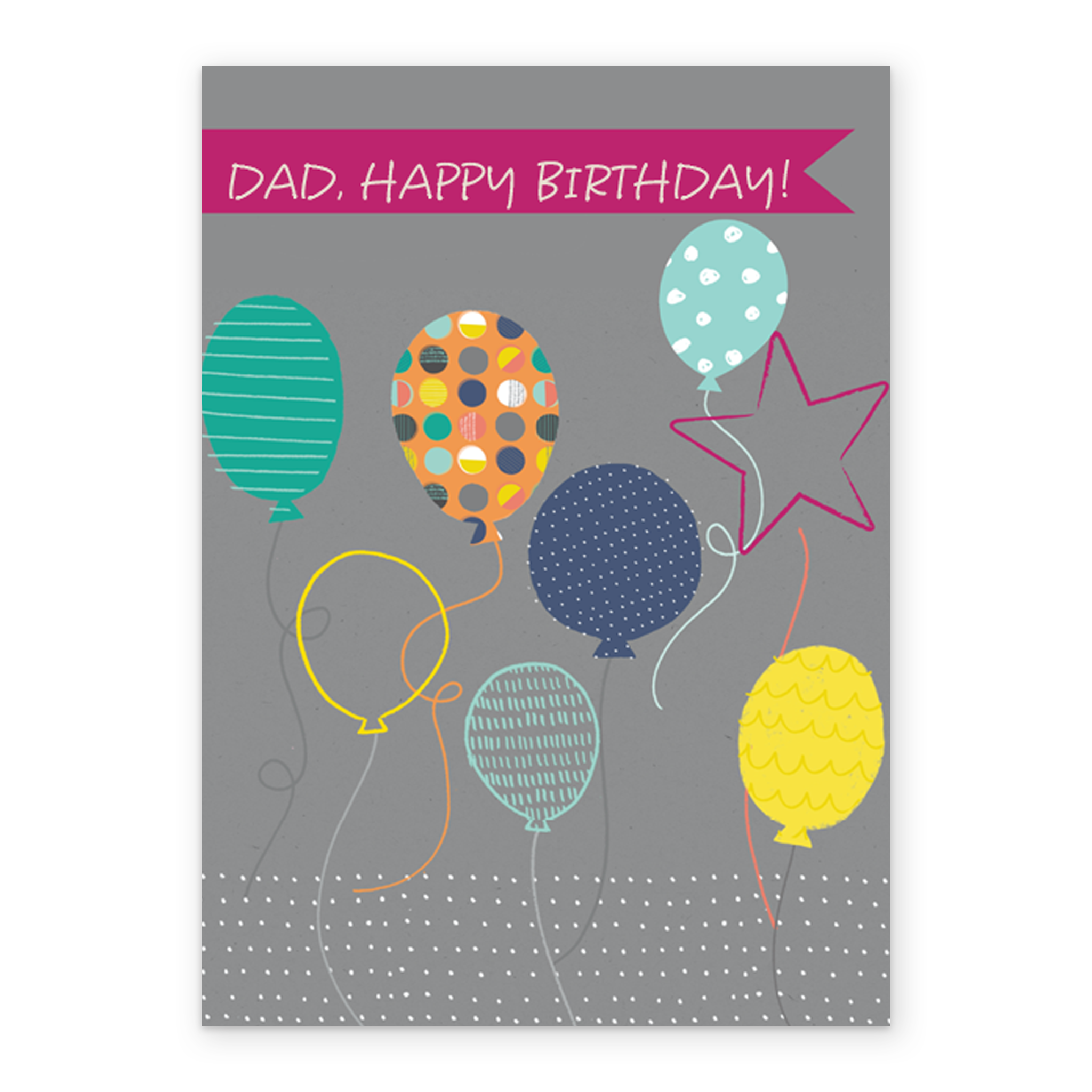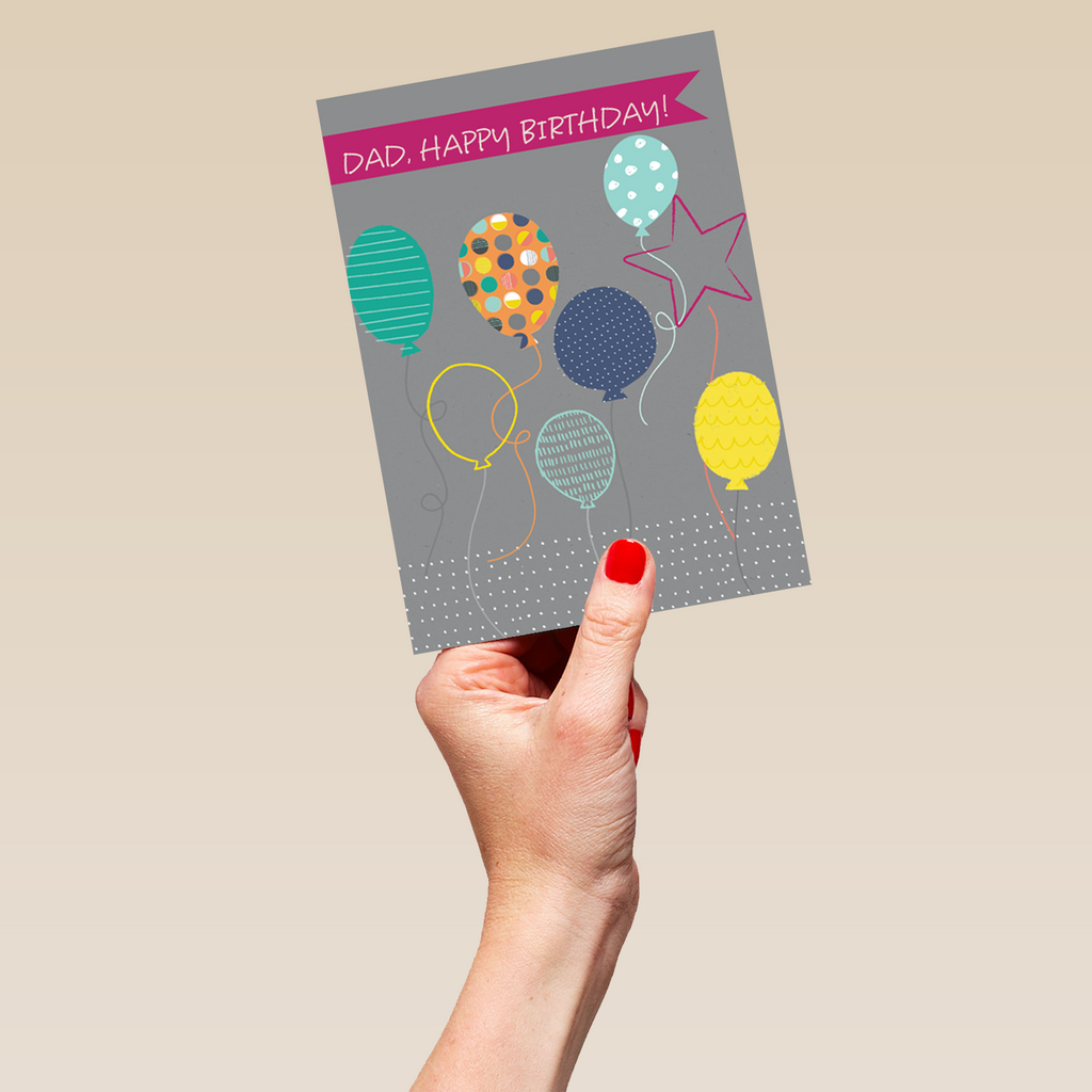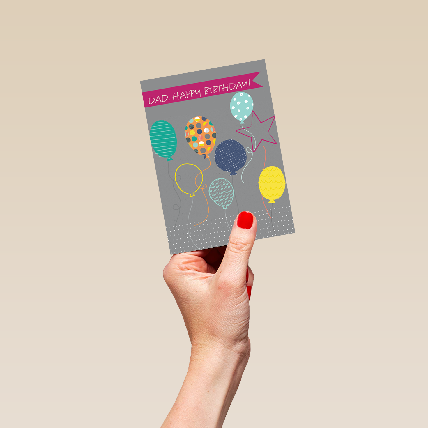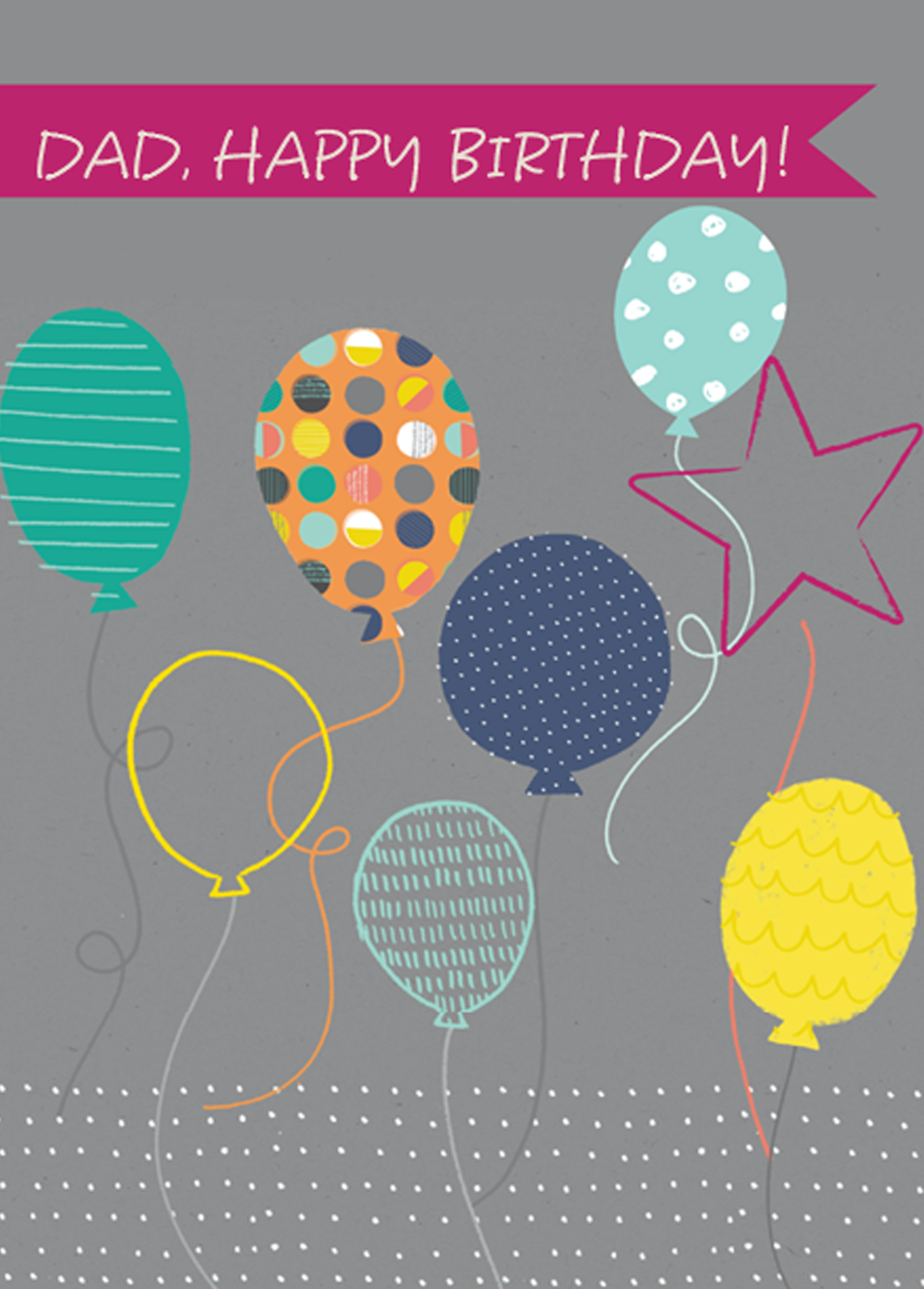 Show them you care with a personalised dad party balloons happy birthday card from Hallmark. Our greetings cards are printed on premium quality, FSC®-certified card & delivered nationwide. This card is available as standard 12cm by 16.7cm and large 15.5cm by 21.6cm.