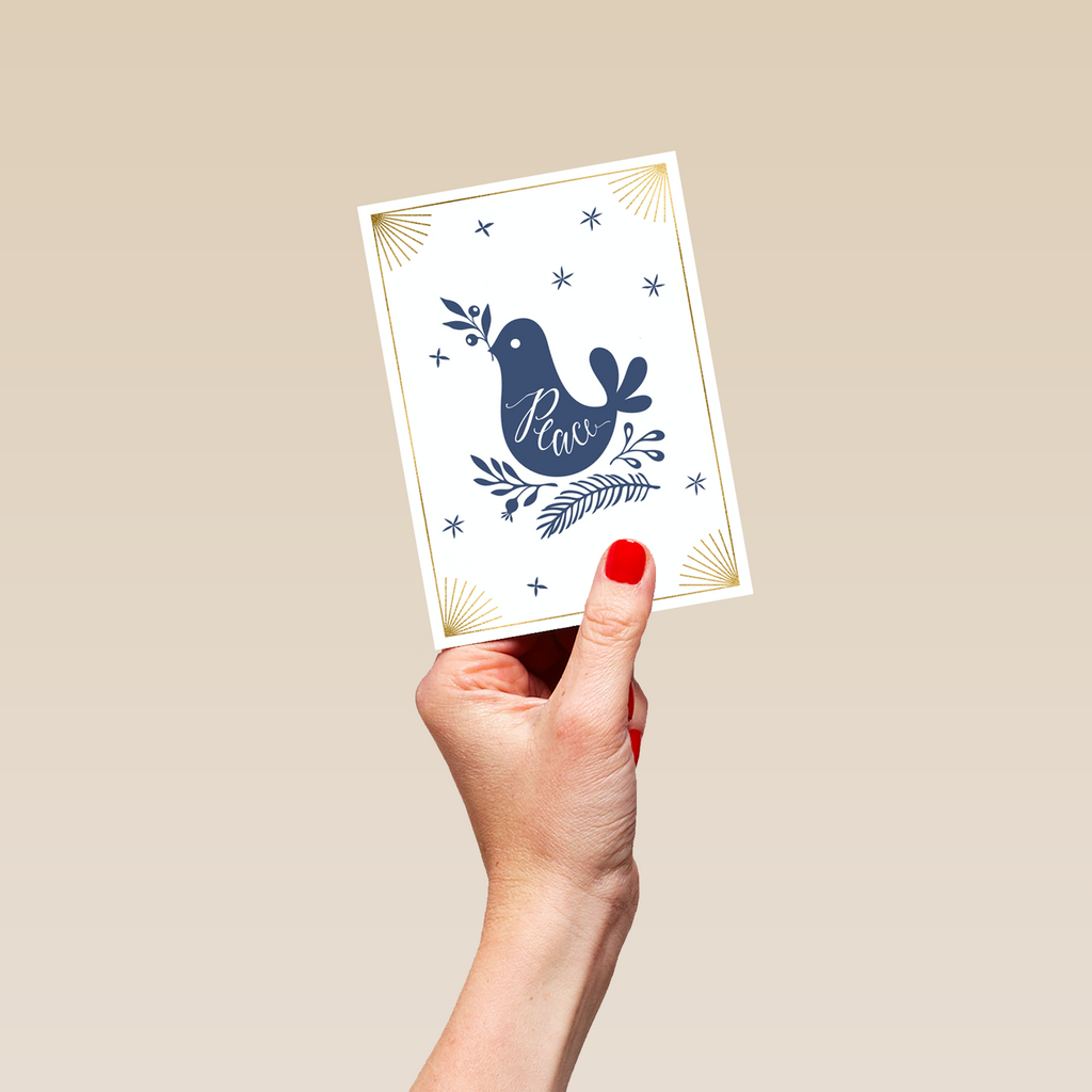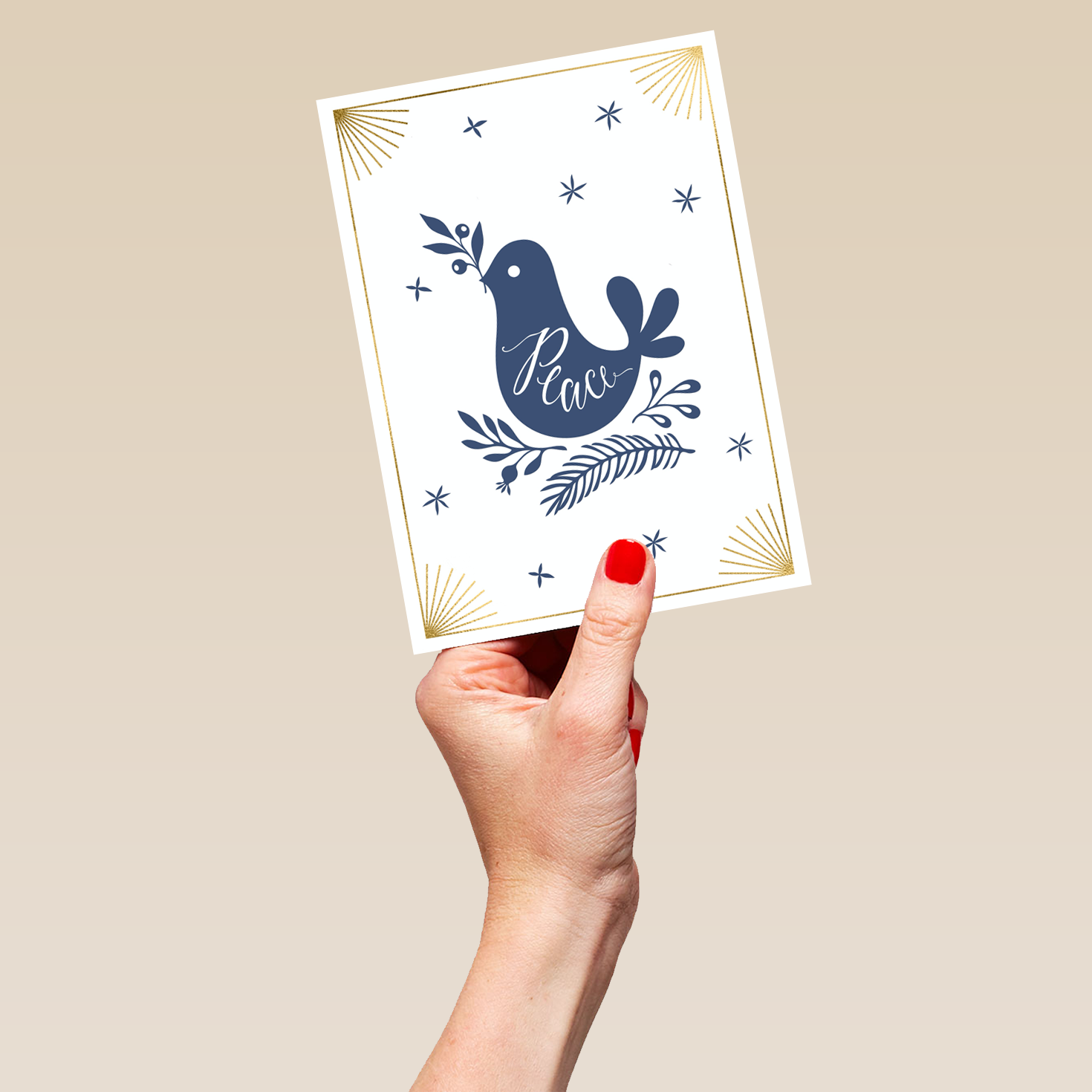 Show them you care with a personalised peace dove religious celebration card from Hallmark. Our Christmas cards are printed on premium quality, FSC®-certified card & delivered nationwide. This card is available as standard 12cm by 16.7cm and large 15.5cm by 21.6cm.