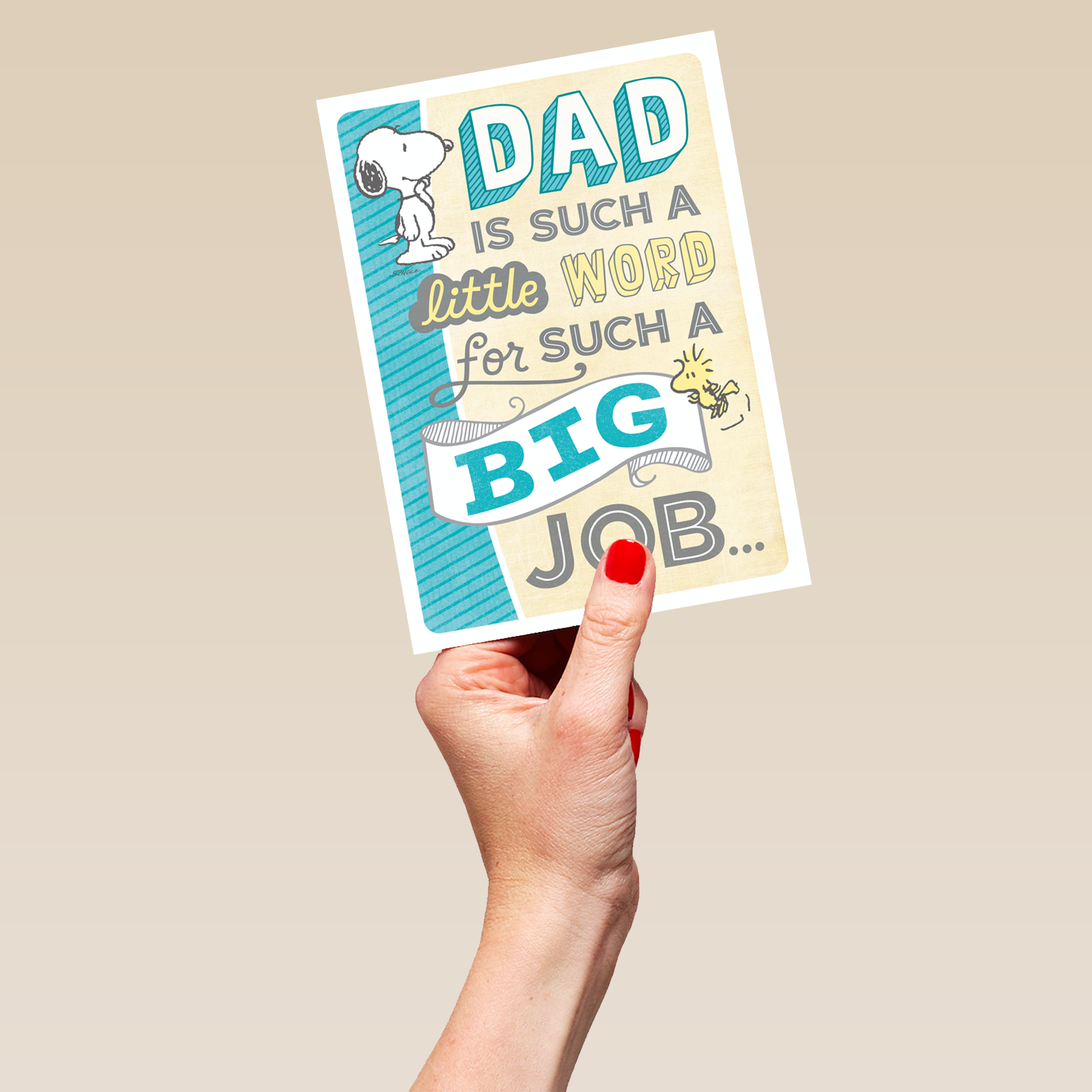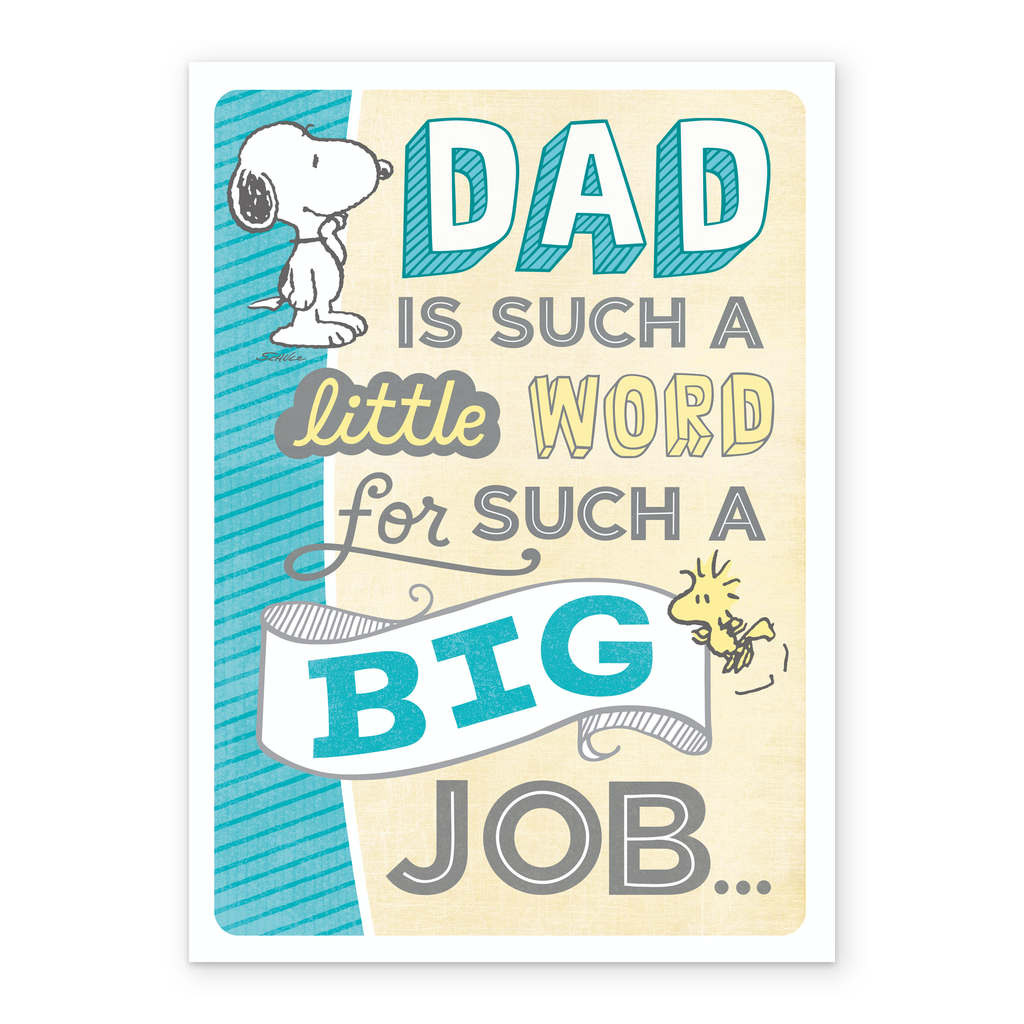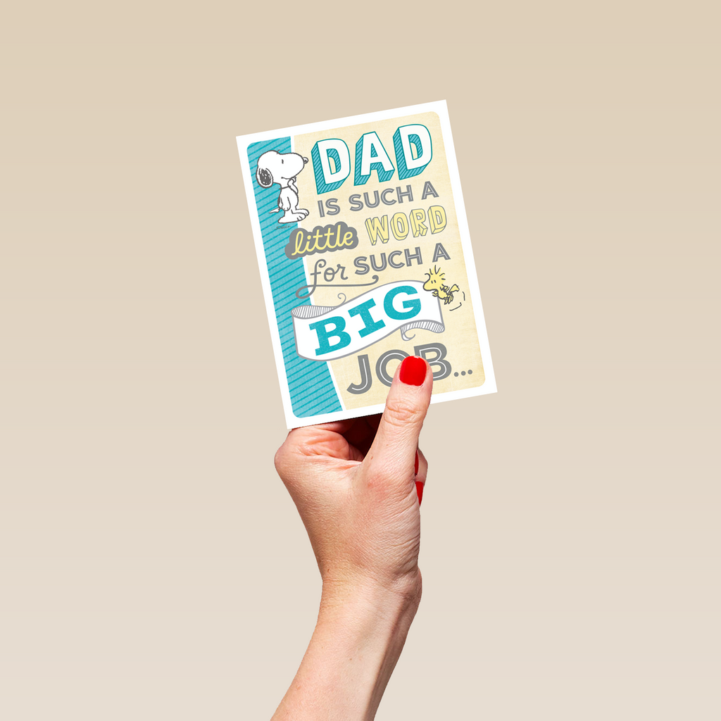 Show them you care with a personalised SNOOPY father's day card for dad from Hallmark. Our Father's Day cards are printed on premium quality, FSC®-certified card & delivered nationwide.This card is available as standard 12cm by 16.7cm and large 15.5cm by 21.6cm.