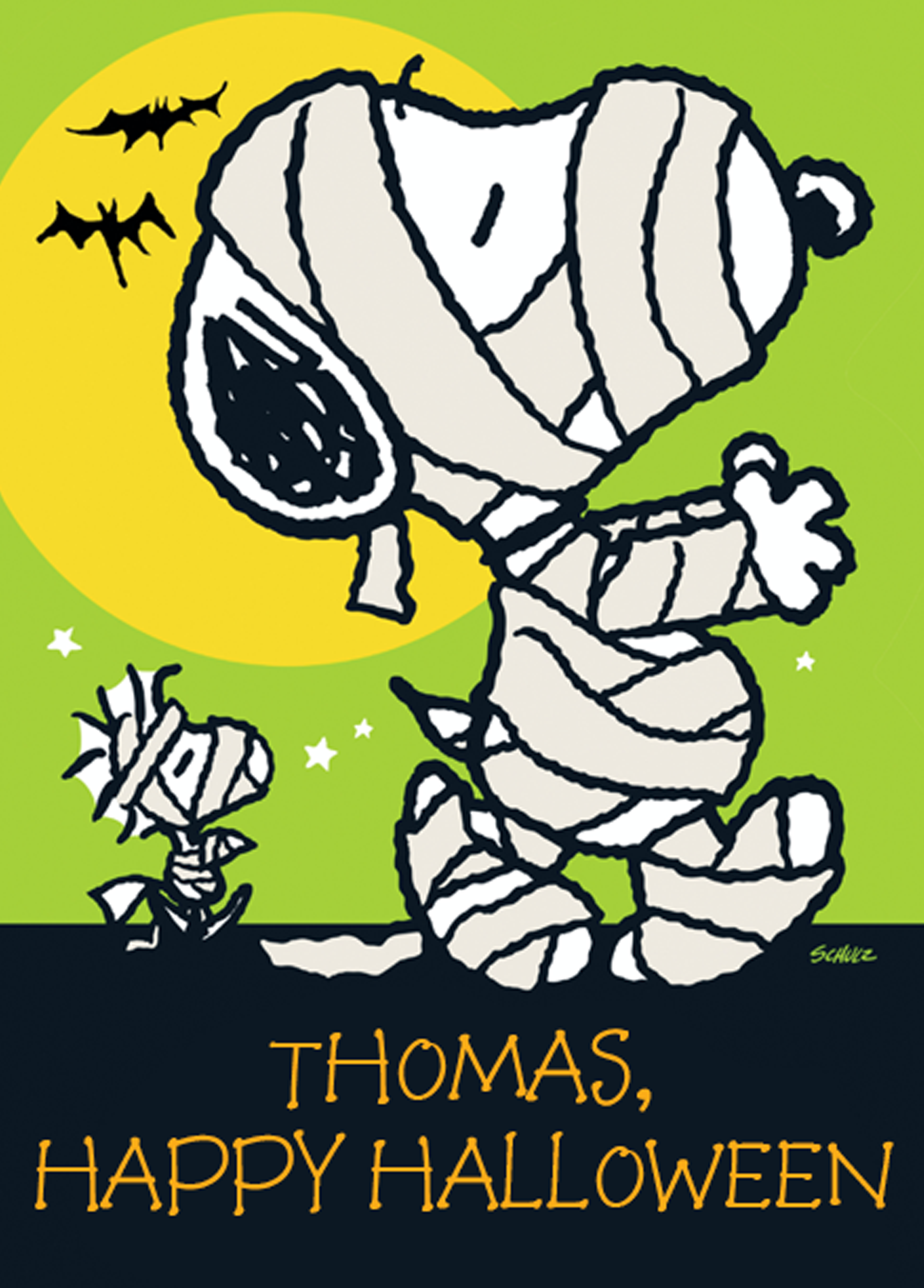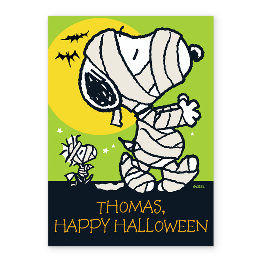 Personalised PEANUTS™ SNOOPY & WOODSTOCK Halloween Card