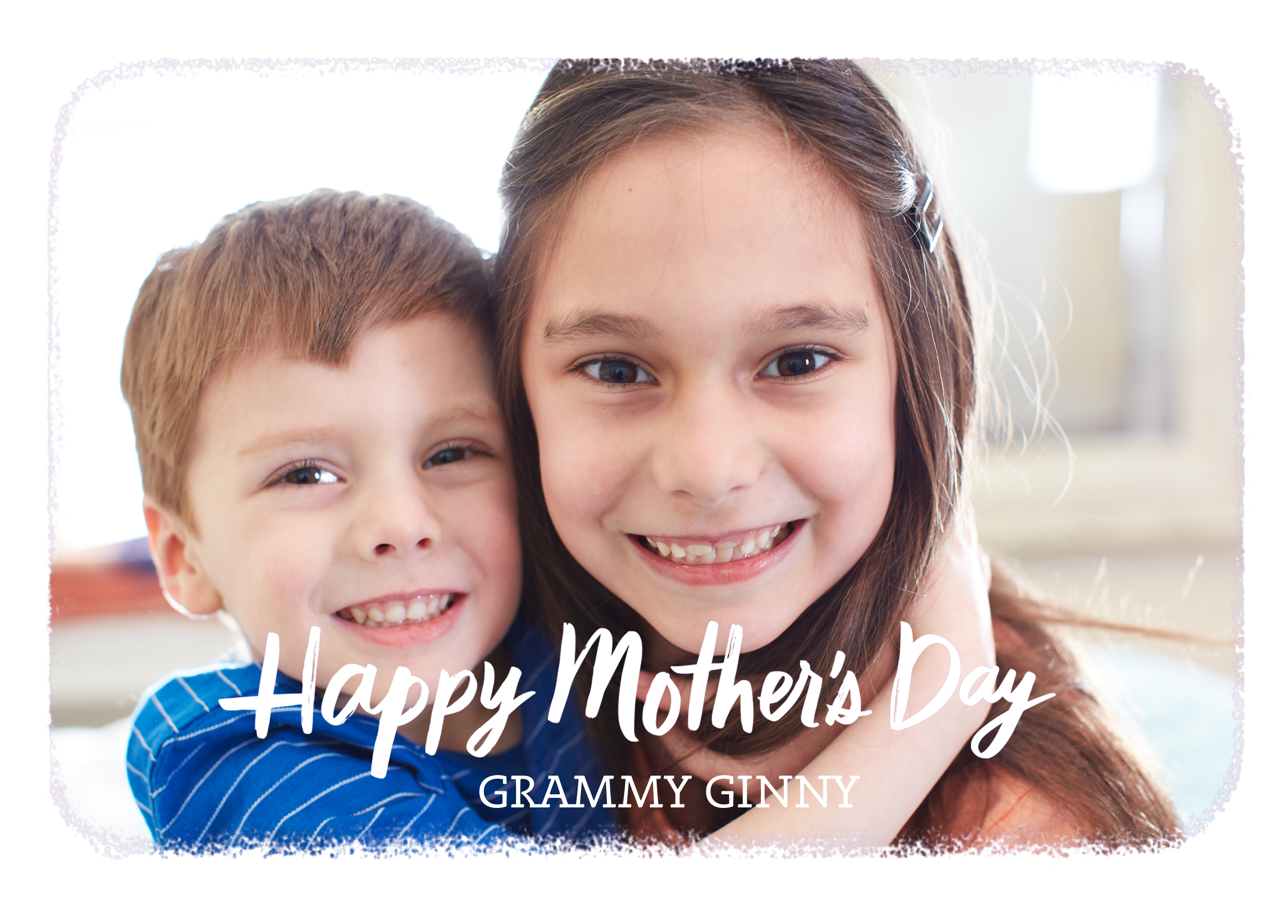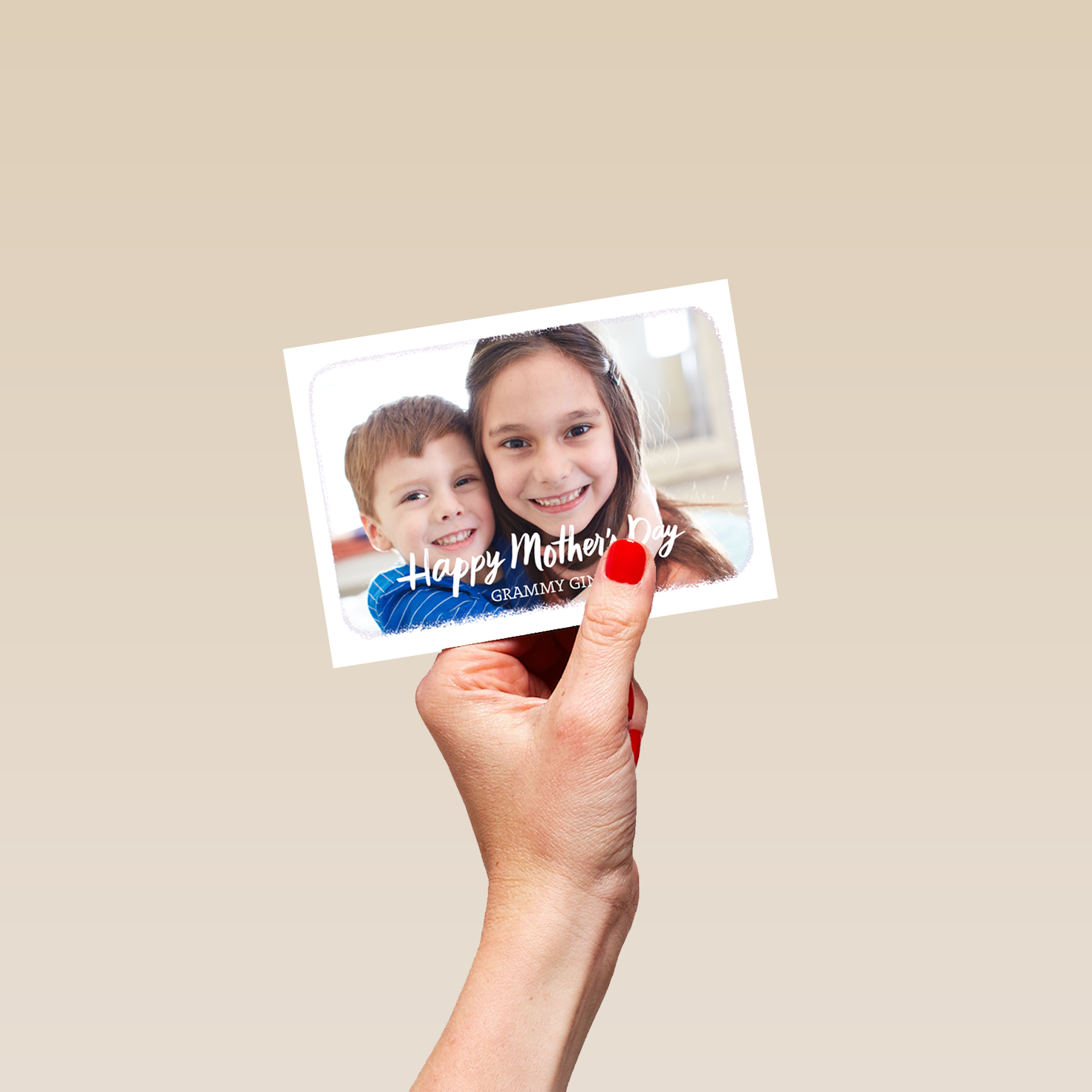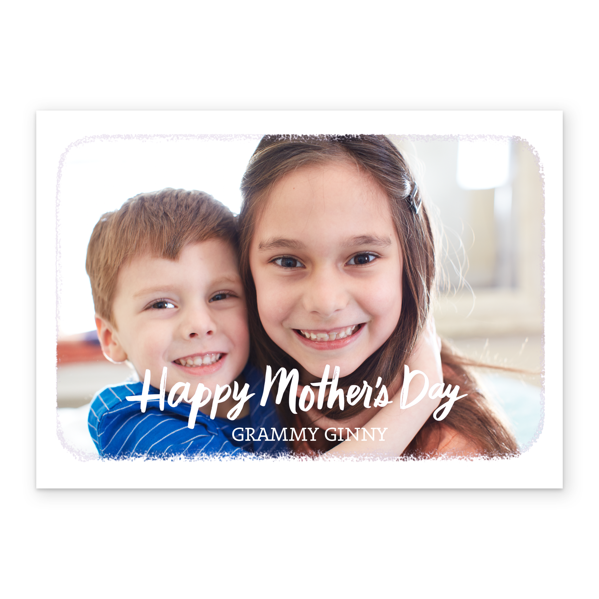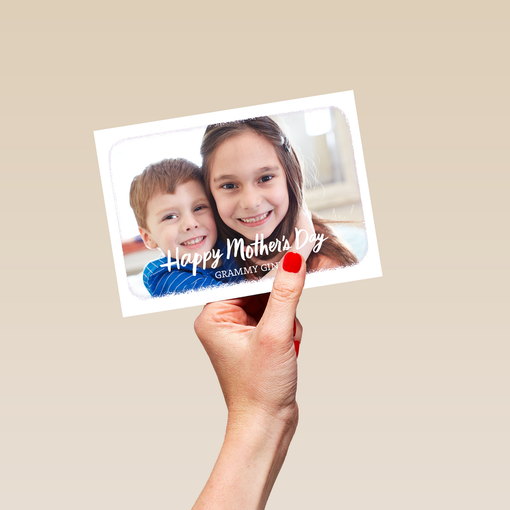 Printed on premium-quality board, this card features a white border with a message for your mum, with the message 'Happy Mother's Day', space to upload a photo and personalise a name, and comes complete with a co-ordinating white envelope.