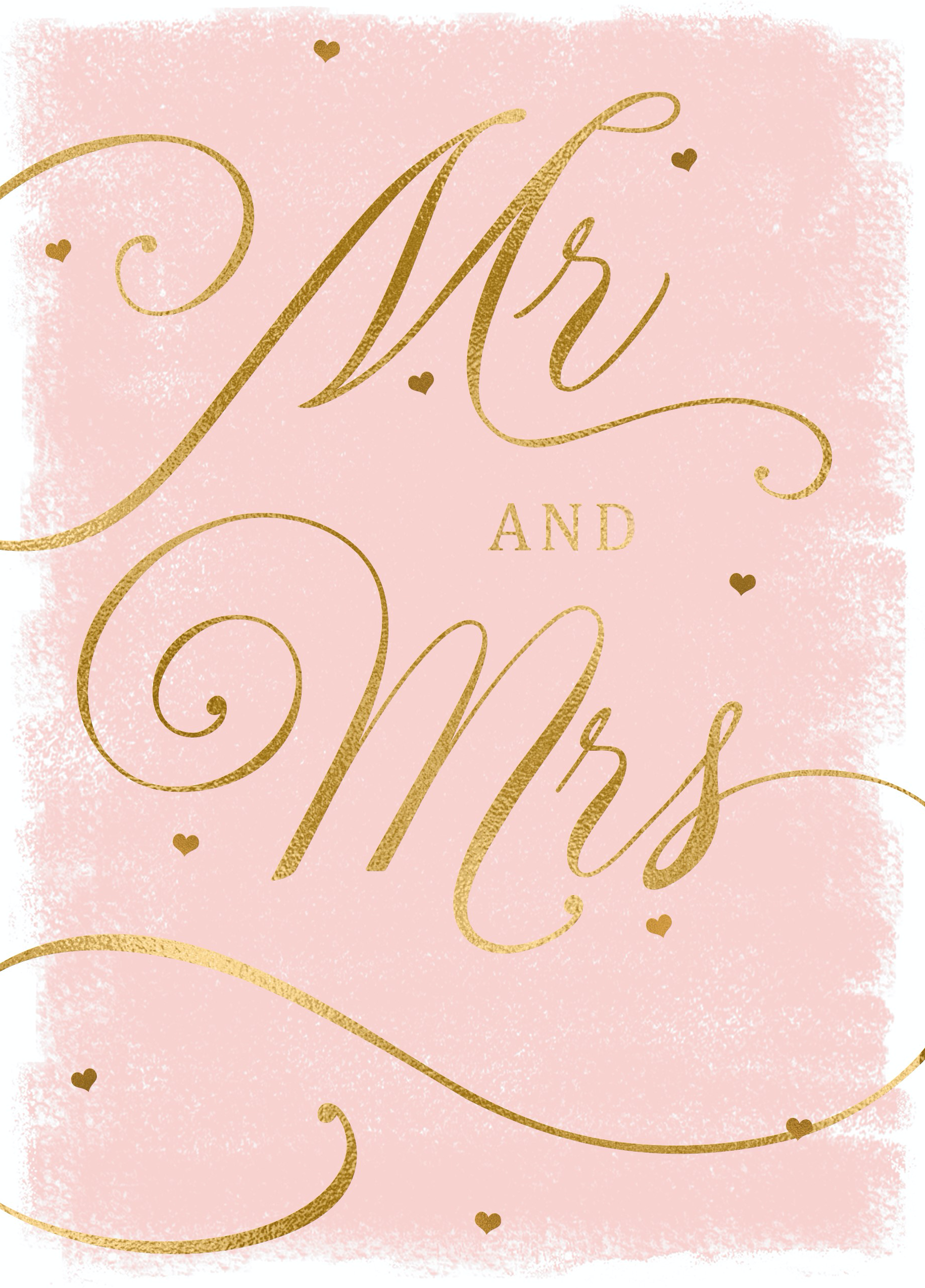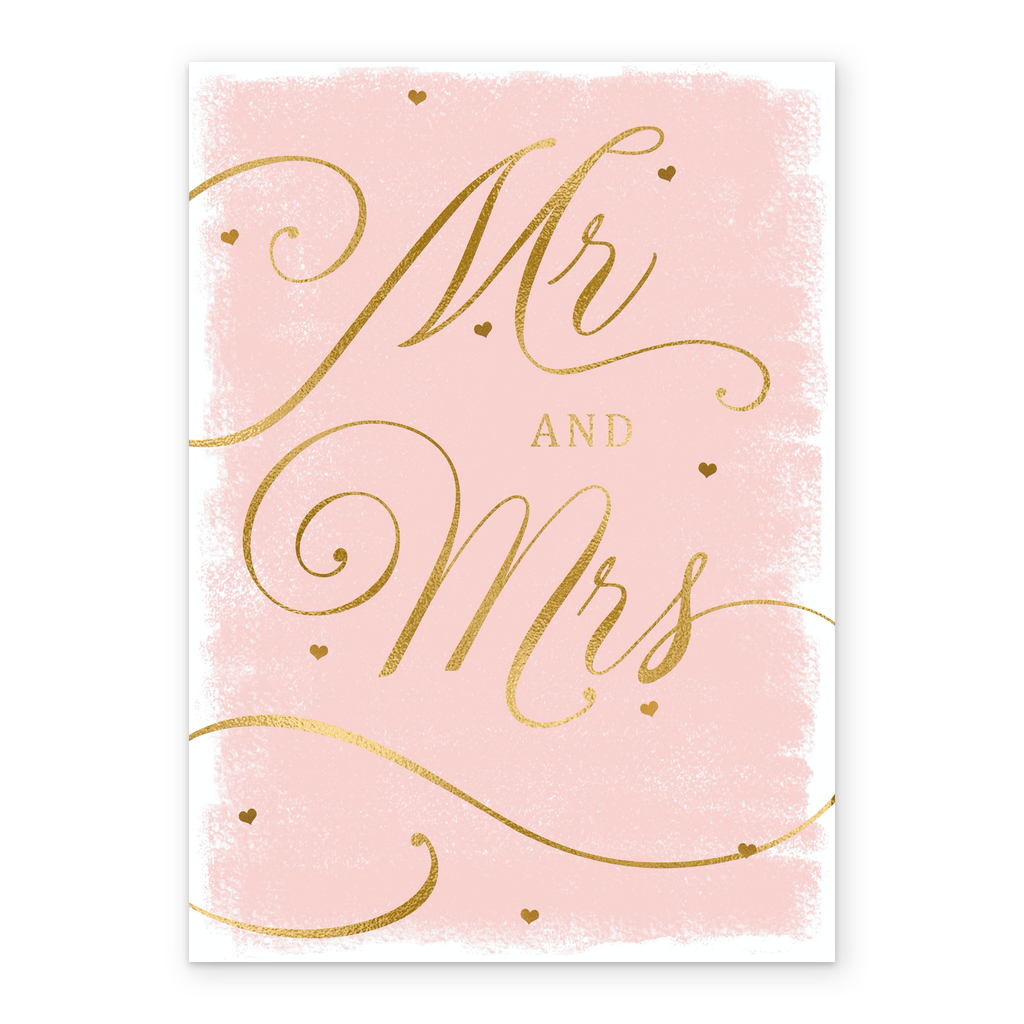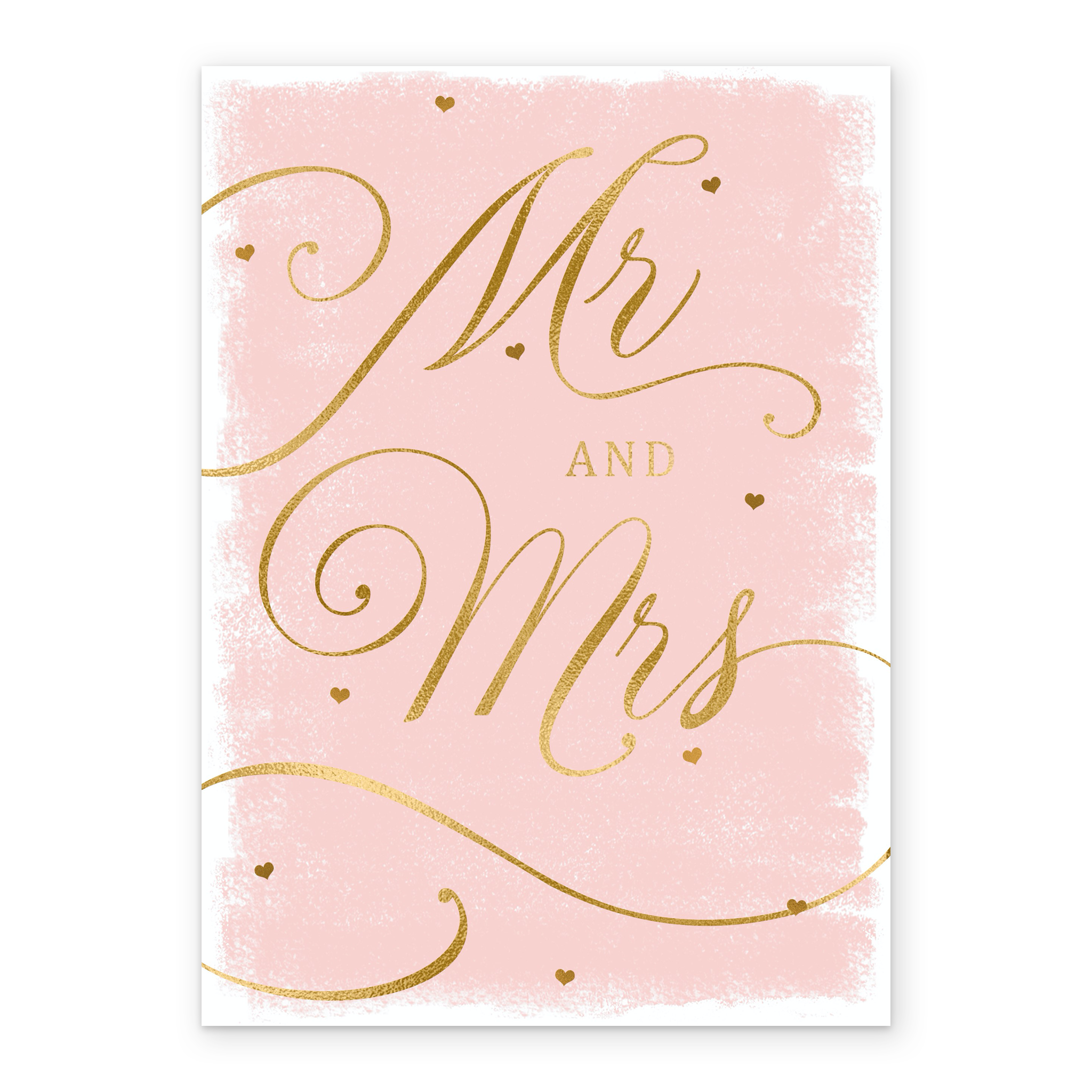 Personalised Pink & Gold Mr & Mrs Wedding Card