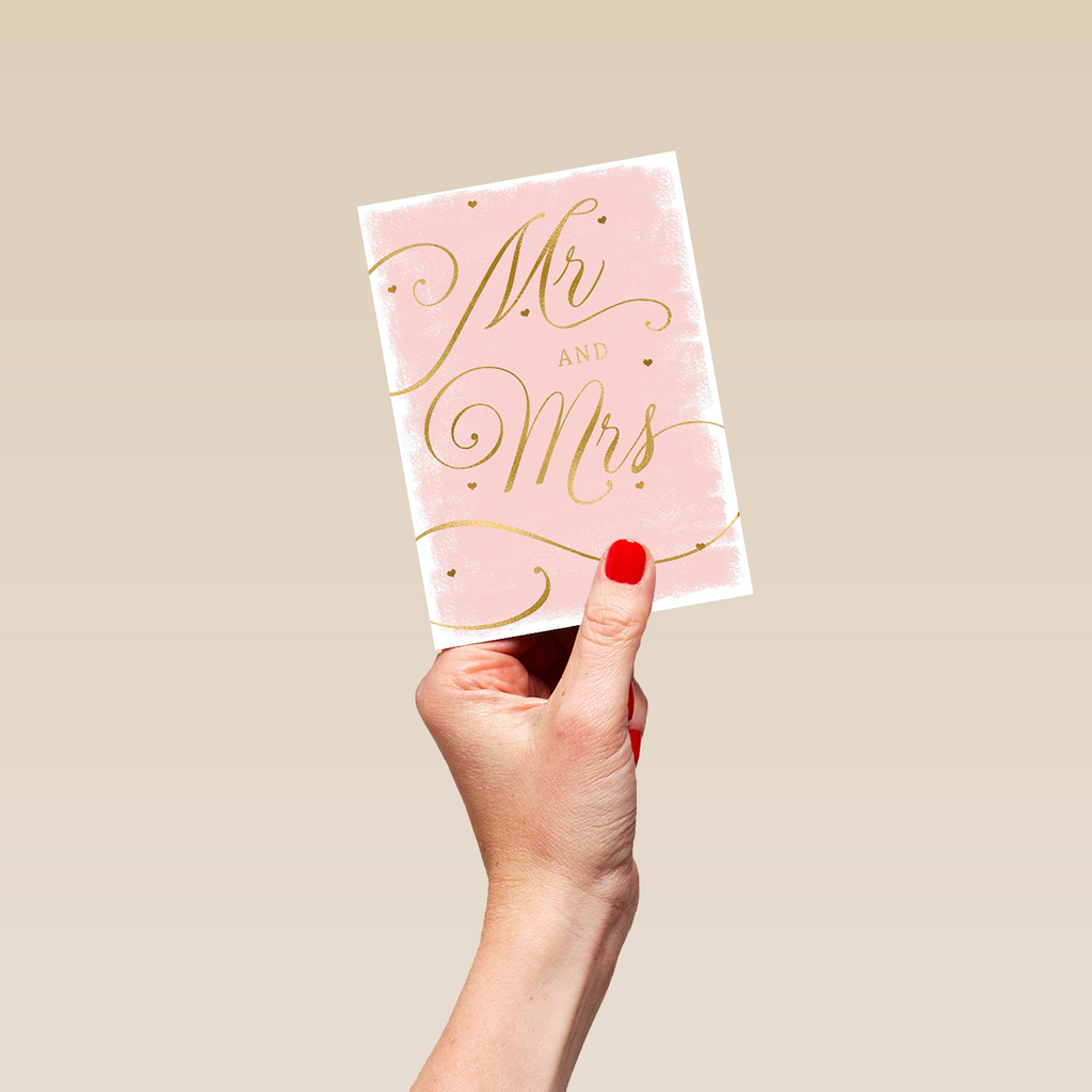 Show them you care with a personalised pink & gold Mr & Mrs wedding card from Hallmark. Our wedding cards are printed on premium quality, FSC®-certified card & delivered nationwide. This card is available as standard 12cm by 16.7cm and large 15.5cm by 21.6cm.