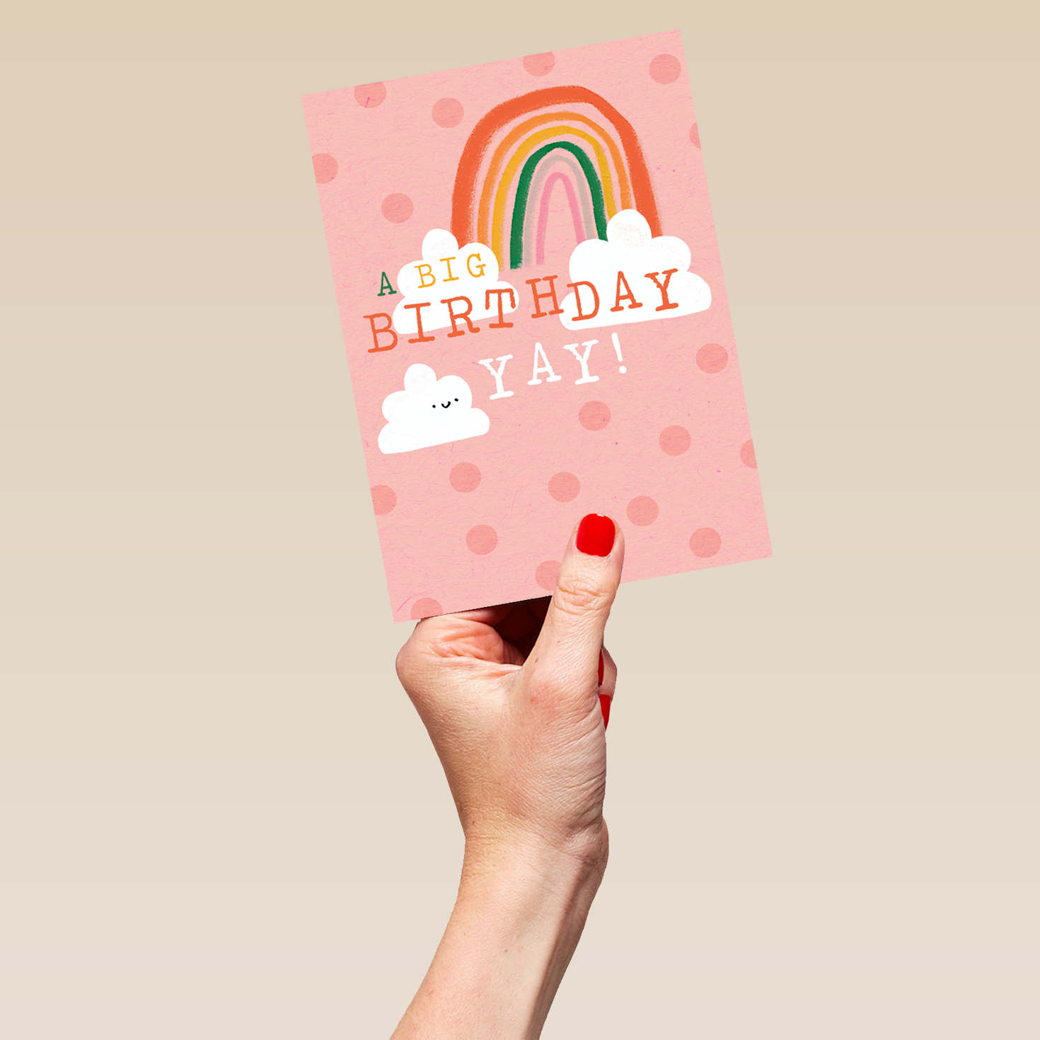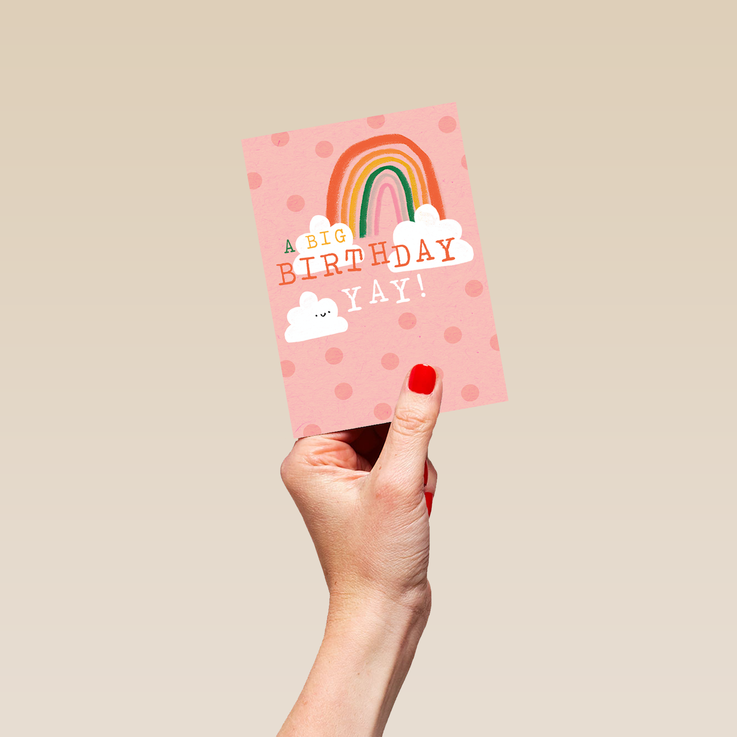 Show them you care with a personalised pink rainbow birthday yay card from Hallmark. Our greetings cards are printed on premium quality, FSC®-certified card & delivered nationwide.