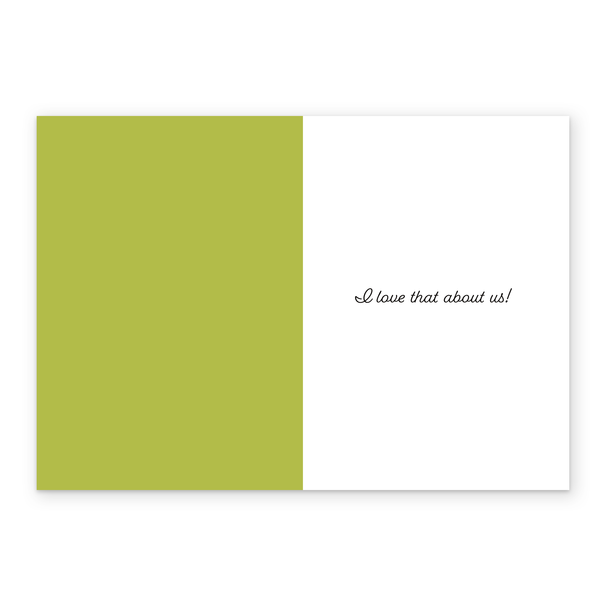 Message inside reads: I love that about us!